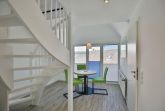 Schöne 3-Raum-Wohnung über 2 Etagen mit 2 kleinen Balkonen (ost&west), hochwertig ausgestattet bis 3 Pers., 1 Schlafzimmer mit Einzellbett, 1 Schlafzimmer mit Doppelbett & TV, Wohnzimmer mit Küchenzeile (Mikrowelle, Geschirrspüler, Dunstabzug), TV mit DVD, separater Essbereich. Neue Dusche/WC, kostenloses W-Lan Internet, keine Haustiere, Nichtraucher, Pkw-Stellplatz #14 hinter dem Haus.