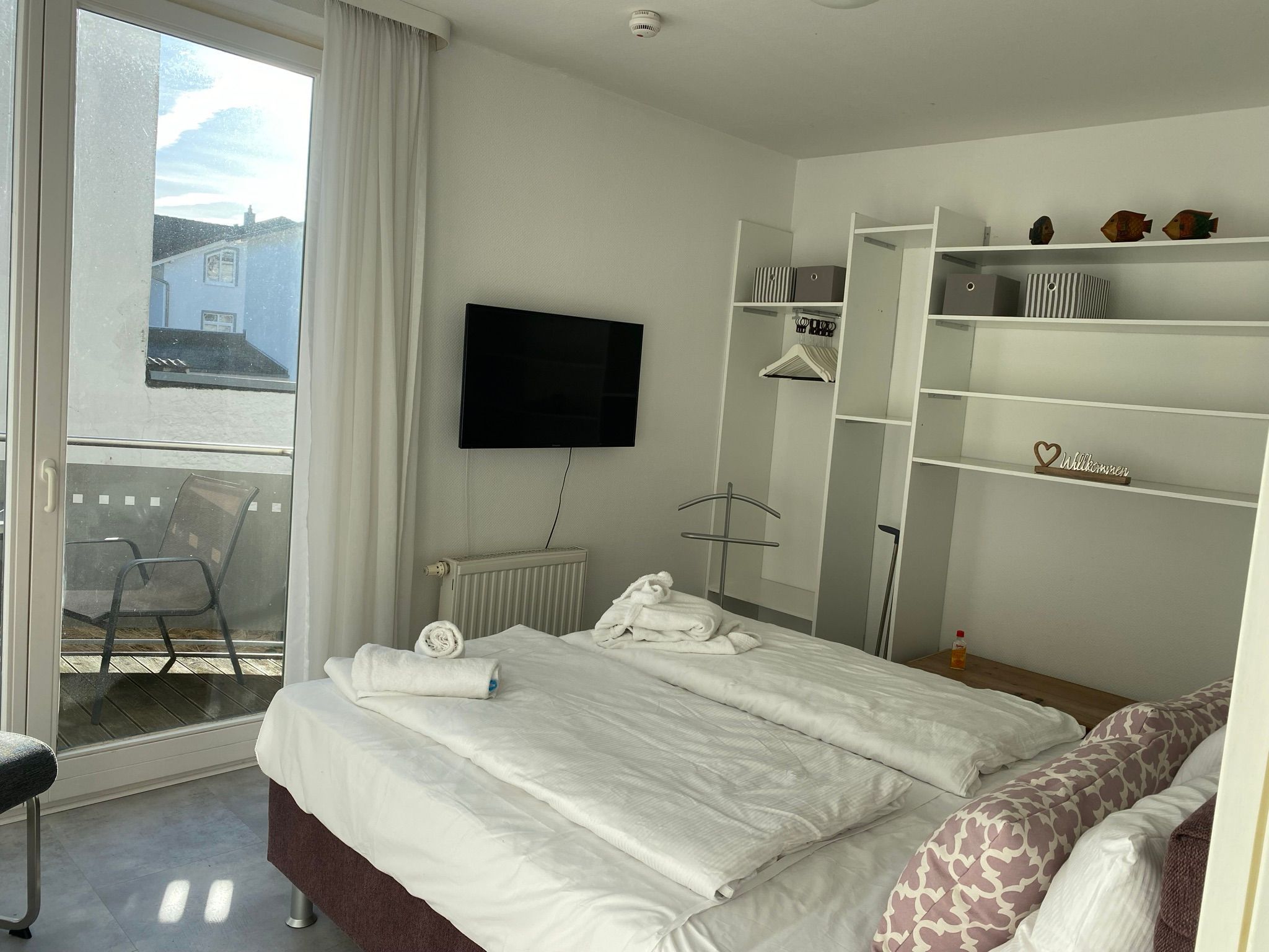 Komfort-Ferienwohnung a cappella 03 für bis zu 4 Personen (2 Zimmer) in der 1. Etage des Appartementhauses mit Balkon, 1 Schlafzimmer, und Schlafcouch