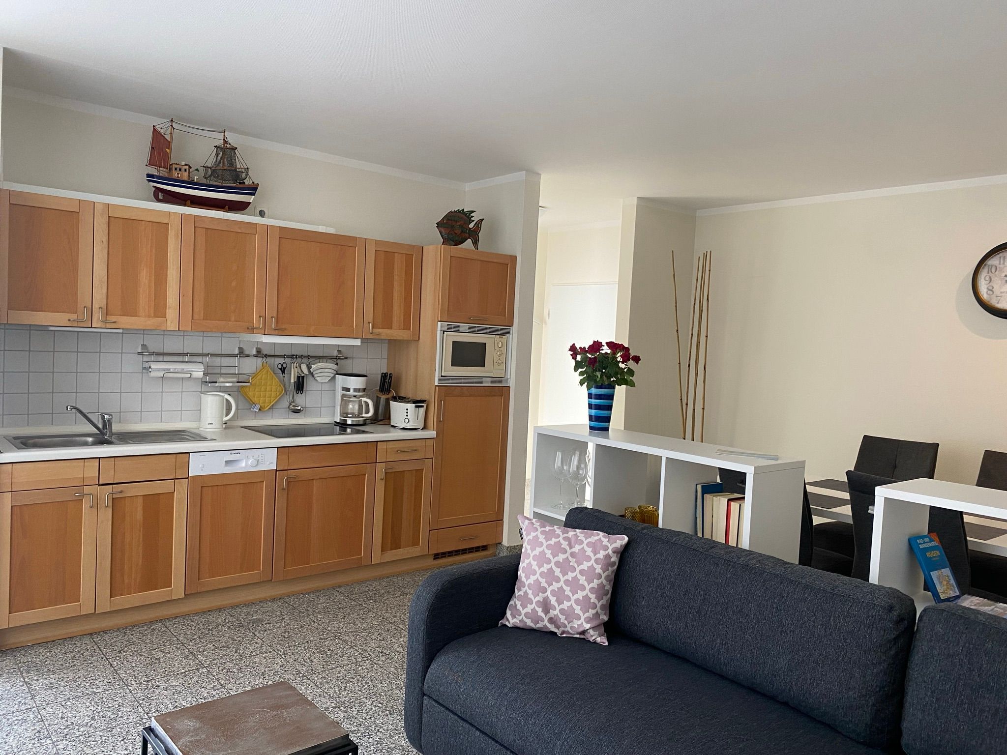 * Küche mit E-Herd, Kühlschrank, Spülmaschine, Mikrowelle, Wasserkocher, Kaffeemaschine, Toaster