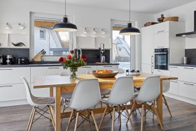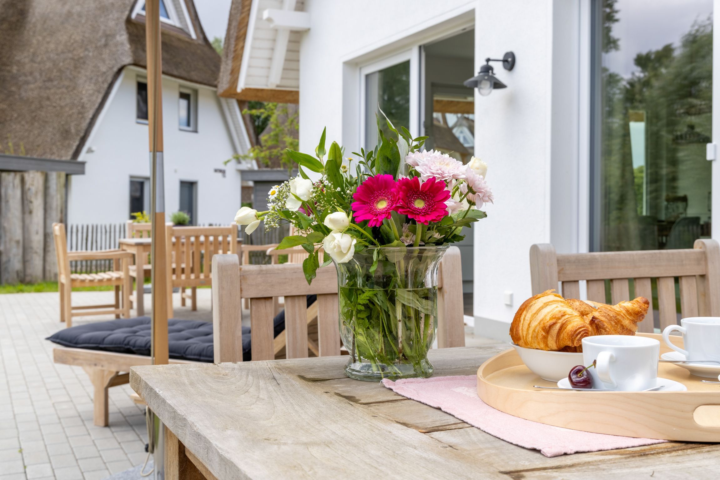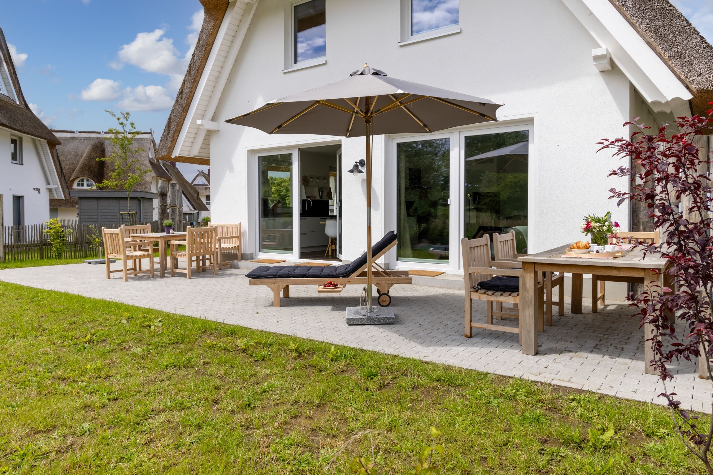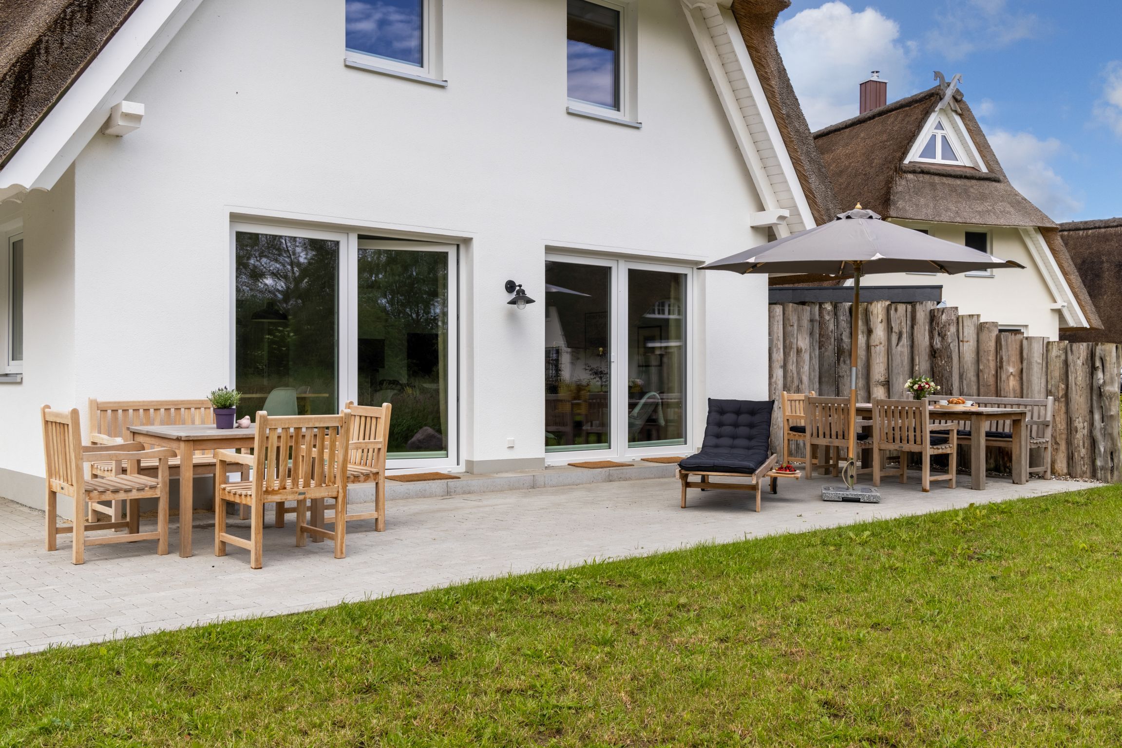 haffhouse - Dein Haus unter Reet bietet als 6- Zimmer Ferienhaus auf 130 Quadratmetern eine komfortable und farbenfrohe Einrichtung und Ausstattung. Schon das Ankommen im Haff House sorgt für Lust auf Urlaub und Meer.