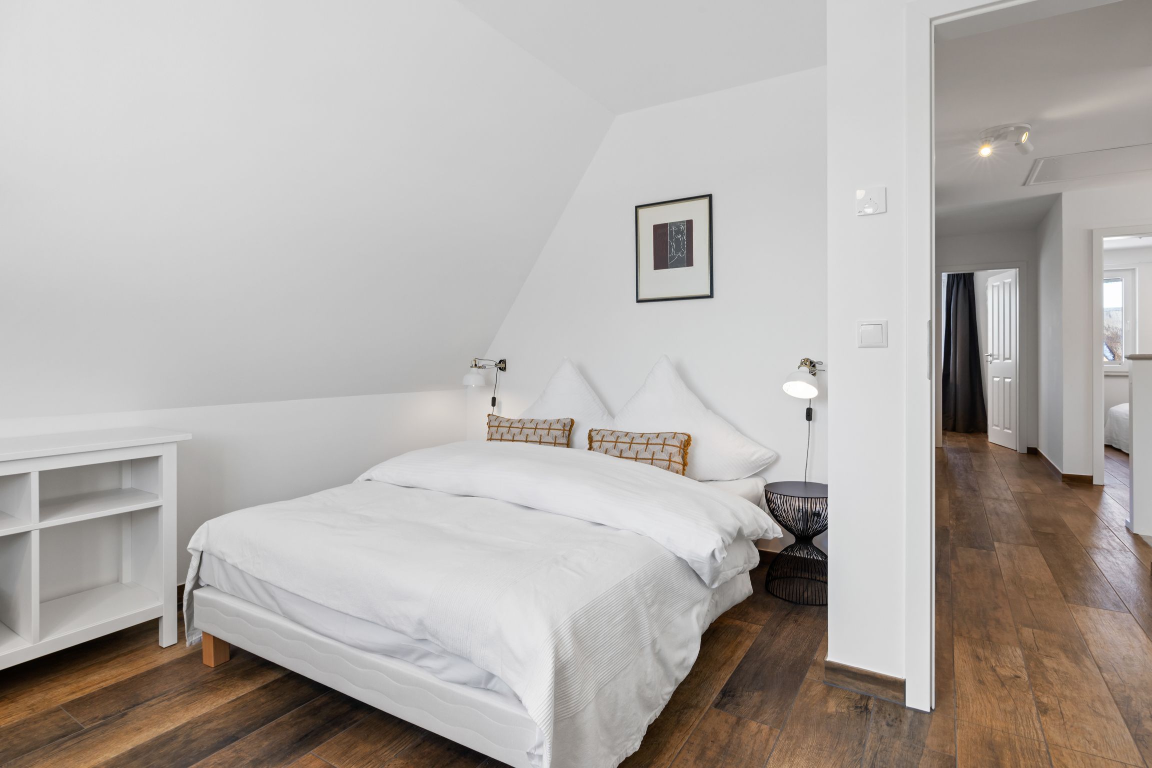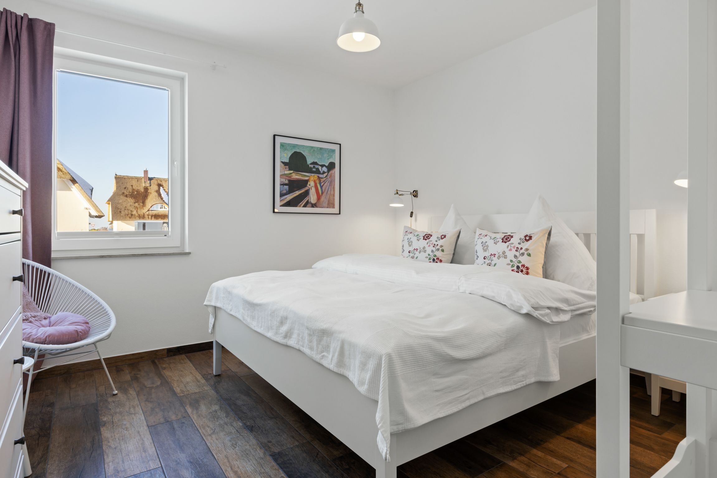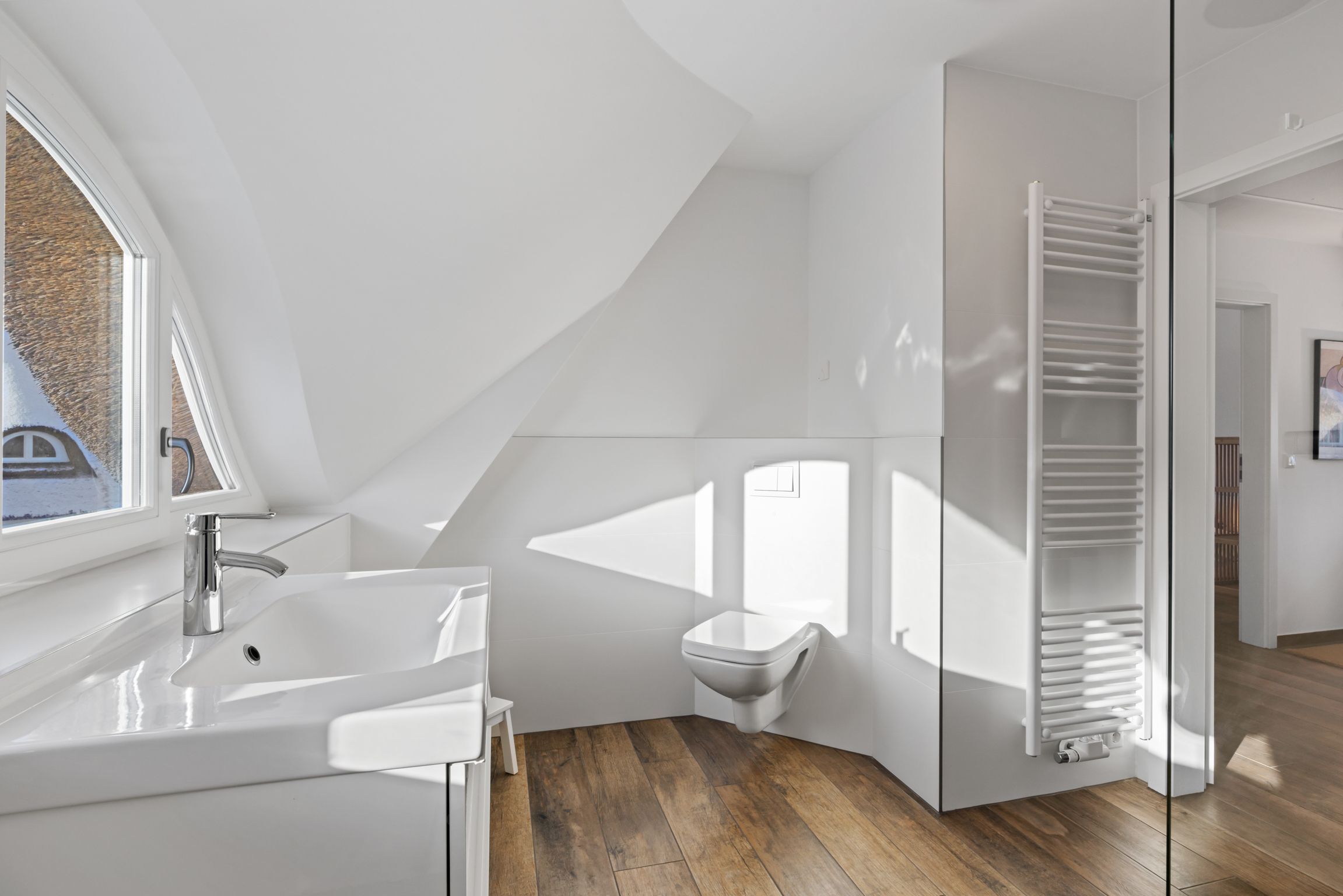 Im Obergeschoss befinden sich drei weitere Schlafzimmer sowie ein Arbeitszimmer als Rückszugort. Schlafzimmer 2 mit Doppelbett (1,80 x 2,00m), offenem Kleiderschrank. Schlafzimmer 3 mit Doppelbett (1,60 x 2,00m), und offenem Kleiderschrank, Schlafzimmer 4 mit Doppelbett (1,40 x 2,00m) und Kleiderkommode. Zimmer 5 mit Arbeitsbereich und herrlichem Ausblick vom Schreibtisch. In der Galerie des OG ist ein chilliger Bereich für die Gäste des Hauses enstanden, somit gibt es viele individuelle Rückzugsorte im haffhouse. Unter der Reetgaube lädt das Wohlfühlbad mit Rainshower- Dusche zu kleinen Wellnesseinheiten ein. Ein weiteres Gäste WC ist ebenso im OG vorhanden sowie Waschmaschine und Trockner im Flurbereich.