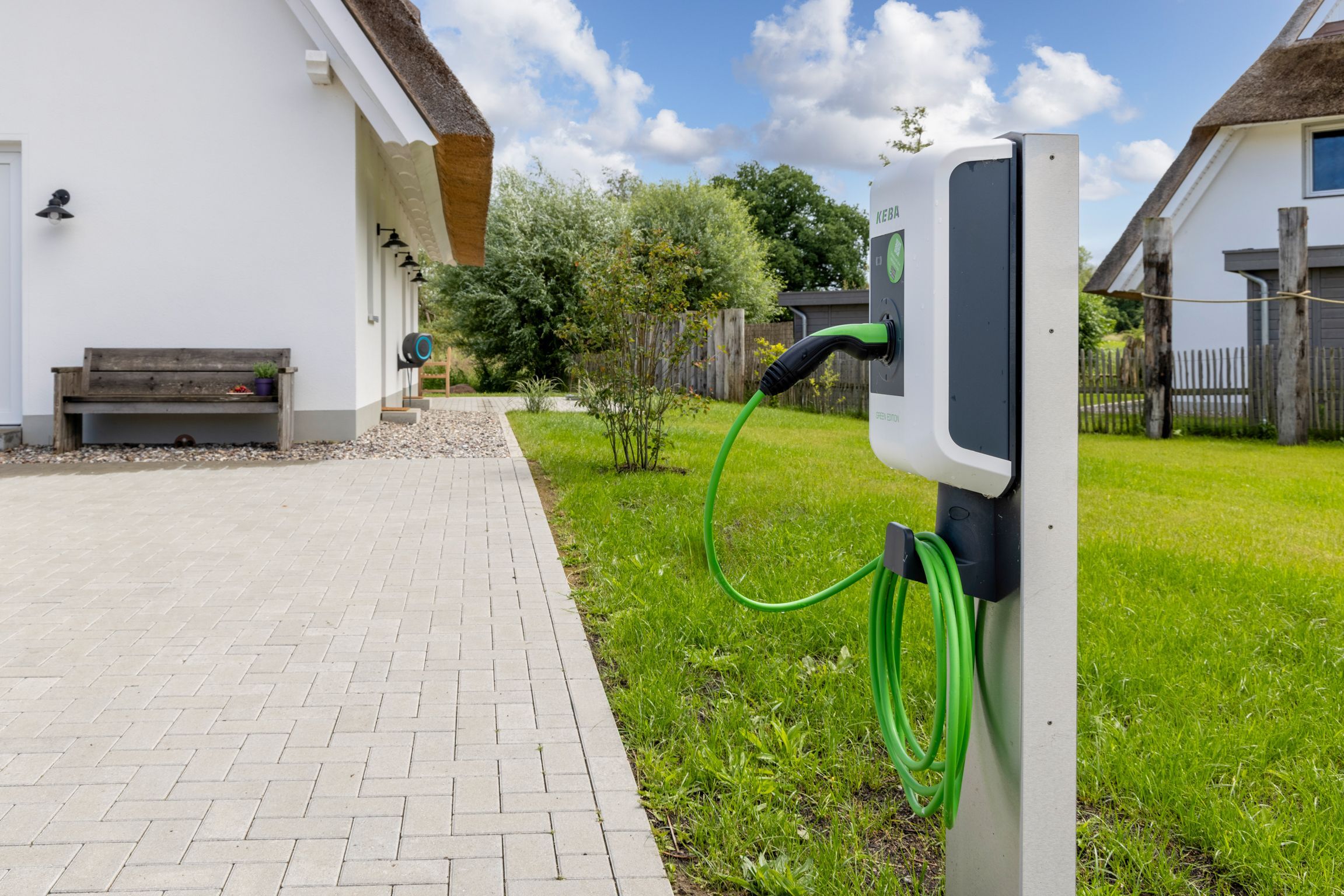 Großer Terrassenbereich mit Holz Möblierung und Garten, Elektrogrill, 3 Parkplätze, Schuppen zum Unterstellen der Fahrräder, E-Auto Ladestation, ect.