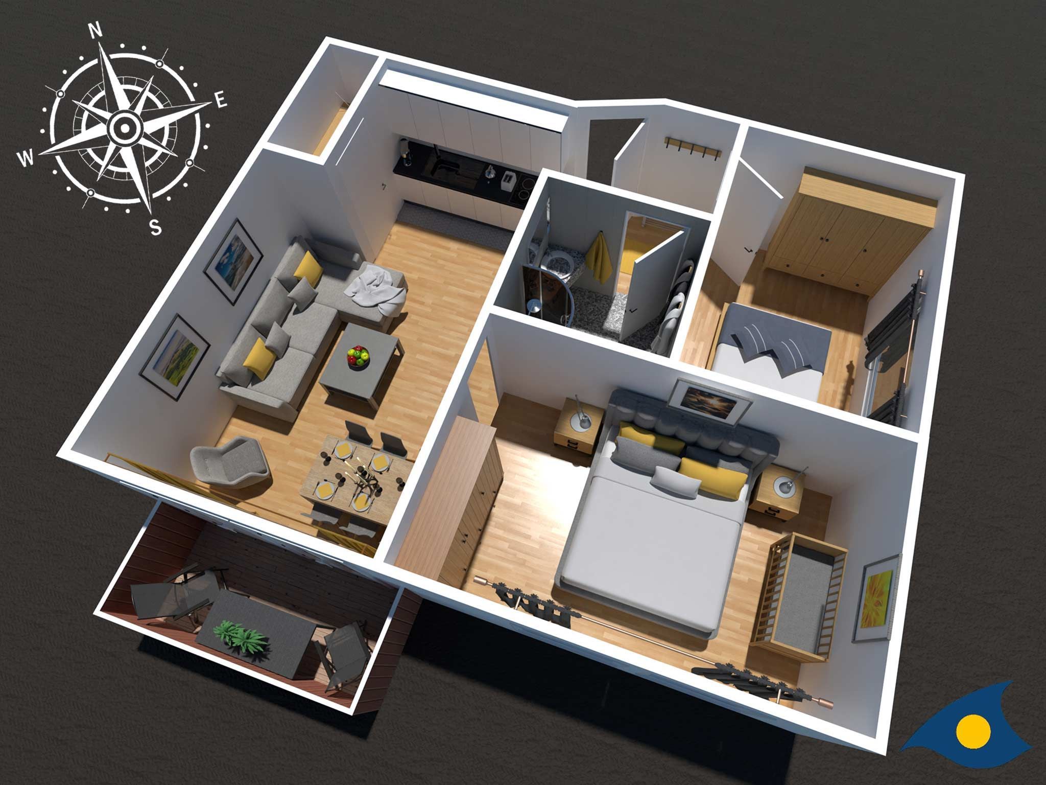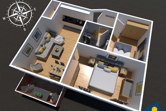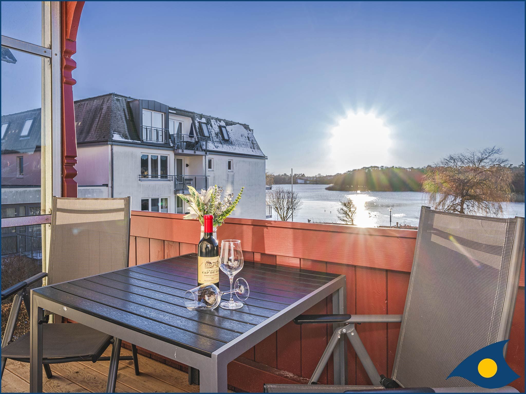 Vom Wohnbereich aus gelangen Sie auf den nach Süden gelegenen Balkon. Hier können Sie ab dem späten Vormittag bis zum Abend die Sonne mit einen herrlichen Ausblick auf den Schloonsee genießen.