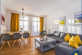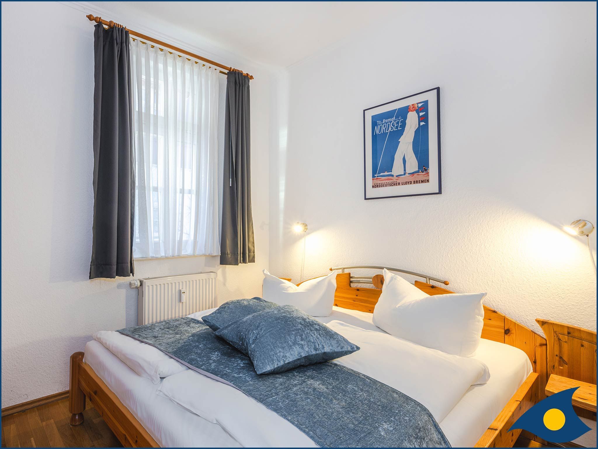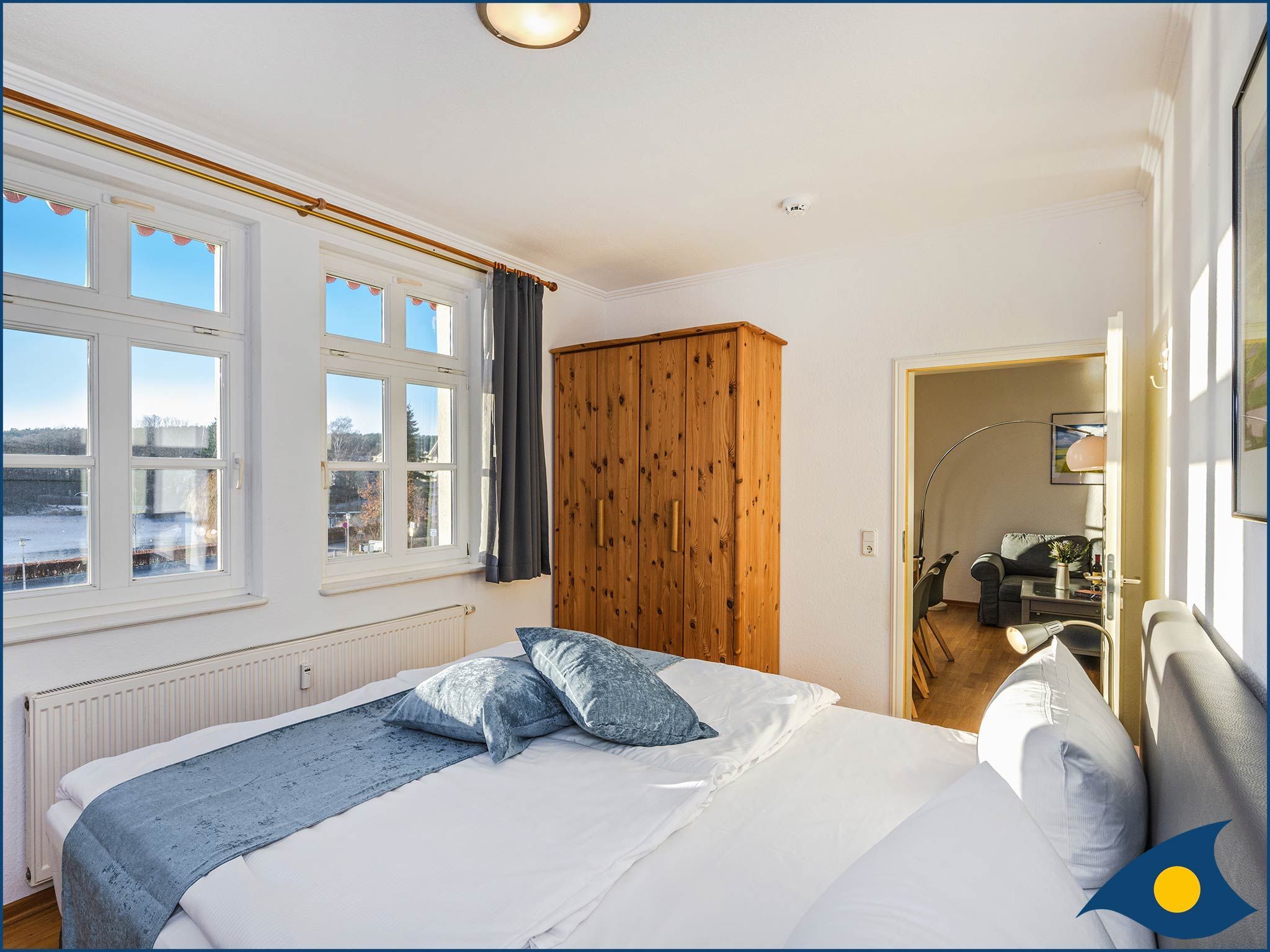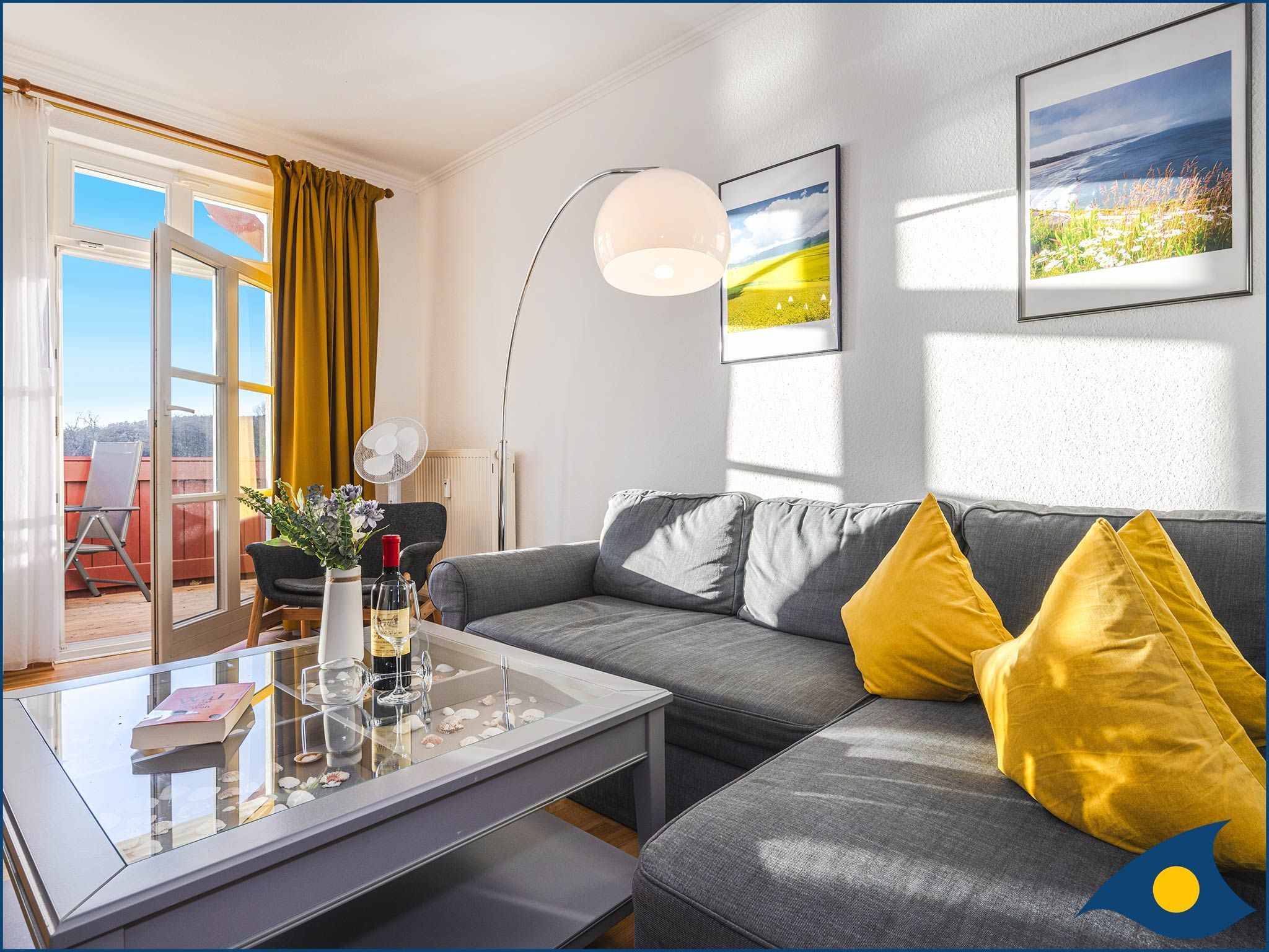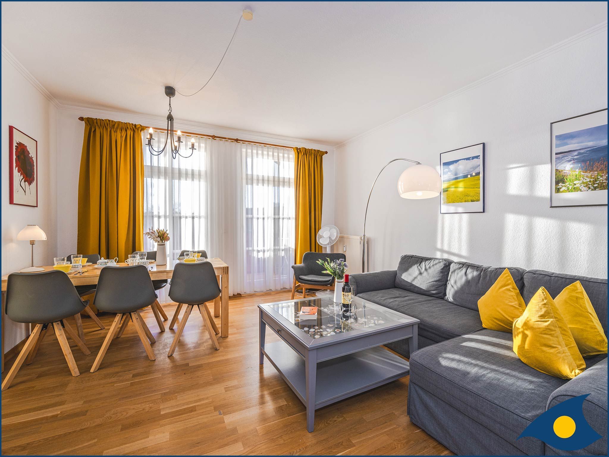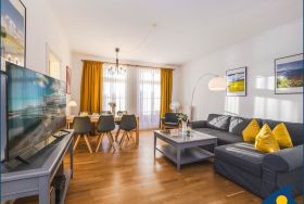 In der ersten Etage der 1896 erbauten Villa Vineta begrüßt Sie ein lichtdurchflutetes, freundliches 3-Raum-Appartement. Es erwarten Sie ein großzügiger Wohn- / Essraum mit modernen Küchenzeile, ein Schlafzimmer mit einem großzügigen Boxspringbett und Kinderbett und ein weiteres Schlafzimmer mit einem normalen Doppelbett. Im Wohnzimmer befindet sich eine Couch mit Schalffunktion für zwei Personen.
