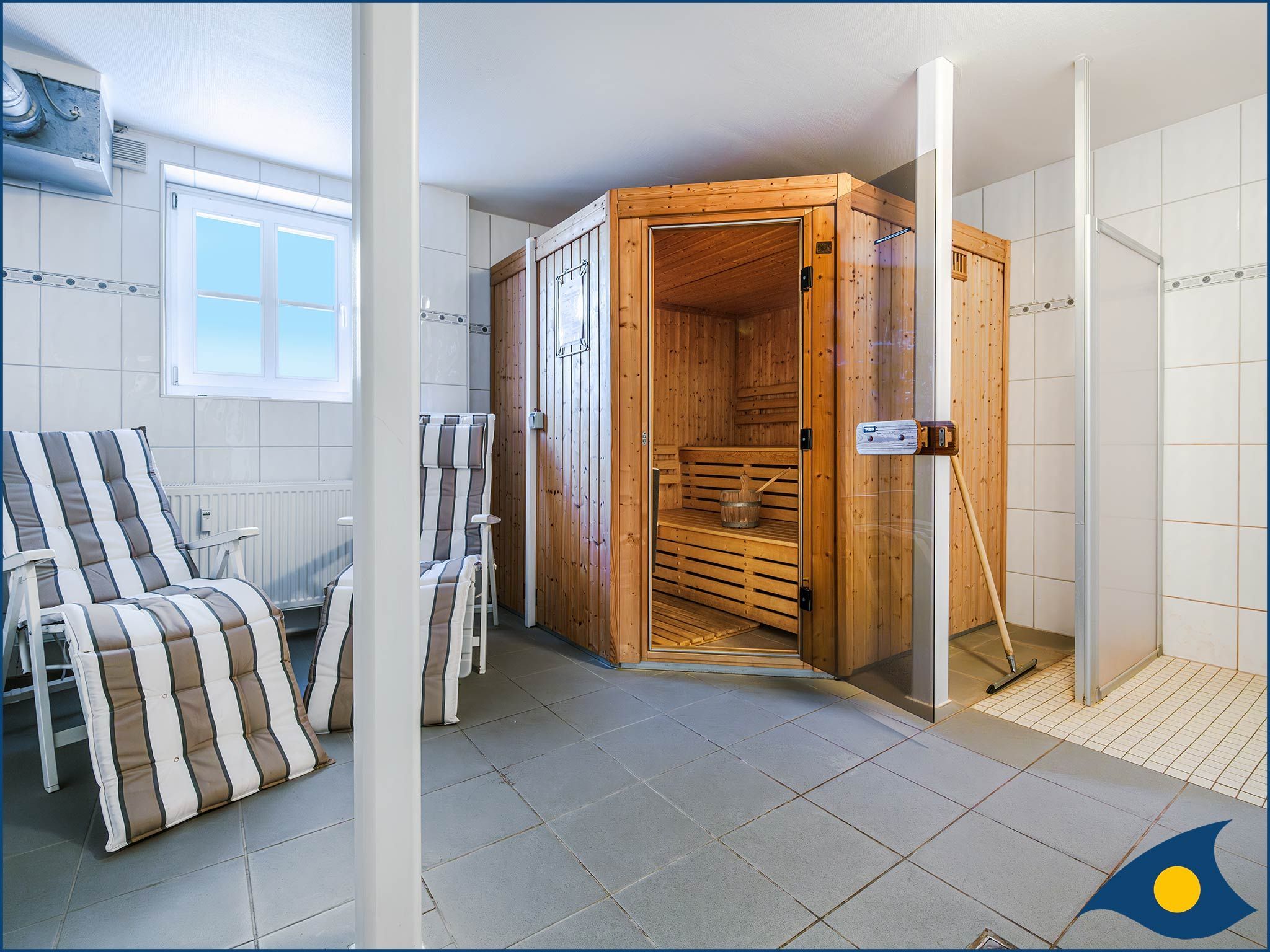 Des Weiteren befindet sich im Haus eine Gemeinschaftssauna mit einem gemütlichen Ruhebereich und eine Waschmaschine und einen Wäschetrockner den unsere Gäste nutzen können (Münzgeräte).