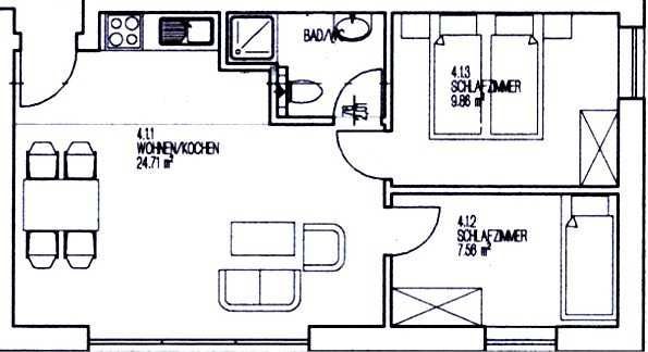 Wohnfläche 45 m²