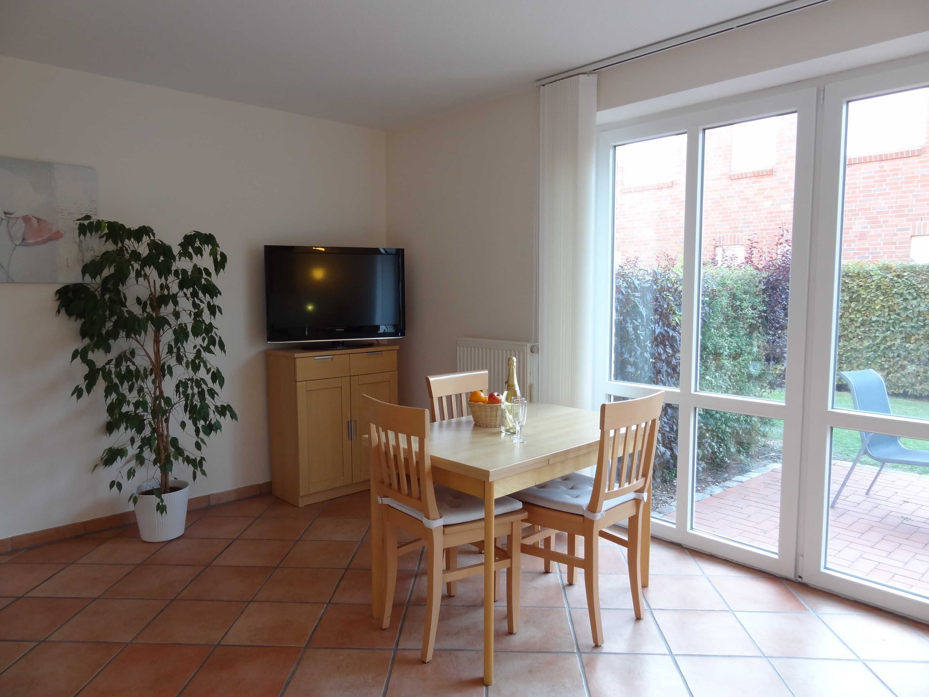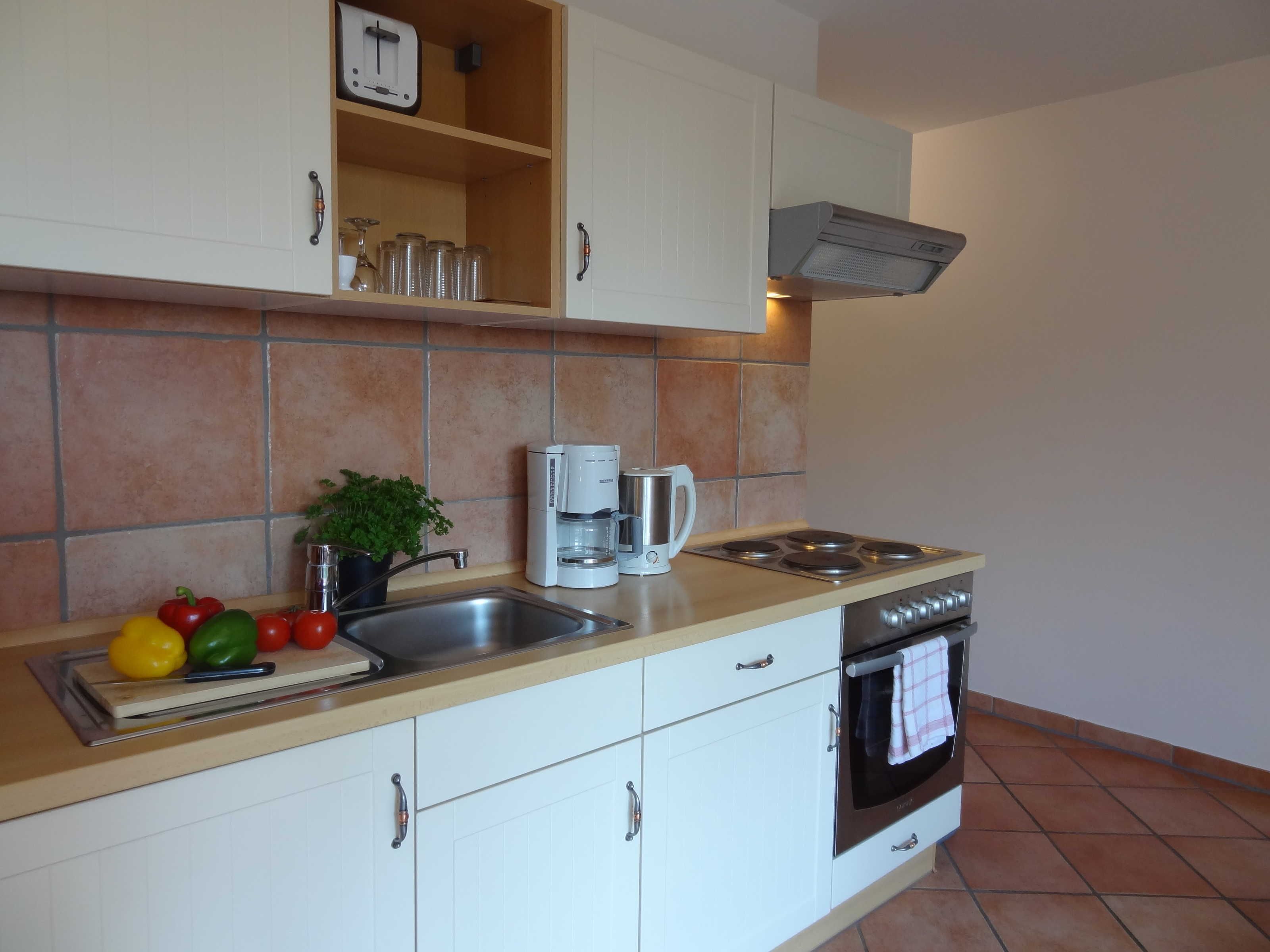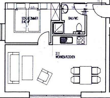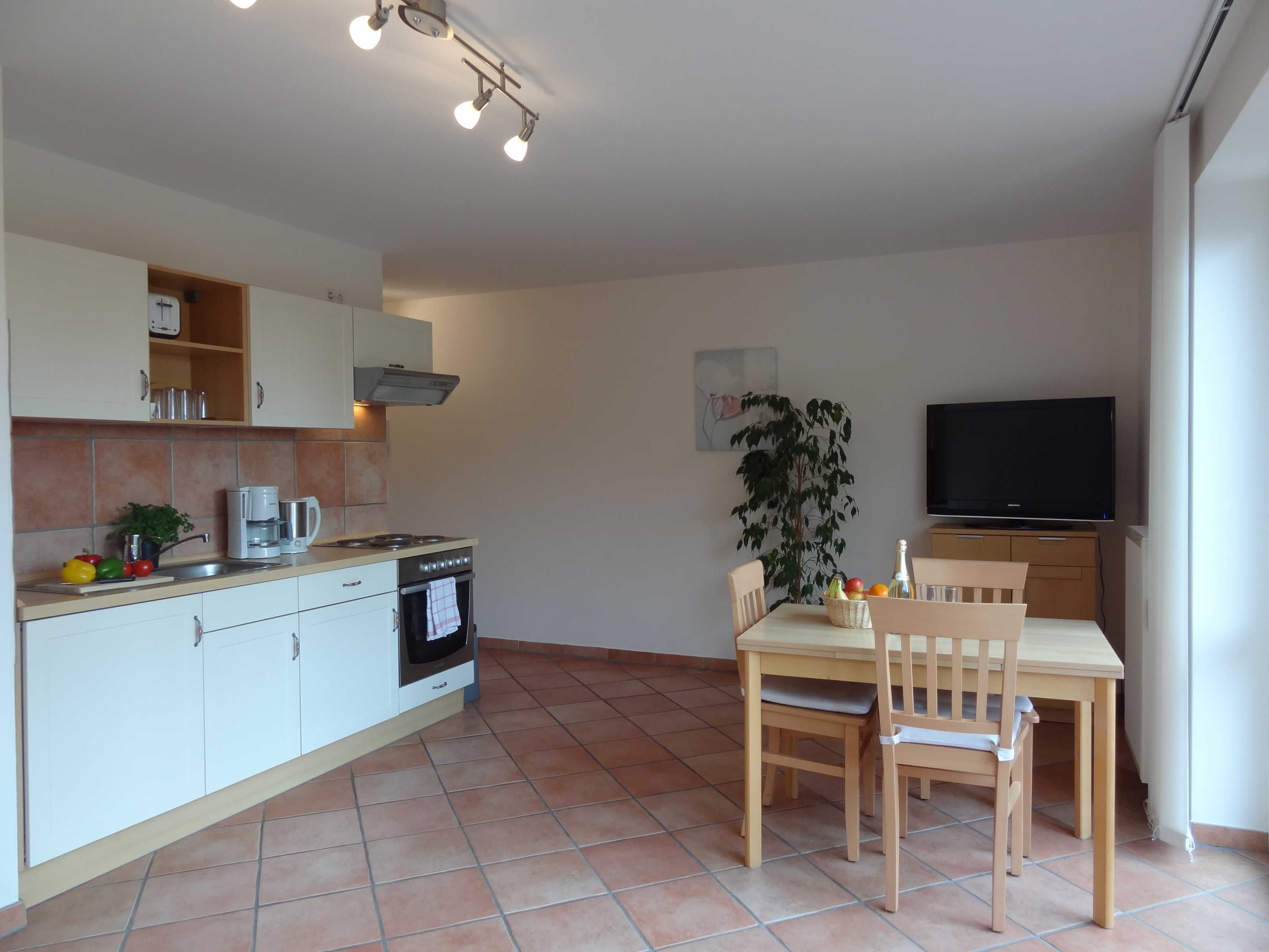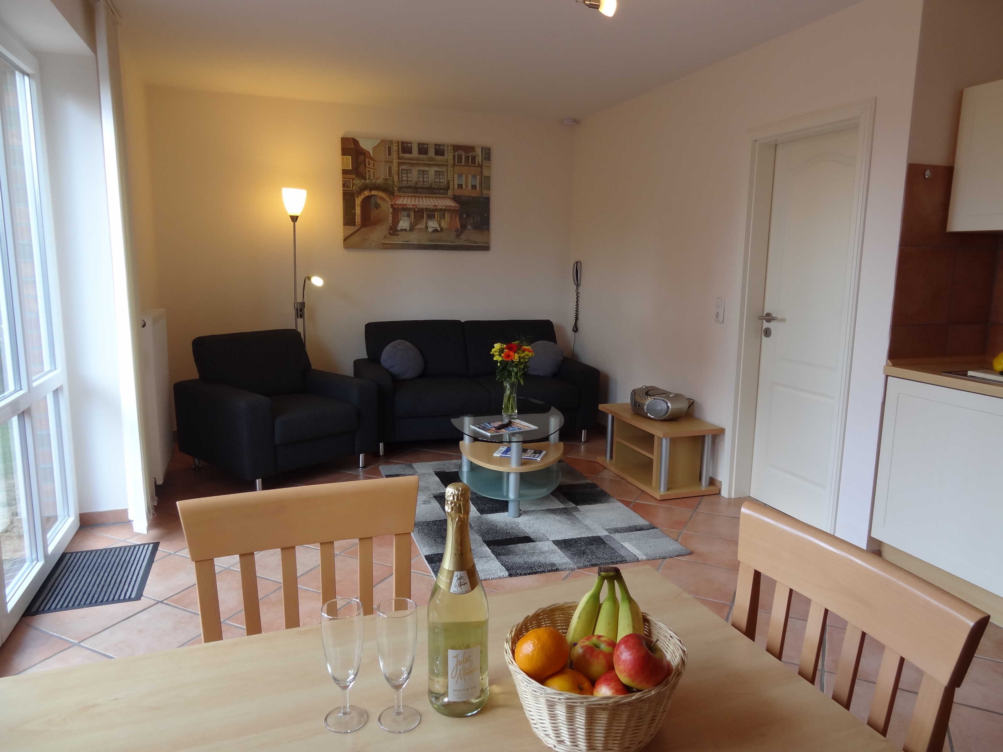 Die Ferienwohnung im Erdgeschoss ist mit ca. 40 qm für 2 Personen ausgelegt und verfügt über einen Wohnraum mit Küchenzeile, ein Bad mit Dusche und ein Schlafzimmer. Weitere Ausstattungsmerkmale: Sat-TV 42 Zoll Full HD, Telefon kostenlos (deutsches Festnetz außer Sondernummern), PC-Anschluss DSL kostenlos, PKW-Stellplatz, Fahrradstellplatz, Waschmaschinennutzung, eigene Terrasse.