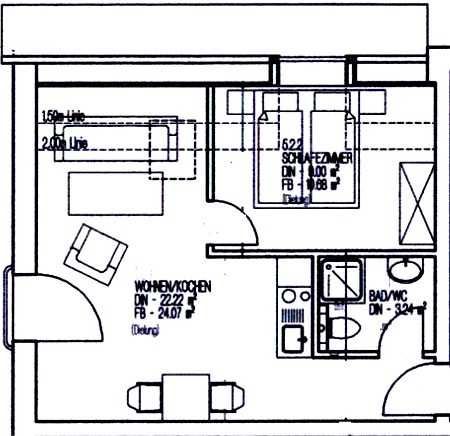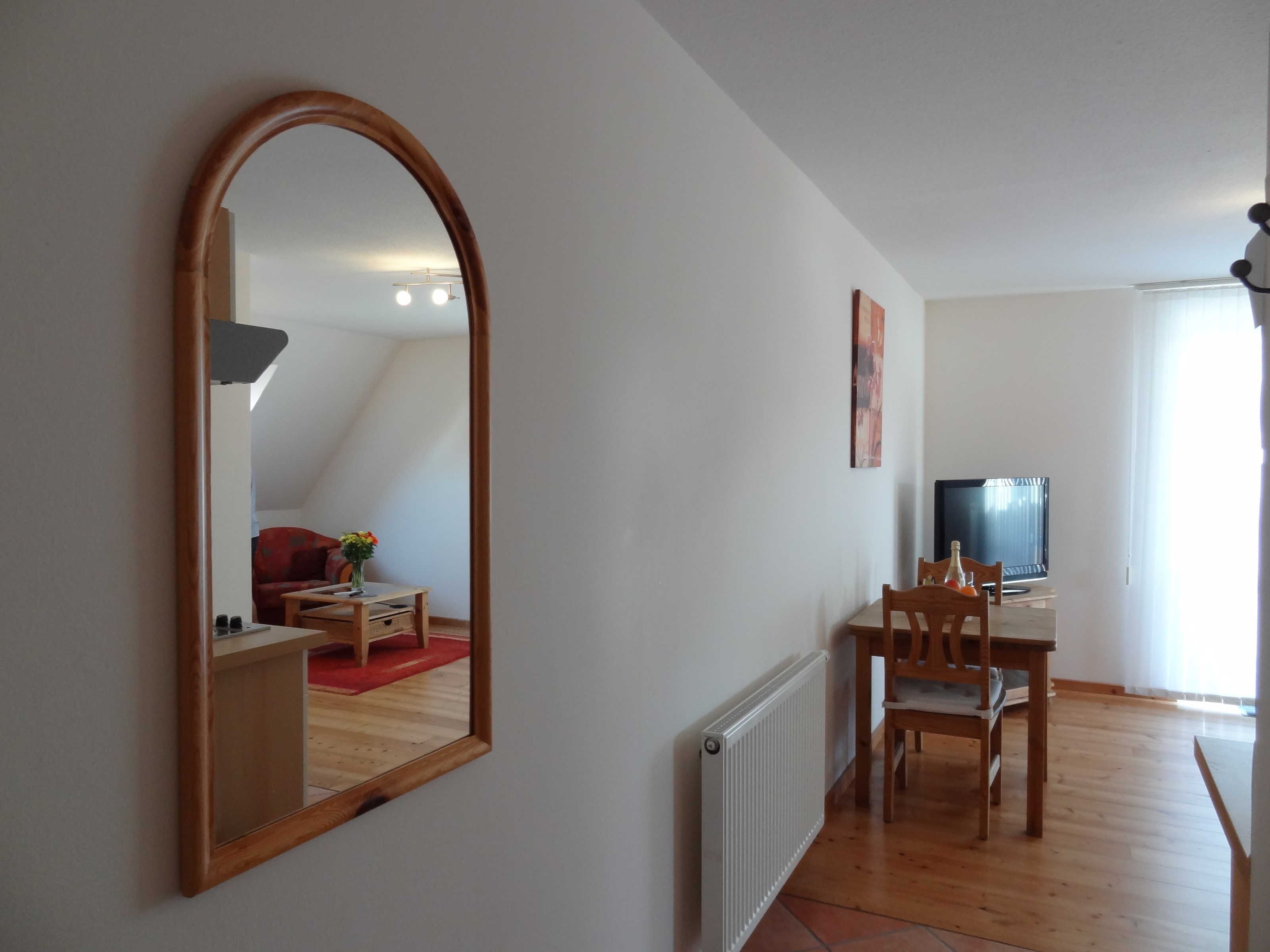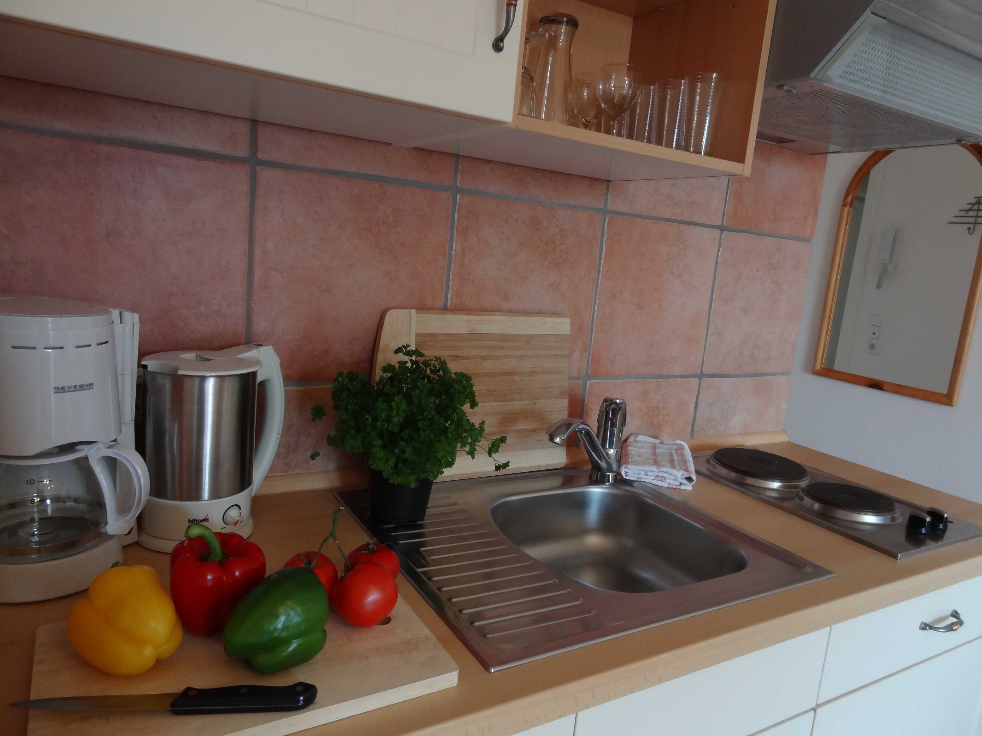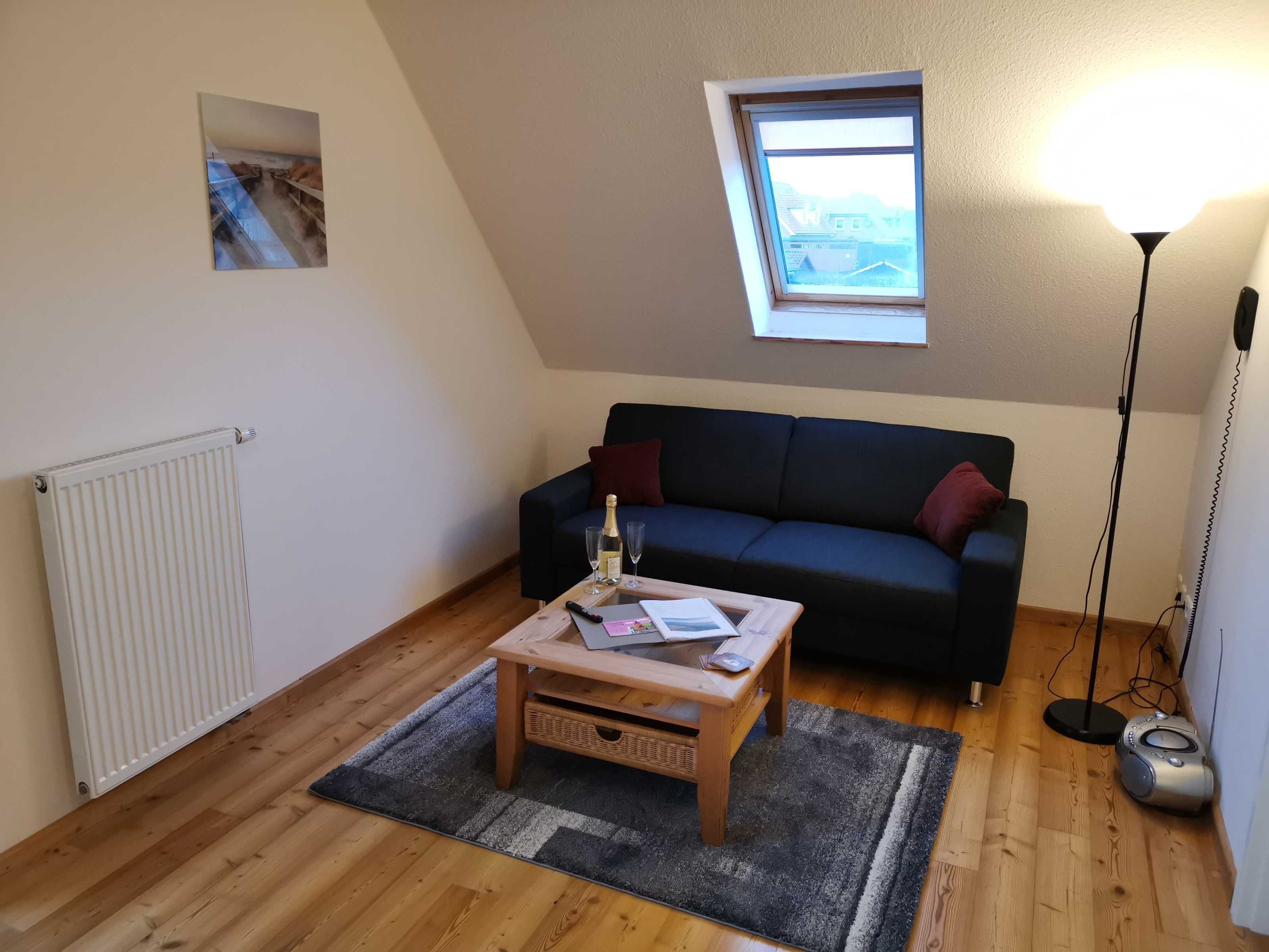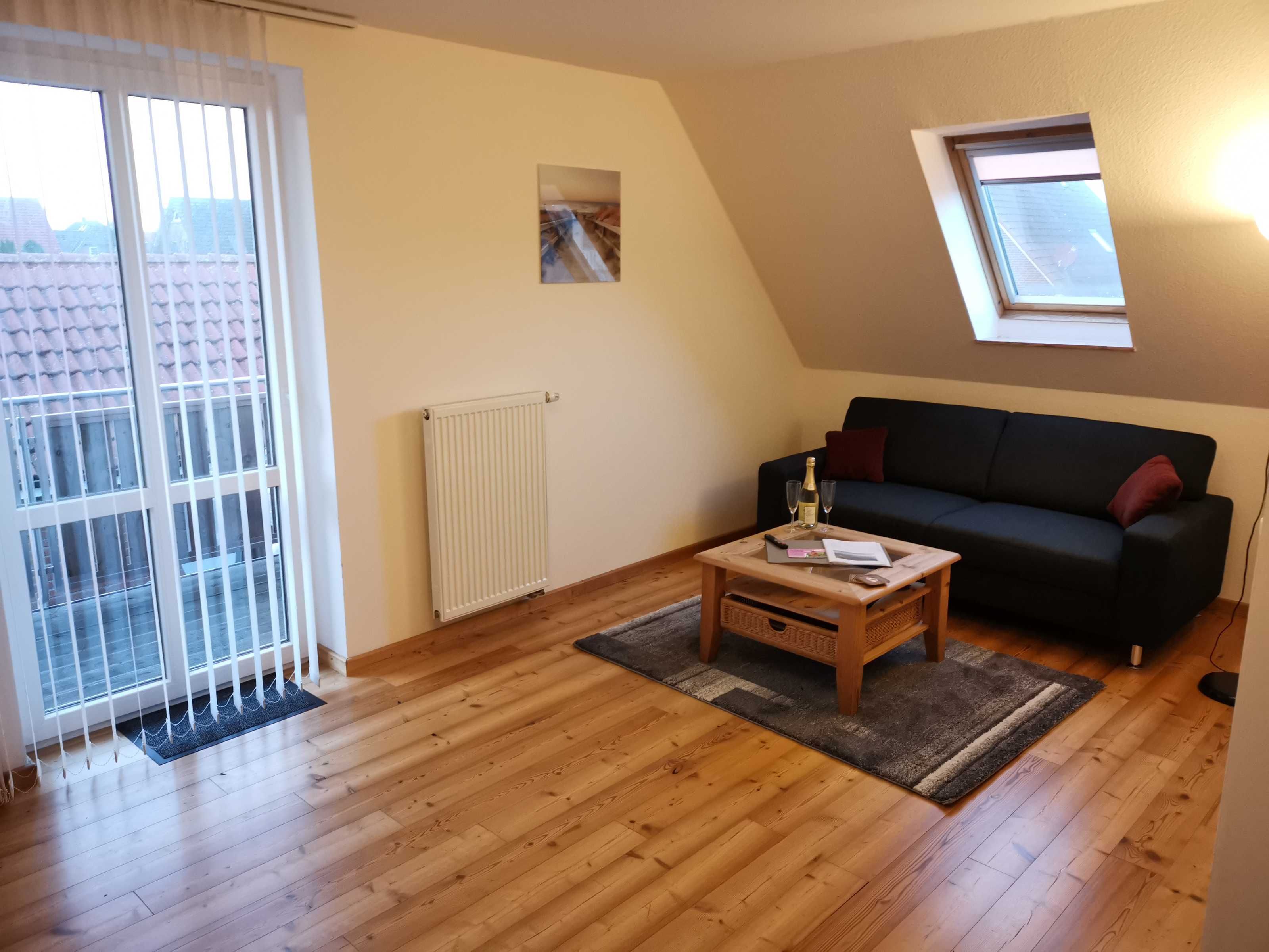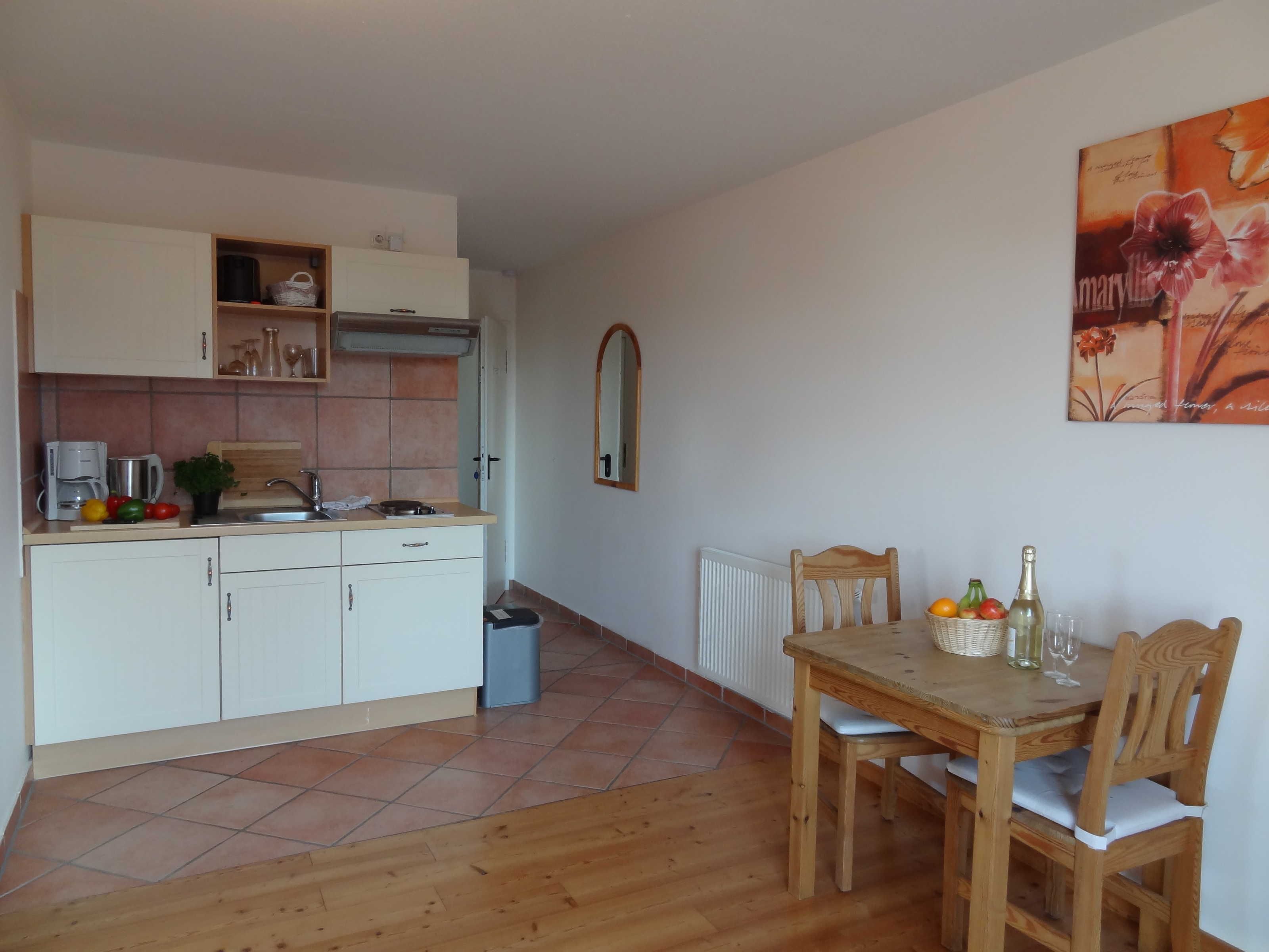 Die Ferienwohnung im Obergeschoss ist mit ca. 36 qm für bis zu 2 Personen ausgelegt und verfügt über einen Wohnraum mit Küchenzeile, ein Bad mit Dusche und ein Schlafzimmer.Der große Balkon ist zum Westen ausgerichtet. Sie können von mittags bis abends die Sonne genießen. Weitere Ausstattungsmerkmale: Sat-TV, Telefon kostenlos ( deutsches Festnetz außer Sondernummern ), PC-Anschluss DSL kostenlos, PKW-Stellplatz, Fahrradstellplatz, Waschmaschinennutzung.
