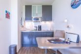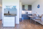 Das komfortable Schrankbett im kombinierten Wohn- und Schlafbereich gewährleistet, dass Sie sich auch im Schlaf erholen. Kostenloses WLAN und ein Flachbildfernseher sorgen für beste Unterhaltung. Die integrierte Küche ist mit einem 2-Zonen Cerankochfeld, einer Mikrowelle und einem Kühlschrank ausgestattet. Auch der Balkon bietet einen traumhaften Meerblick. Die Wohnung verfügt zudem über ein Badezimmer mit Dusche und WC. Während Ihres Aufenthaltes ist Ihr Auto sicher in der zugehörigen Garage untergestellt.