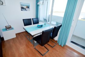 Die Küchenzeile ist mit einem Backofen ausgestattet, sodass Sie auch während Ihres Urlaubs köstliche Speisen zubereiten können. Nach dem Essen können Sie entspannt auf dem Balkon Platz nehmen und die frische Meeresbrise genießen. Das Duschbad ist praktisch eingerichtet und sorgt dafür, dass Sie sich nach einem langen Tag am Strand erfrischen können.