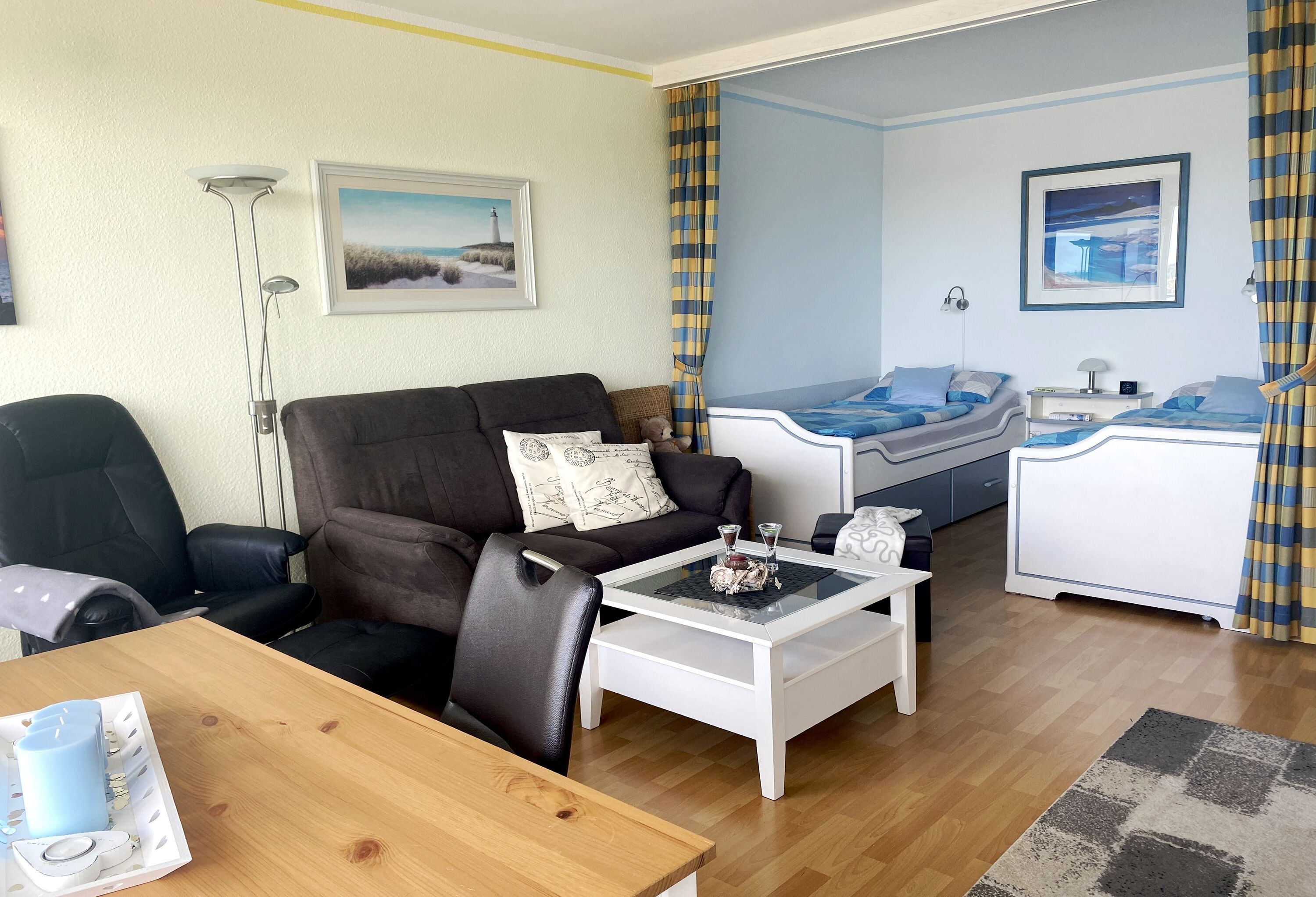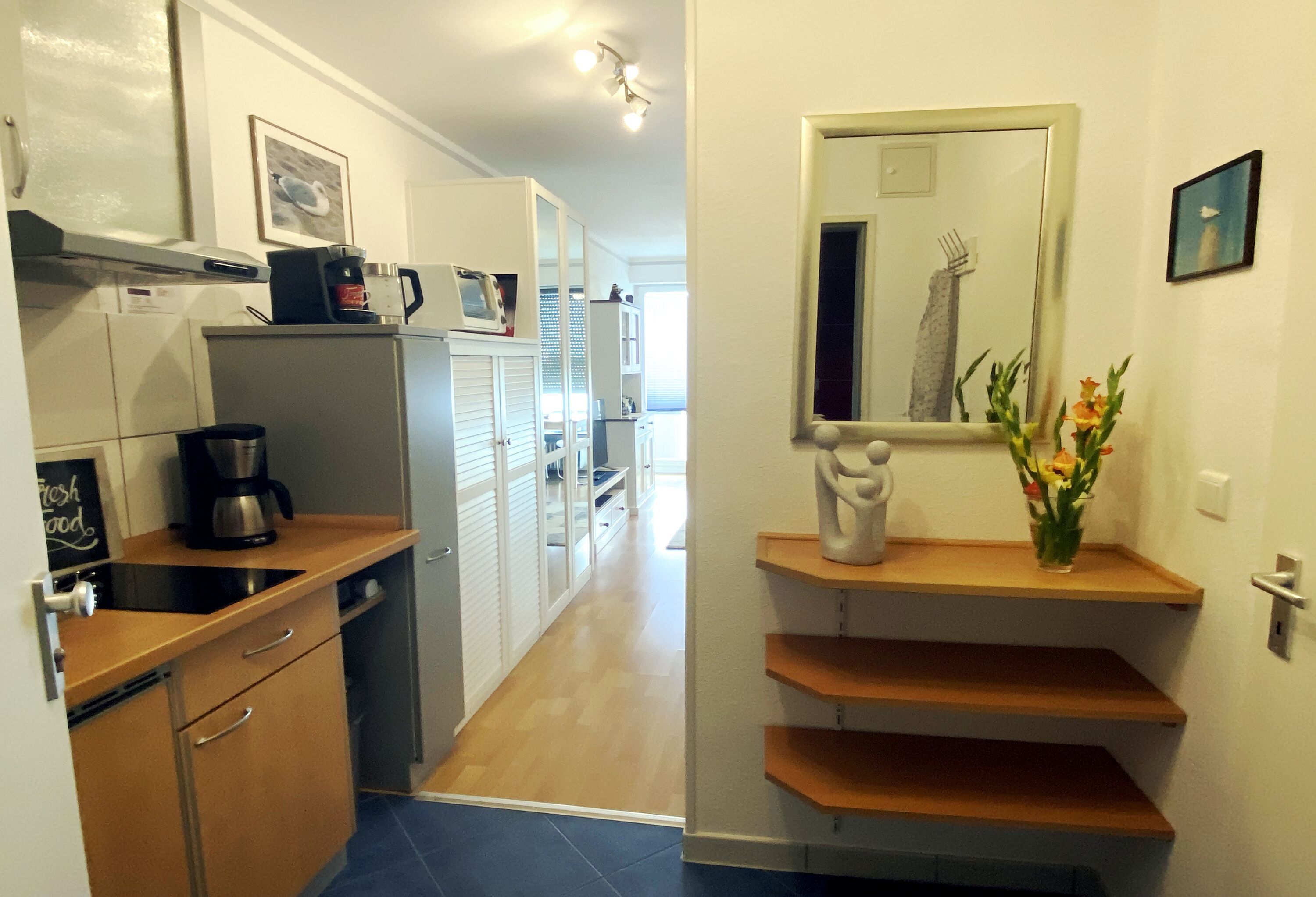 handelt es sich um eine wunderschöne Ferienwohnung mit 38qm für 2 Personen. Die Wohnung ist ruhig gelegen in der oberen 5. Etage und bequem im Fahrstuhl zu erreichen.