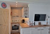 Die Küche ist komplett ausgestattet mit Herd (inkl Mikrowellenfunktion), 4-er Cerankochfeld, Spüle mit integriertem Wasserfilter, Kühlschrank und kleines Tiefkühlfach, Spülmaschine, Kaffeemaschine, Wasserkocher, Toaster, Eierkocher, Geschirr, Gläser und Topfset.