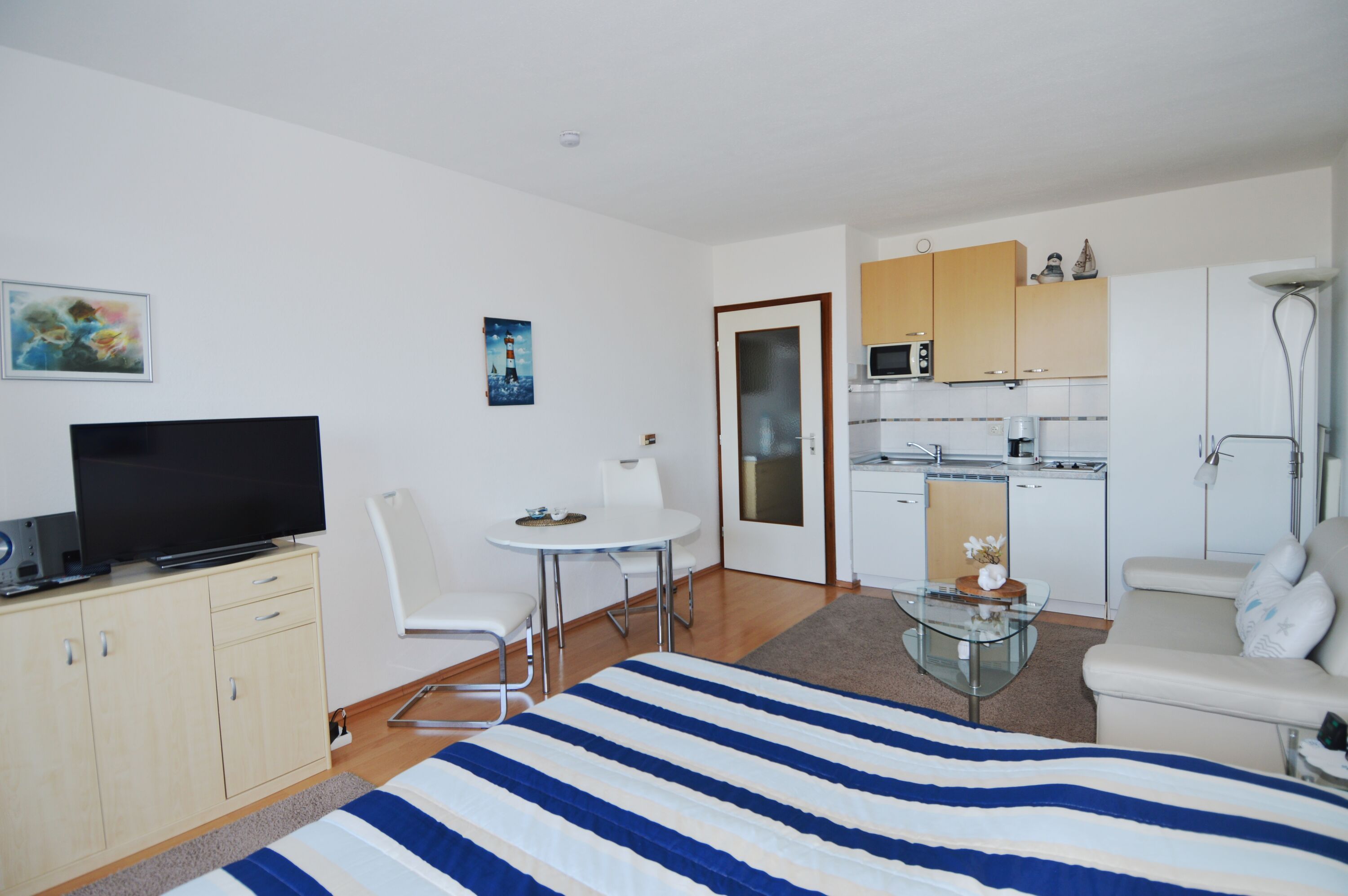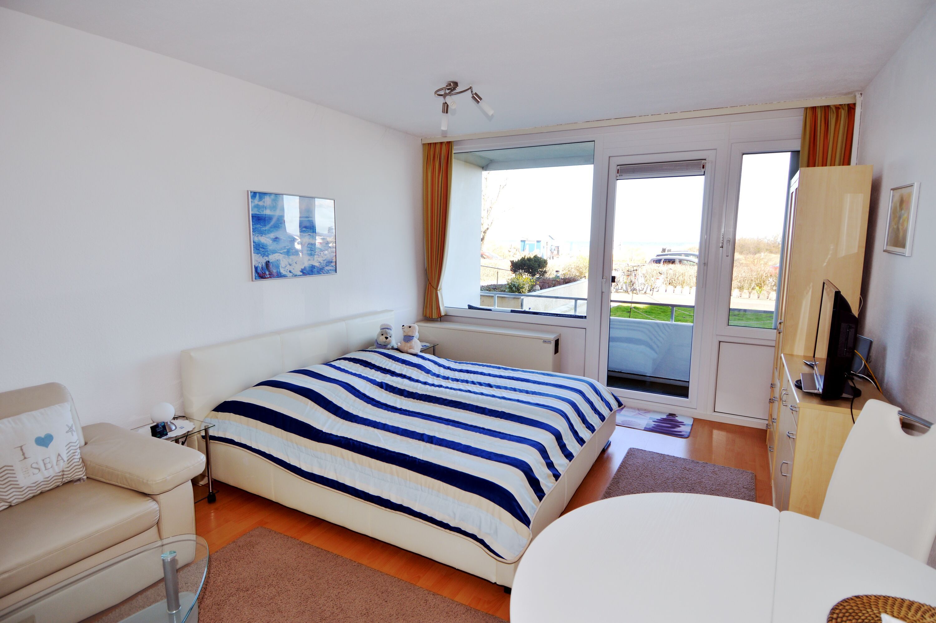Die Ferienwohnung mit dem Namen (Steinwarder 35 eg w8) bietet auf 38 m² Platz für maximal 2 Personen. Das süße Apartment verfügt über eine kleine Küche mit Mikrowelle und Kühlschrank. Auf der Loggia genießen Sie den Blick Richtung Strand und Ostsee. Zur Wohnung gehört ein eigener PKW Stellplatz.