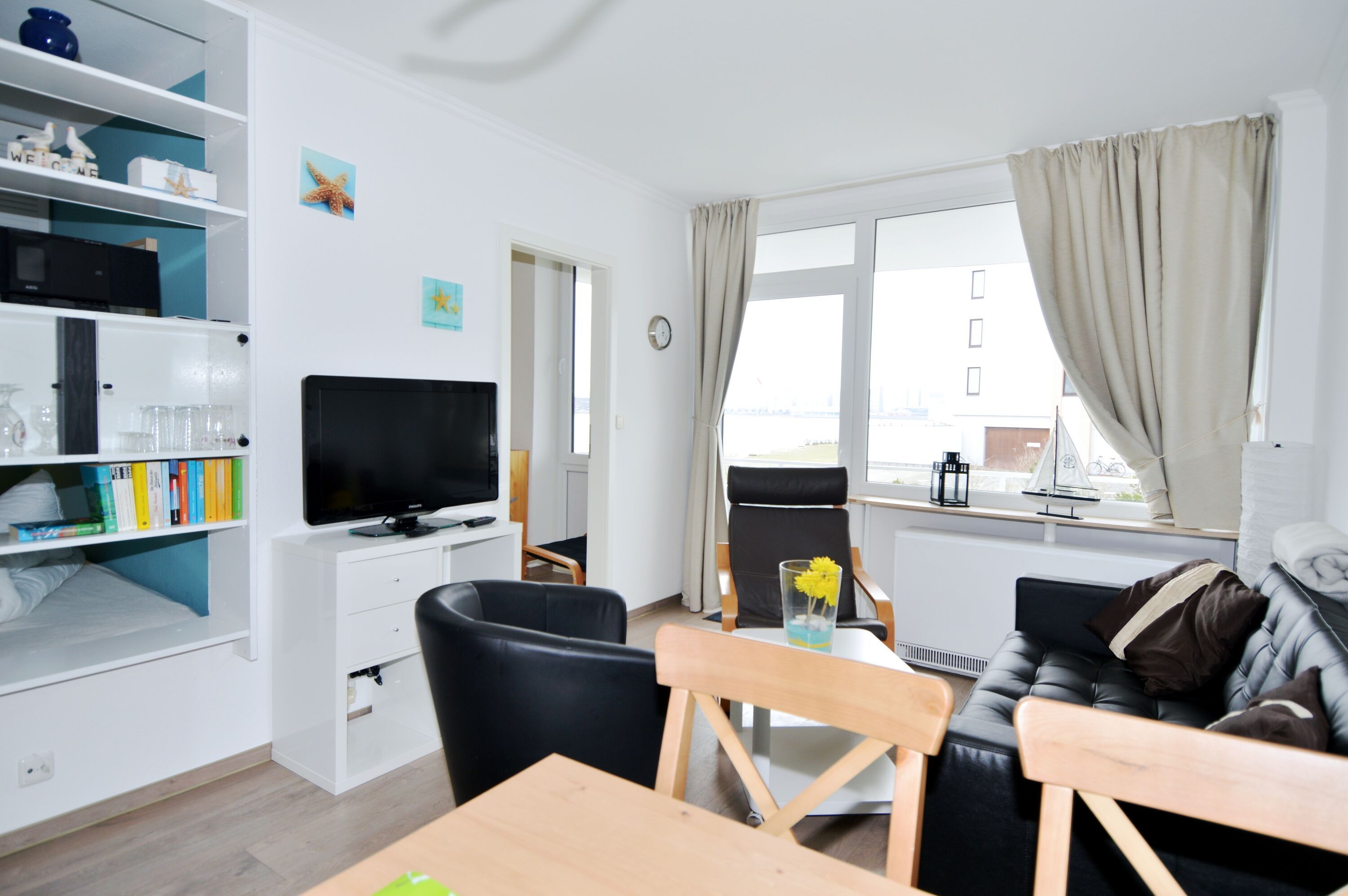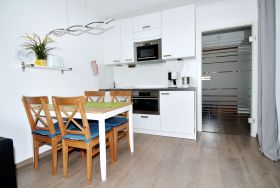 Die helle Küche bietet unter anderem ein Cerankochfeld und einen Backofen. Vom Westbalkon aus genießen Sie seitlich Blick auf den Binnensee. Zur Wohnung gehört ein eigener Parkplatz. Gerne dürfen Sie Ihren (kleinen) Hund mitbringen.