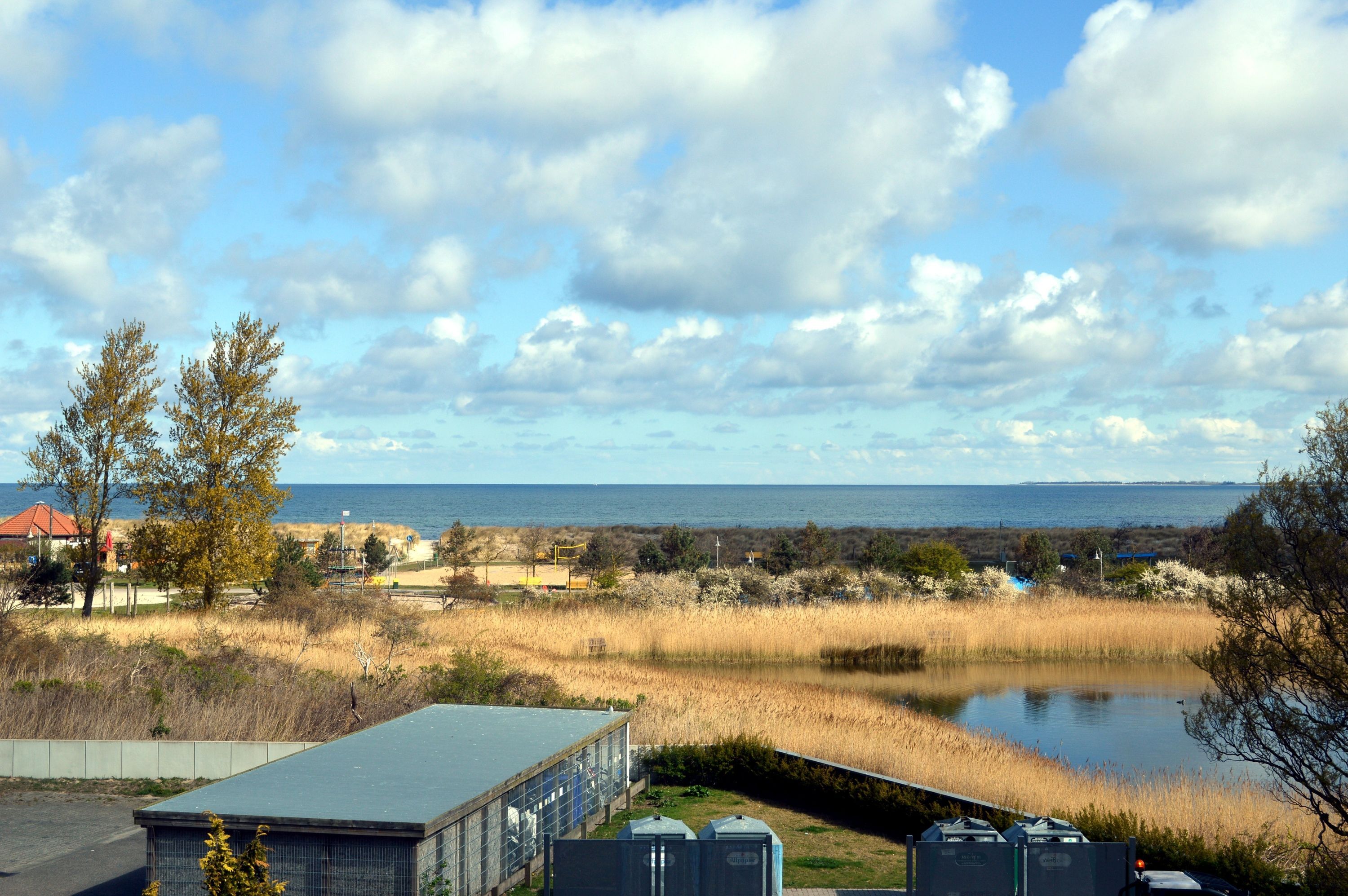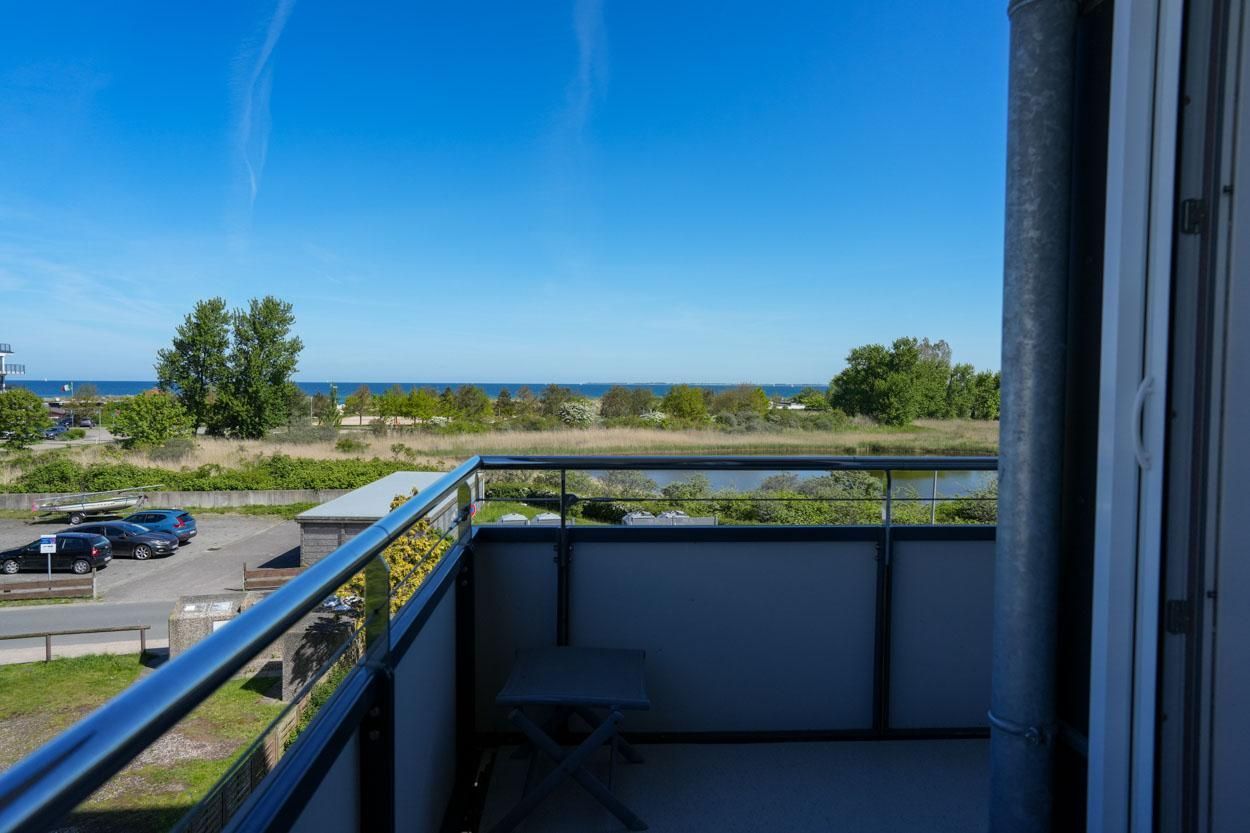 Sie befindet sich in der 2. Etage und besitzt einen Eckbalkon, der Ihnen einen großartigen Blick auf die Ostsee und seitlichen Blick auf den Binnensee bietet.