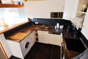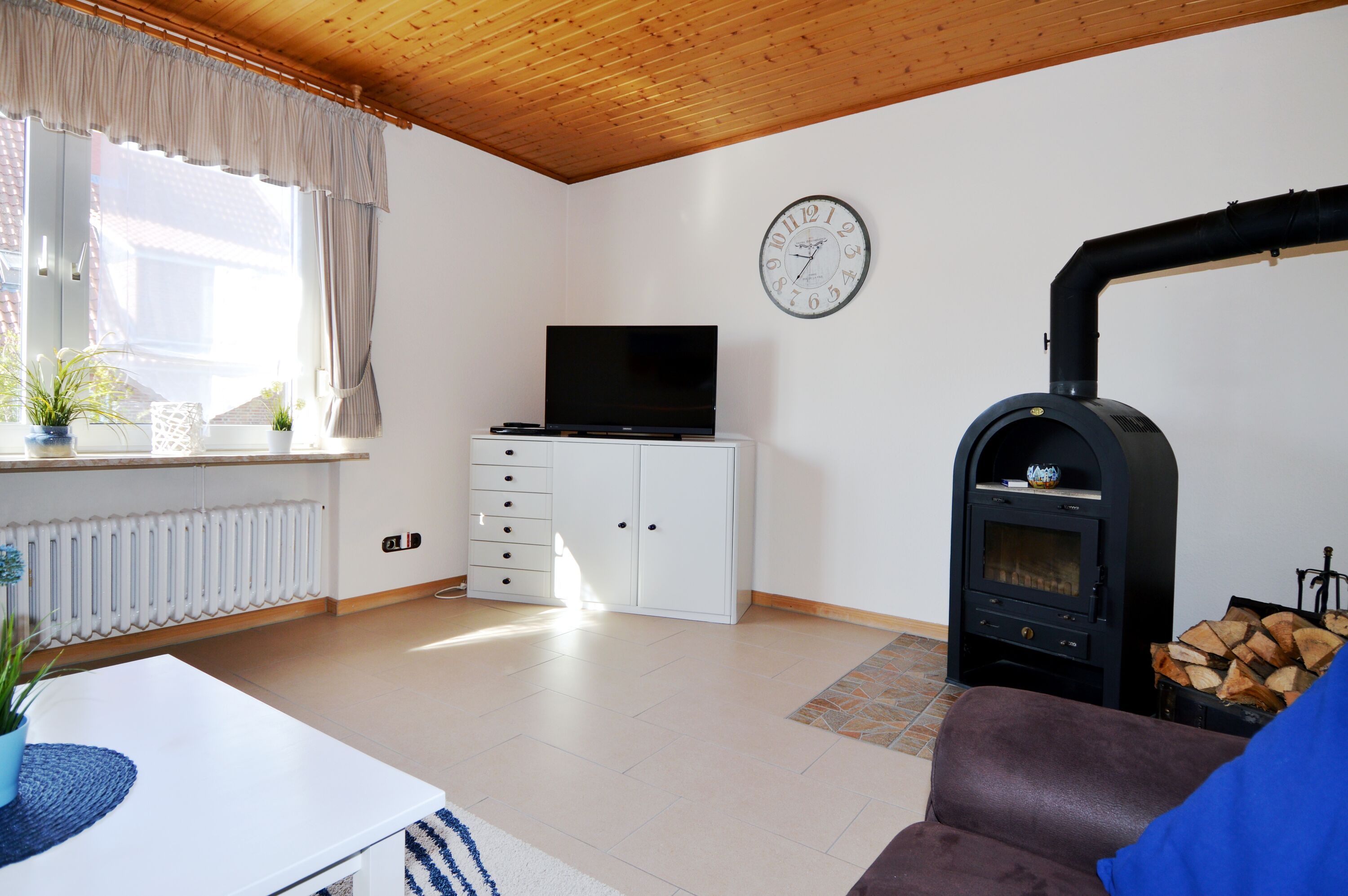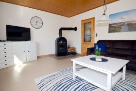 Im 1. Stock befindet sich das Elternschlafzimmer mit einem Doppelbett und eigenem TV, sowie das gemütliche Wohnzimmer mit Kaminofen. Nebenan ist die moderne Küche mit Cerankochfeld, Backofen, Geschirrspüler und Waschmaschine, ihr schließt sich die rustikale Sitzecke und der Balkon an. Das Duschbad mit WC befindet sich ebenfalls im 1. Stock. Das zweite Schlafzimmer befindet sich im Dachgeschoss und ist mit Einzelbett, Gitterbett und TV ausgestattet.