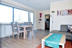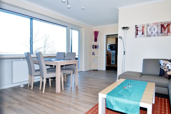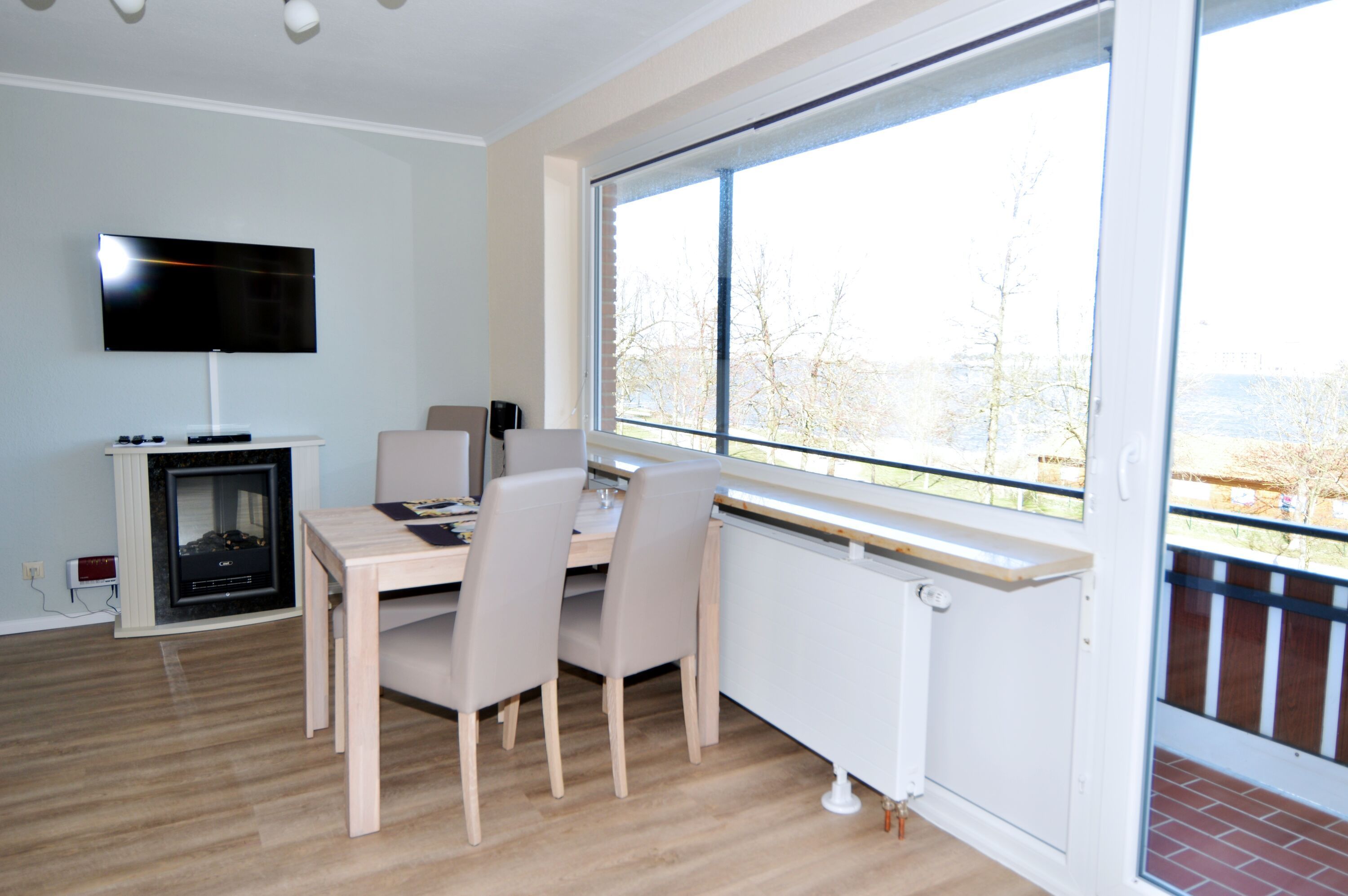 Vom großen Balkon aus genießen Sie den tollen Ausblick auf den Binnensee, diesen haben Sie auch vom großzügigen Wohn- / Essbereich aus. Der Fernseher und der Elektrokamin laden auch im Winterhalbjahr zu einer gemütlichen Auszeit bei einer Tasse Kaffee oder Tee ein.