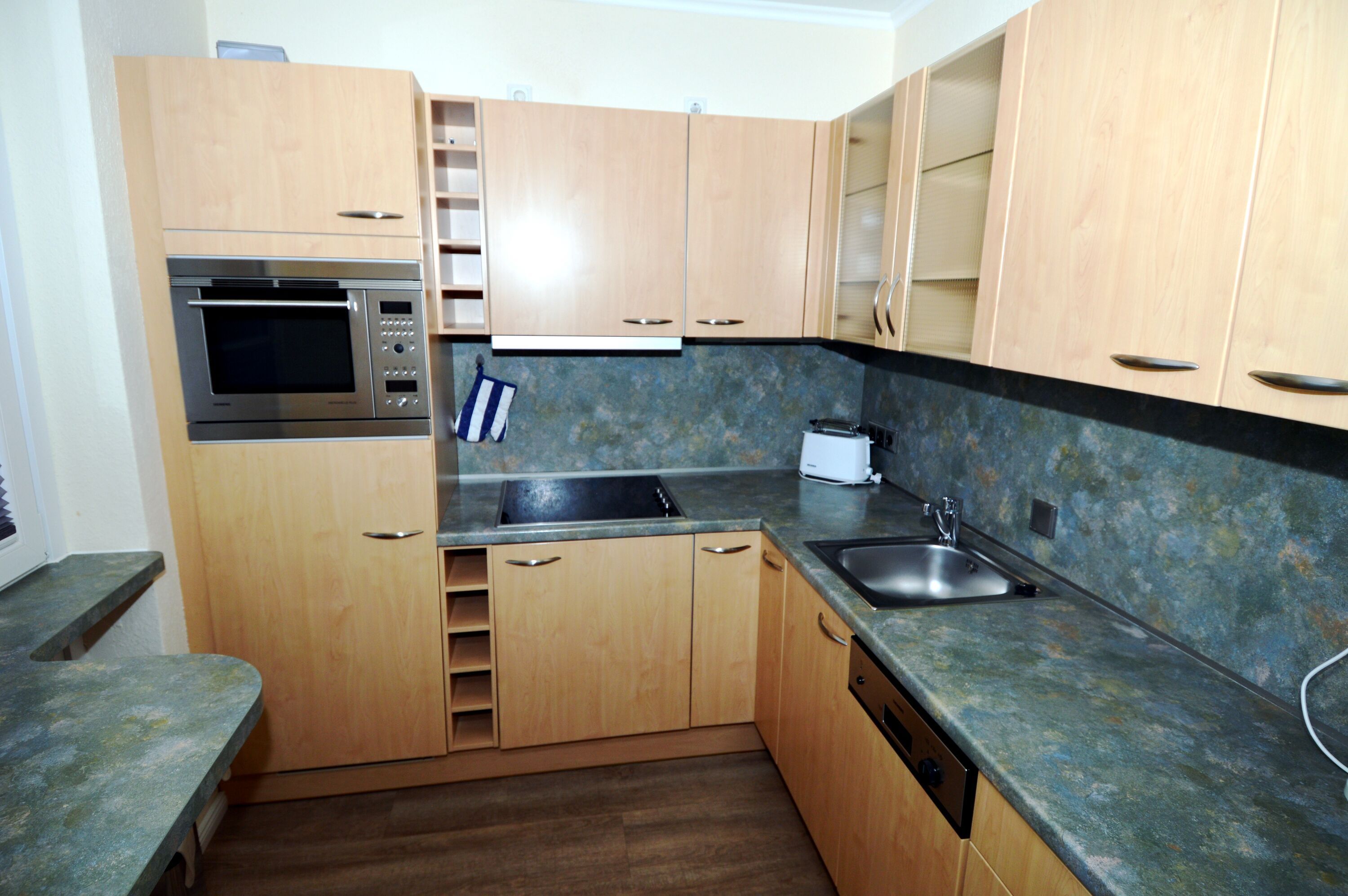 Die kleine Küche bietet mit u.a. Backofen, Geschirrspüler und Waschtrockner alles was man im Urlaub benötigt.