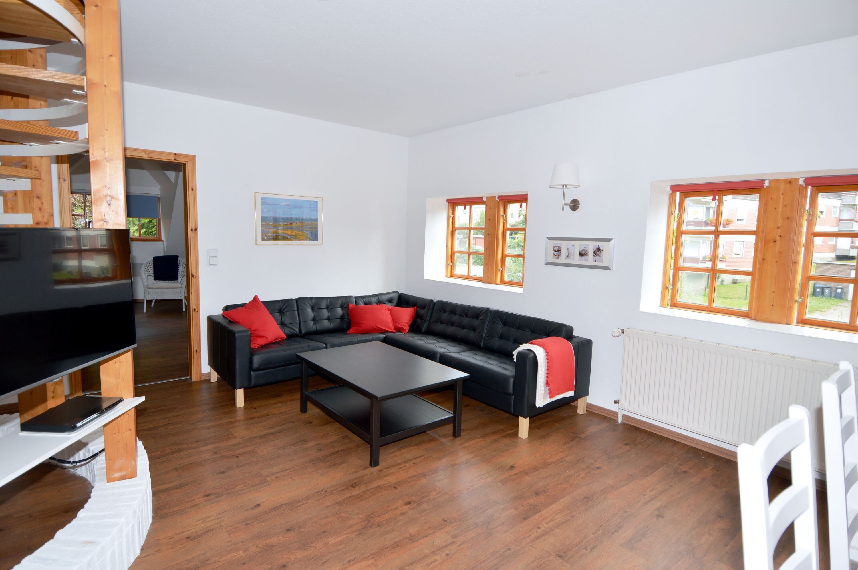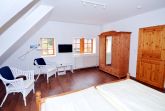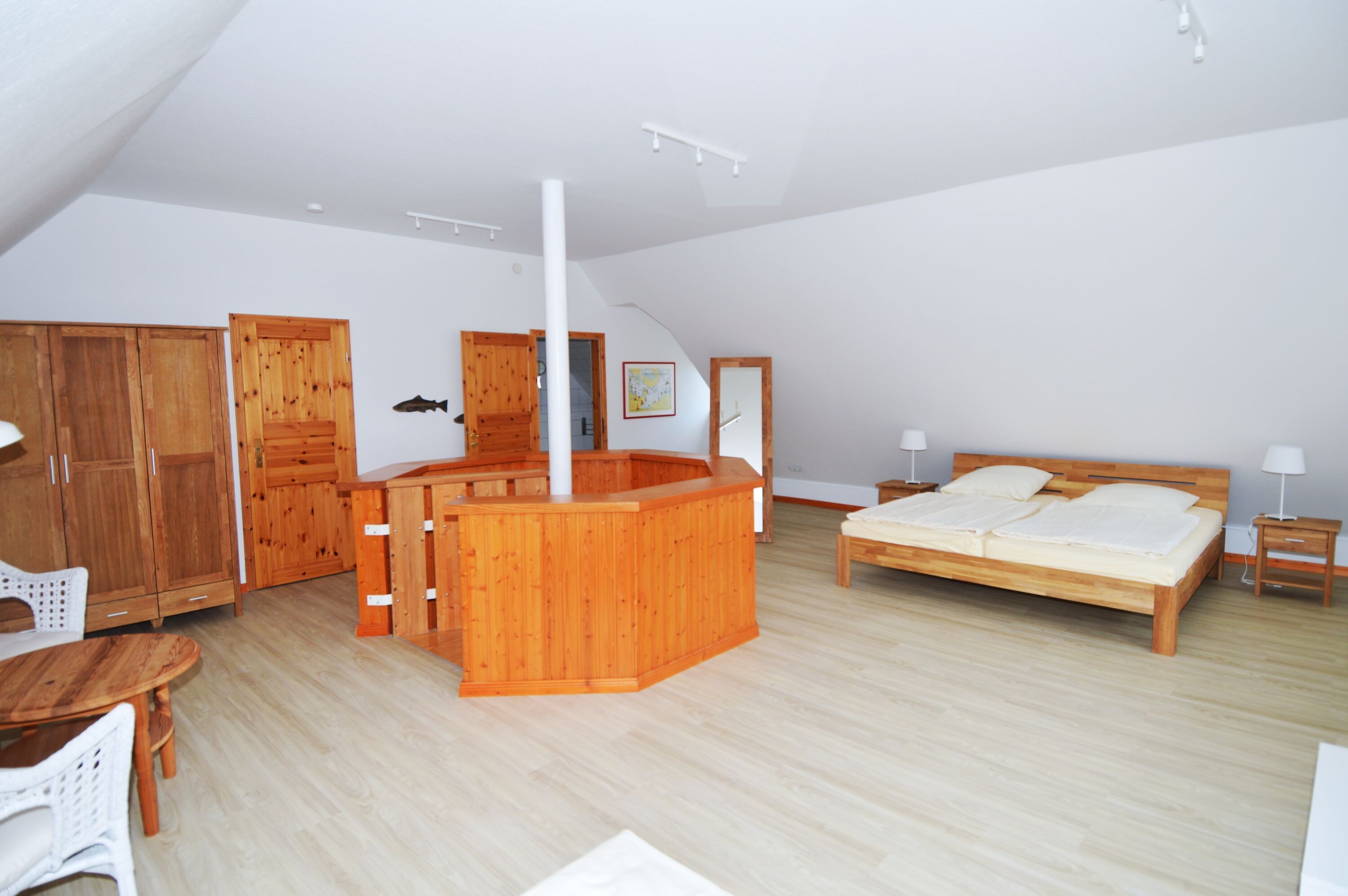 In zentraler Altstadtlage befindet sich diese ca. 85 qm große Wohnung für 5 Personen in der 1. u. 2. Etage. Sie verfügt über einen großzügigen Wohn- und Essbereich mit guter Küchenausstattung, 1 Schlafzimmer m. Ehebett (Überlänge), 1 Schlafzimmer (offen) mit Ehe- und Einzelbett über Wendeltreppe,