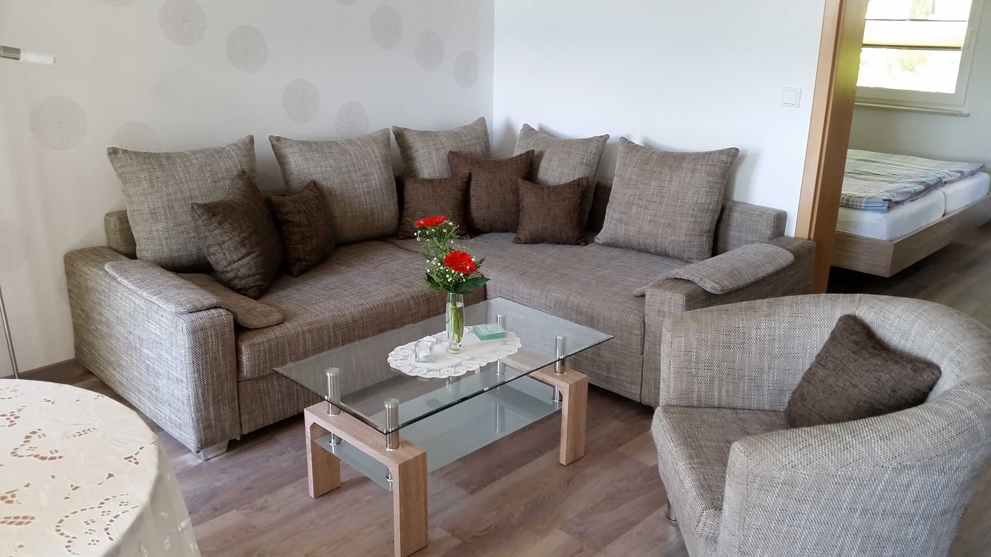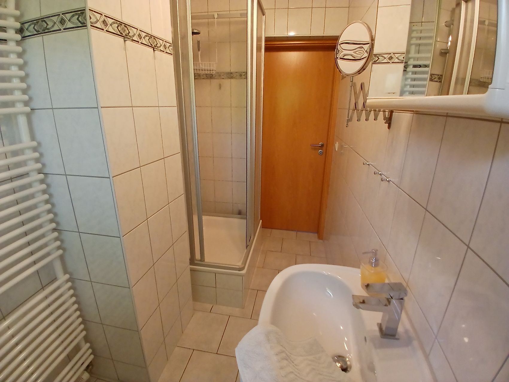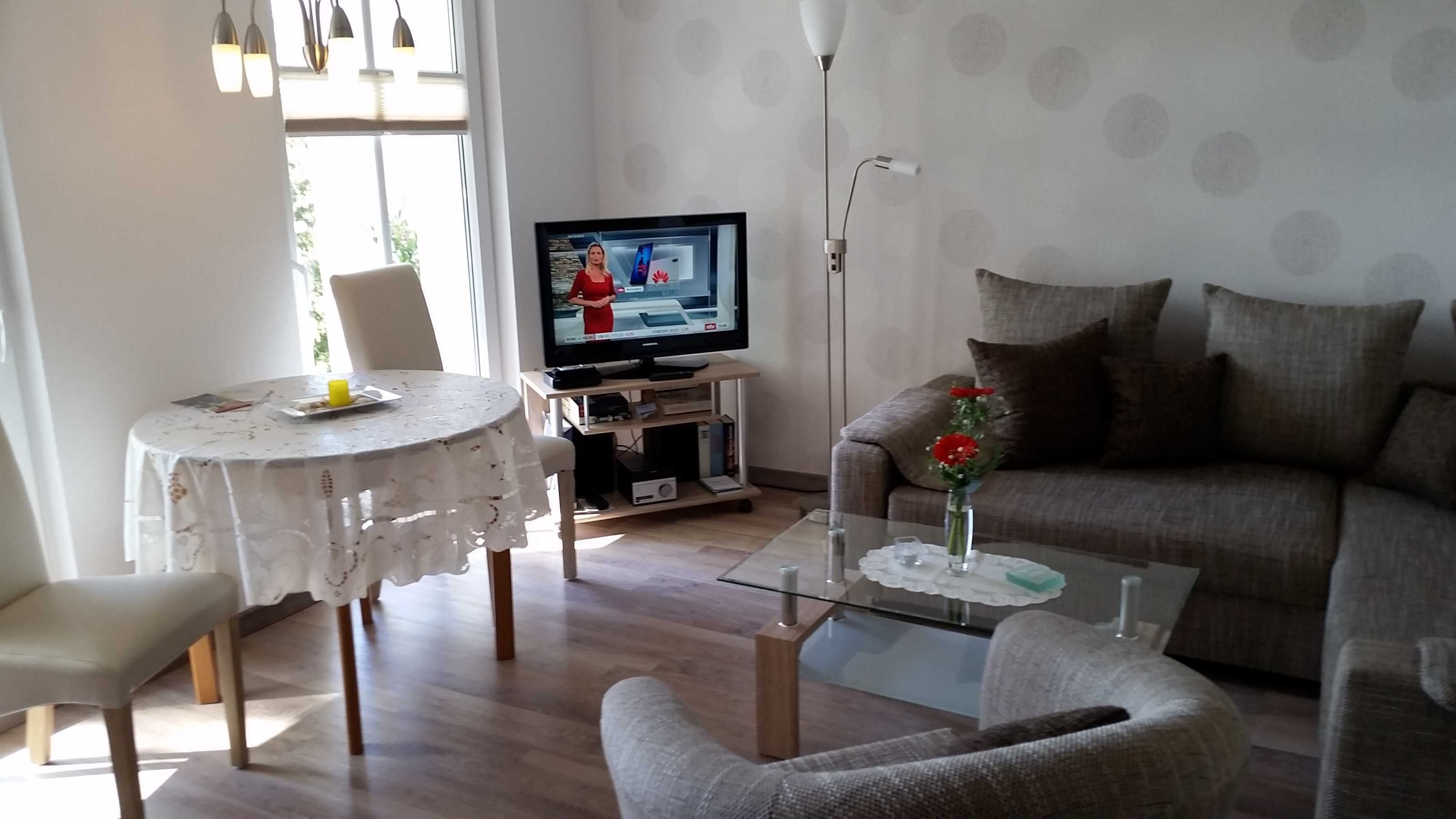 Die moderne, gepflegte NICHTRAUCHER-Ferienwohnung (45 qm) im 1. Obergeschoss mit Balkon verfügt über einen Wohnraum mit offener Küche (Backofen, Cerankochfeld, Geschirrspüler, Mikrowelle,Kaffeemaschine, Toaster, Kühlschrank mit Gefrierfach, etc.), einen Schlafraum (Doppelbett, Kommode und Kleiderschrank) sowie ein Bad mit Fenster und Dusche /WC. Erstausstattung Bettwäsche inklusive. Handtücher sind bitte mitzubringen oder mietbar für 8,-€ p.Person (Erstausstattung). PKW Stellplatz kostenlos