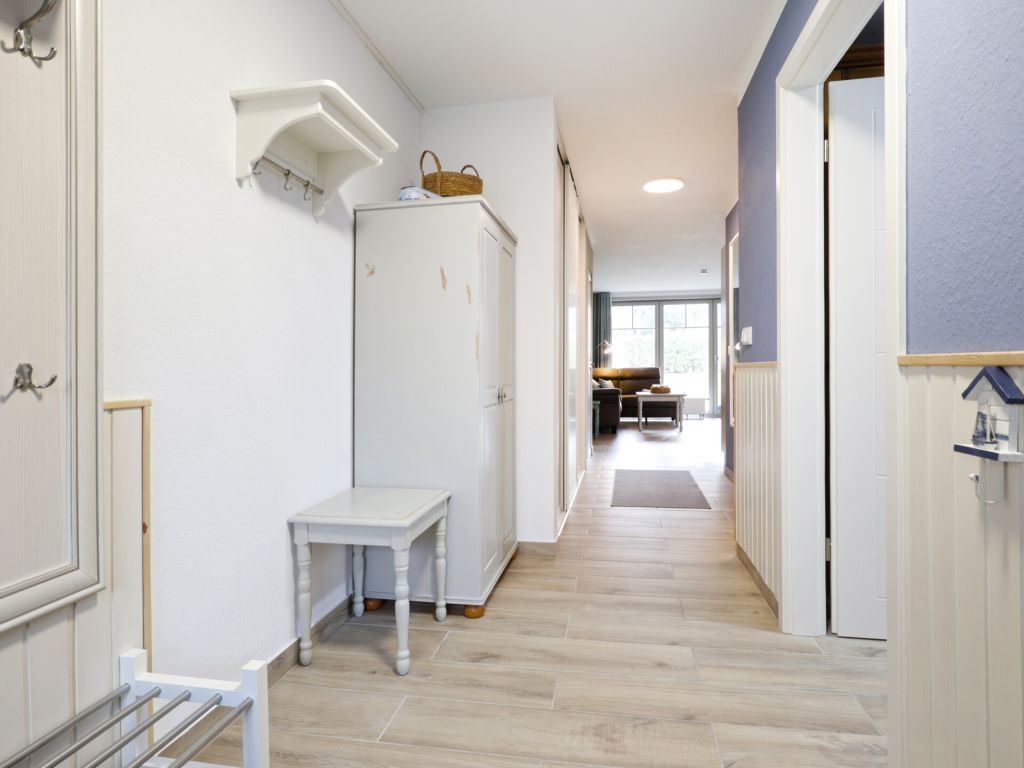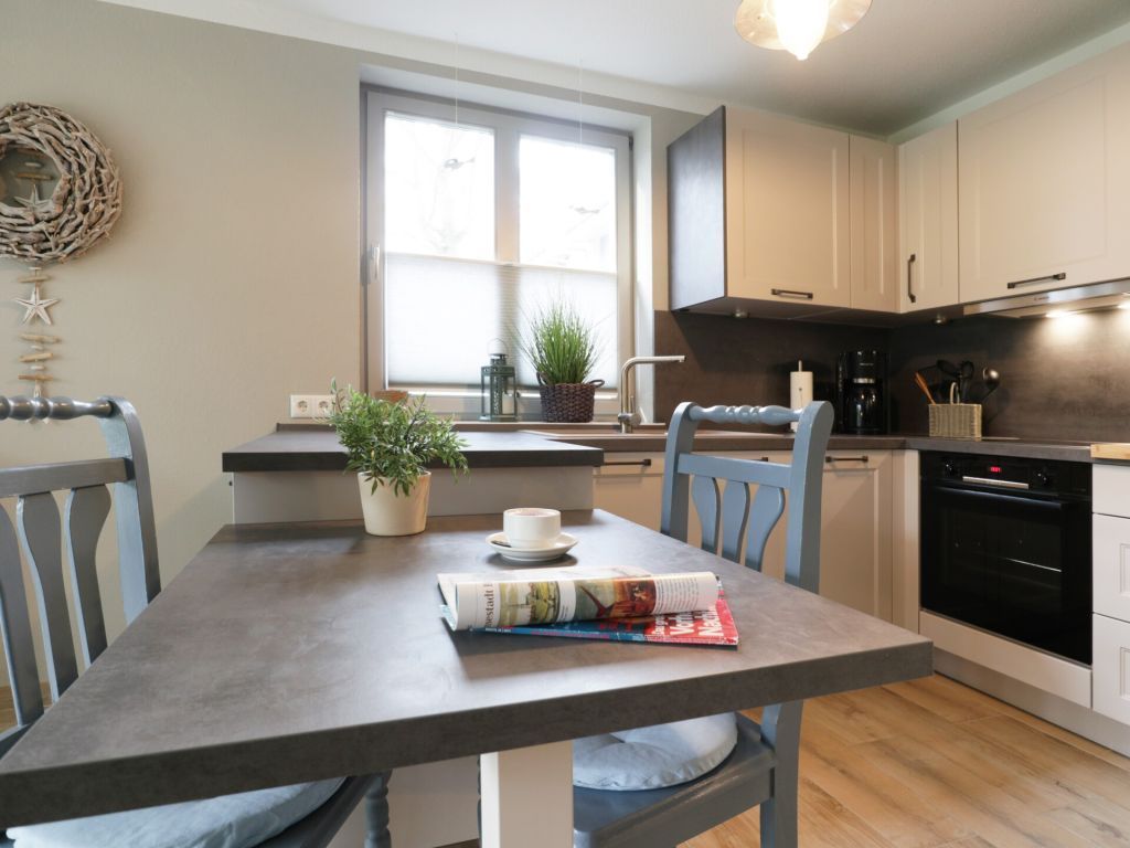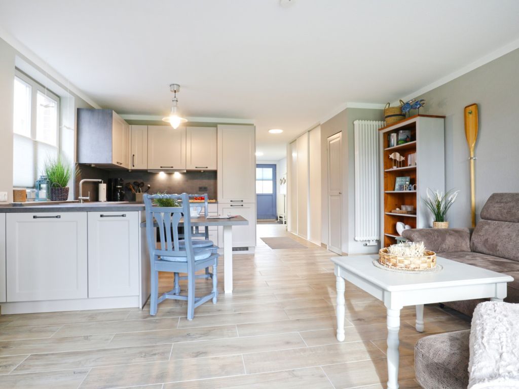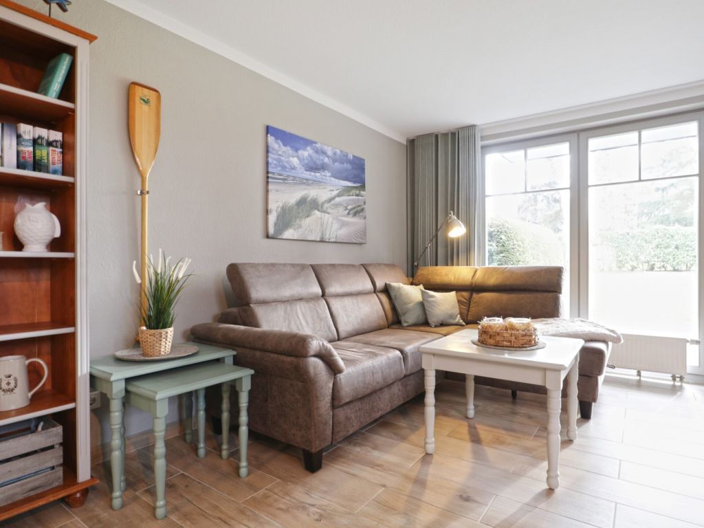 Die vollständig modernisierte 2-Zimmer Ferienwohnung Papillon 17-4, bietet eine geräumige Wohnfläche von 55qm und kann mit bis zu 3 Personen belegt werden.Die hochwertig möblierte Wohnung befindet sich im Erdgeschoss und bietet eine Terrasse mit Elektrogrillmöglichkeit. Der im offenen Stil gestaltete Wohn-/Essbereich ist mit einer gemütlichen Couch ausgestattet, welche sich leicht zu einem Schlafplatz mit den Maßen 180 x 200cm umwandeln lässt. Moderne Unterhaltungselektronik bieten Smart - TV mit Soundbase sowie Musikanlage und kostenfreies WLAN. Vollständig ausgestattet ist die offene Komfortküchenzeile, so dass Sie sich bei Bedarf selbständig mit Urlaubsmahlzeiten versorgen können. Ihre gemeinsamen Mahlzeiten nehmen Sie an einem Esstisch zu sich. Während der wärmeren Jahreszeit können Sie Ihre Mahlzeiten auch auf der saisonal möblierten Terrasse mit Blick ins Grüne genießen und wenn Sie mögen, gerne den hochwertigen Elektrogrill nutzen.