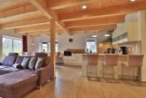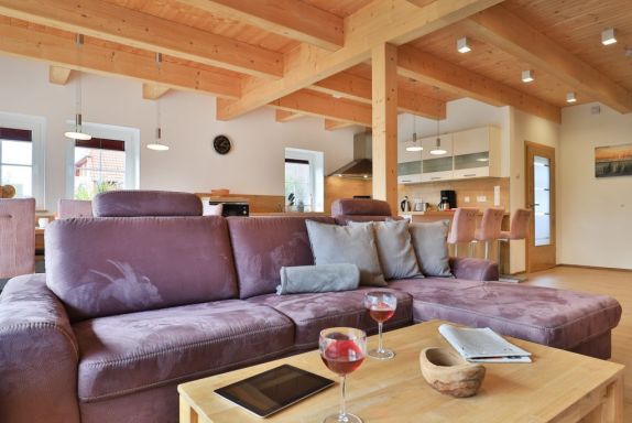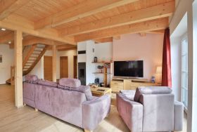 Die Möblierung im Erdgeschossbereich ist stilvoll. Eine Sofalandschaft lädt zur Auszeit am wohligen Kaminofen ein. Fernseher, Musikanlage und auch kostenfreie WLAN-Nutzung sind vorhanden. Vom Wohnbereich gelangen Sie eine saisonal möblierte Terrasse in süd-/westliche Ausrichtung. Der große Garten ist ideal für Kinder und bietet zudem eine Grillmöglichkeit. Die offene Küche ist in den Wohnbereich integriert und verfügt über ein Induktionskochfeld, Backofen, Mikrowelle, Kühlschrank, Gefrierschrank, Kaffeemaschine, Toaster, Wasserkocher, Geschirrspüler u.v.m. Ihre zubereiteten Mahlzeiten nehmen Sie an einem großen Esstisch zu sich. Bei schönem Wetter, bestimmt auch gerne auf der Terrasse mit Blick in den Garten. Eines der separaten Komfort- Schlafzimmer befindet sich auf der Wohnebene. Dieses Schlafzimmer ist mit einem Doppelbett, TV und einem eigenen Bad mit ebenerdiger Dusche ausgestattet. Auch ein Hauswirtschaftsraum mit kostenfreier Waschmaschine & Wäschetrocknernutzung sowie ein Gäste-WC sind im Erdgeschoss vorhanden.