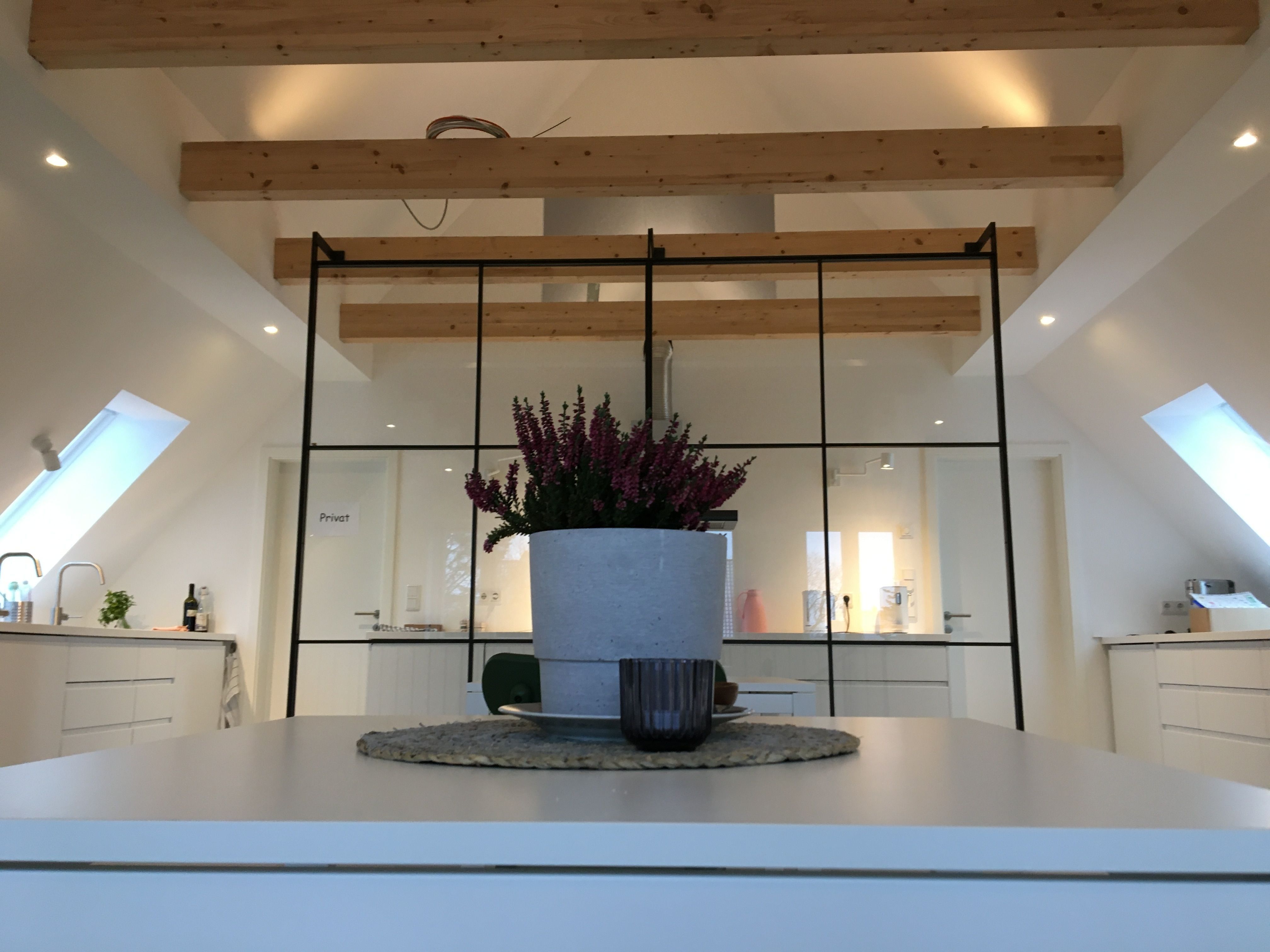 Im Dachgeschoss befindet sich die Wohnung des Gastgebers und der Frühstücksbereich, wo wir Euch (optional) ein reichhaltiges und gesundes Frühstück servieren. Der Preis beträgt € 17,50 pro Person/Frühstück und kann optional auch vor Ort dazu gebucht werden.