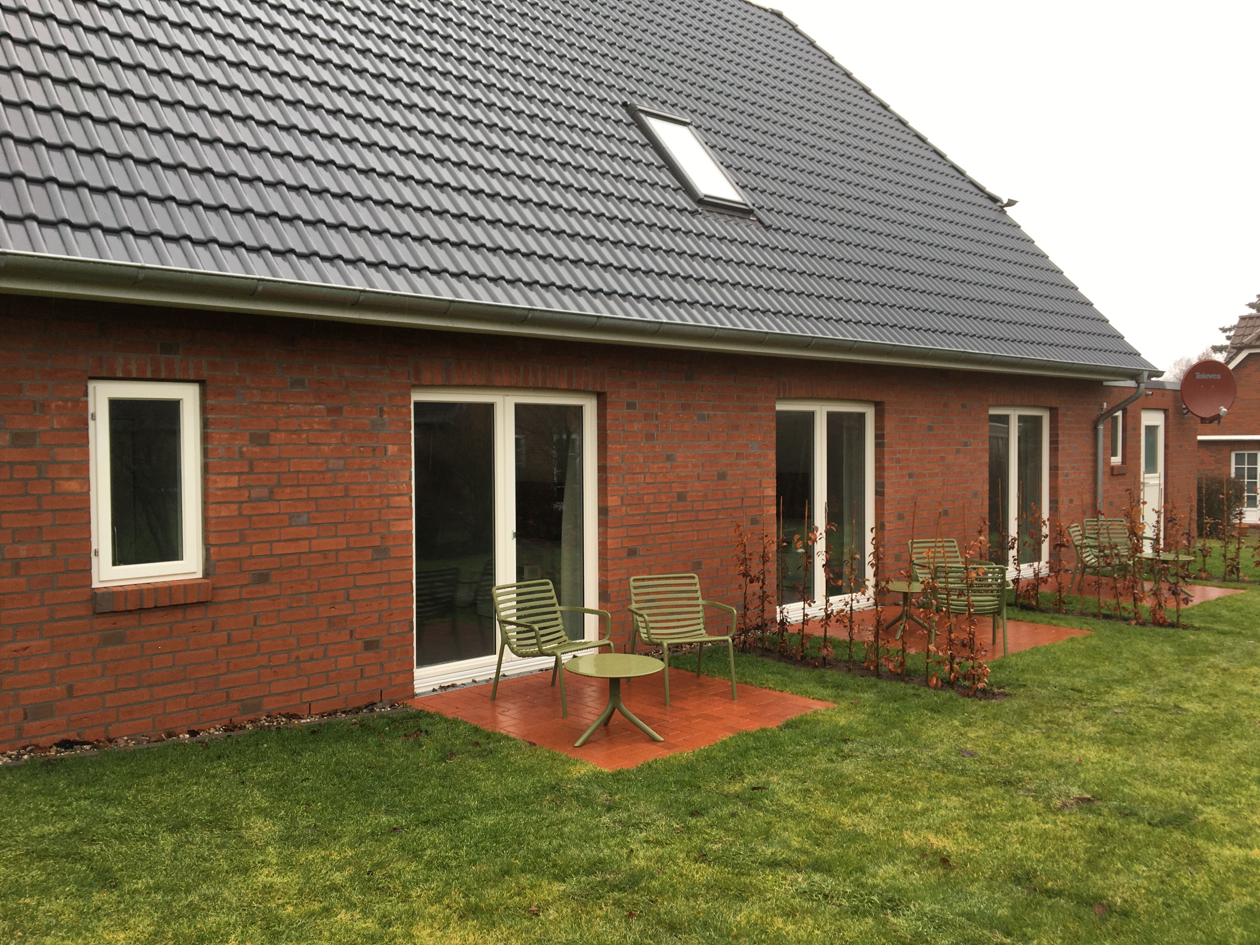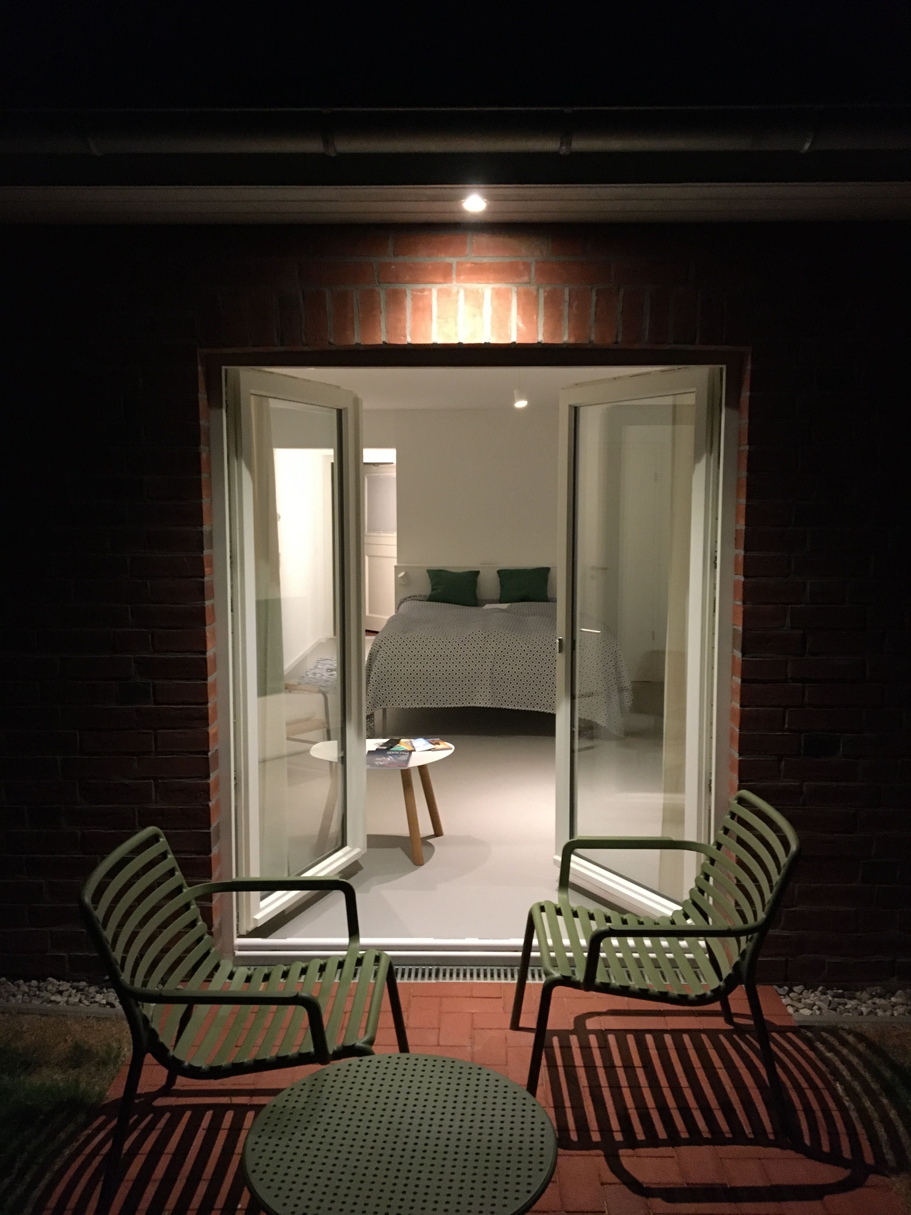 Auf unserem circa 900 qm großen Grundstück im kleinen Dorf Wrixum entstand in 2023 ein modernes Gästehaus mit 3 Appartements, die jeweils über einen eigenen Eingang und eine Terrasse verfügen. Bei der Gestaltung der Appartements haben wir ein minimalistisches Innendesign verfolgt.