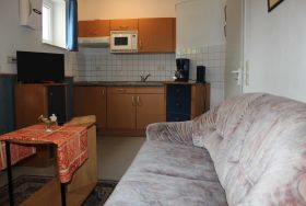 Das 25 Quadratmeter grosse Appartment ist ausgestattet mit einem kombinierten Wohn- und Schlafbereich (mit einem Doppelbett), einer offenen Küche und einem Duschbad.