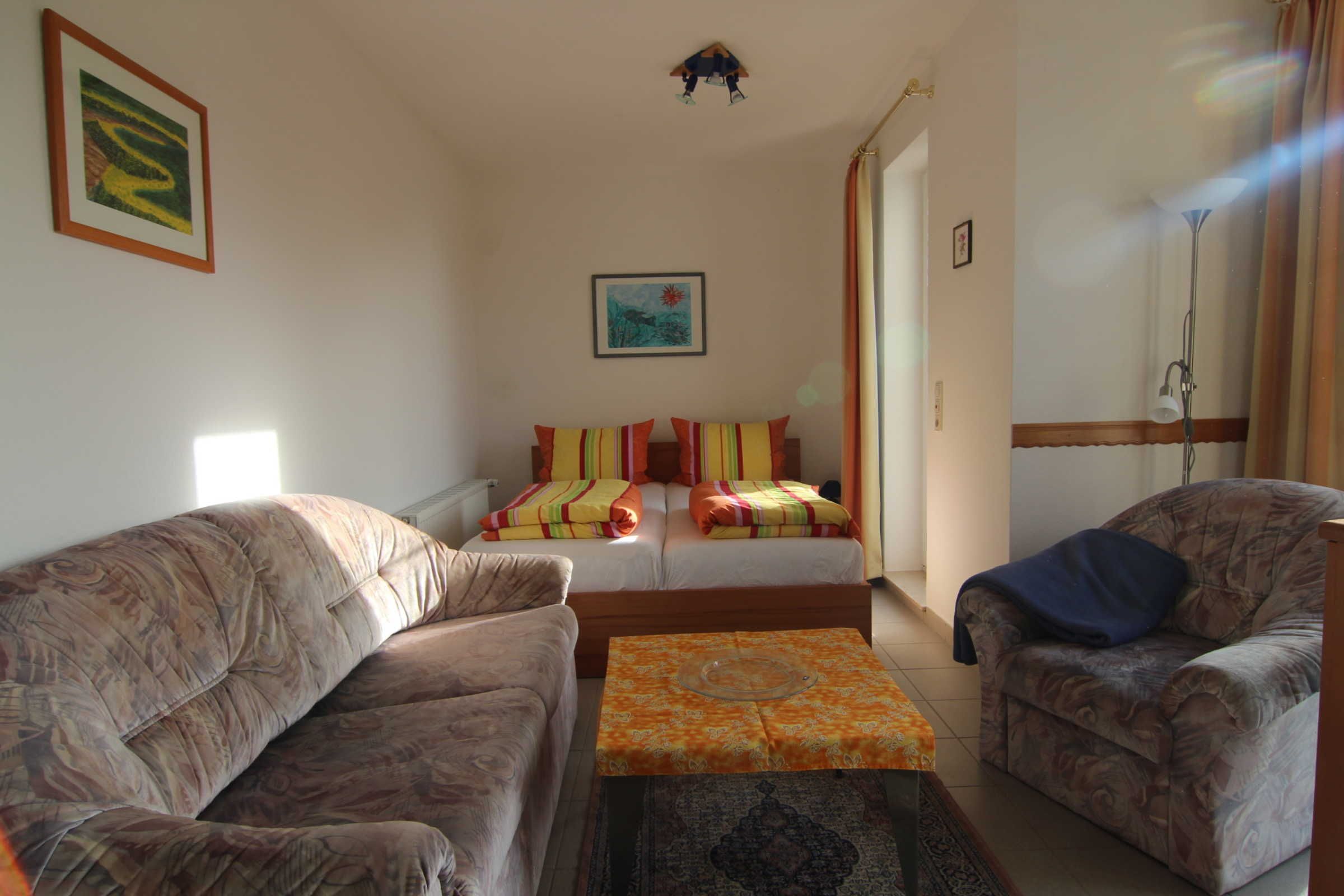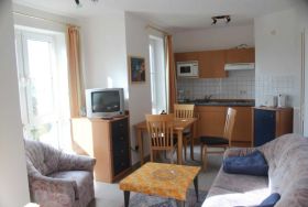 Das 25 Quadratmeter grosse Appartment ist ausgestattet mit einem kombinierten Wohn- und Schlafbereich (mit einem Doppelbett), einer offenen Küche und einem Duschbad.