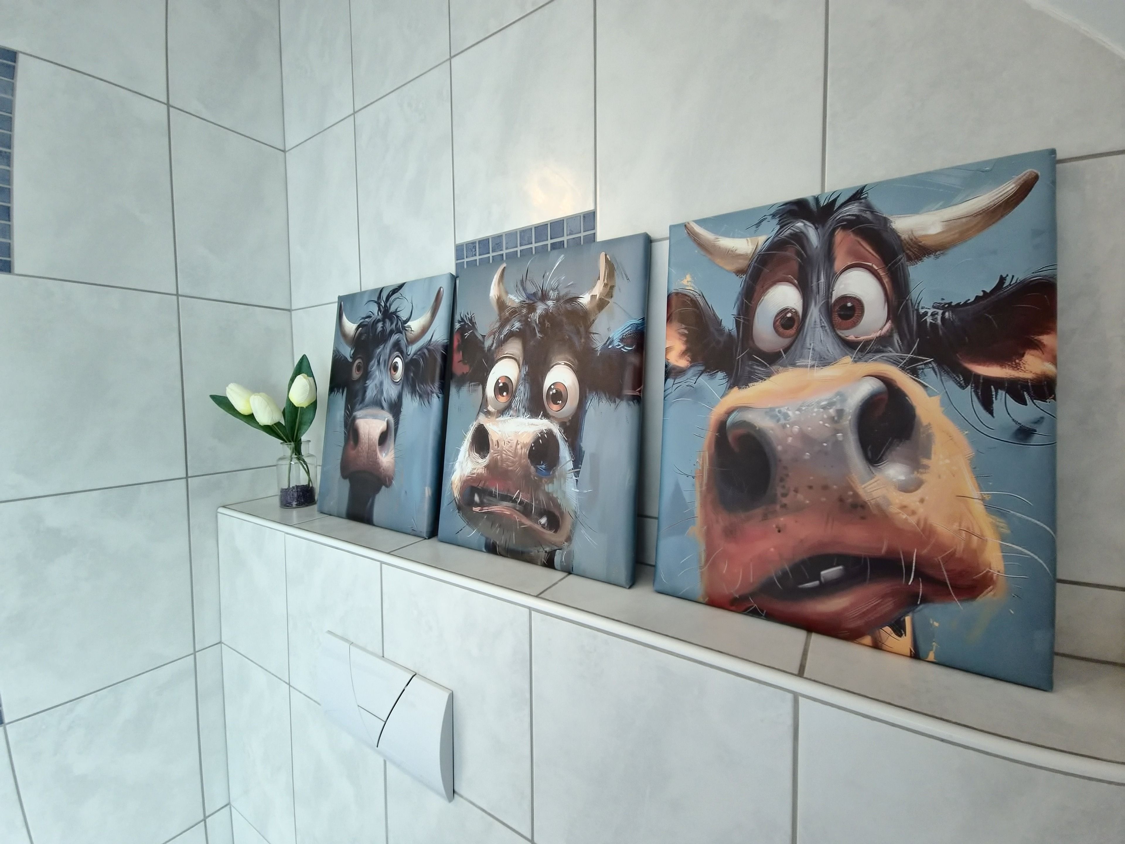 Die großen Fenster zur Weide raus, laden zum Beobachten ein. Vielleicht entdeckt man ein neugeborenes Kälbchen!