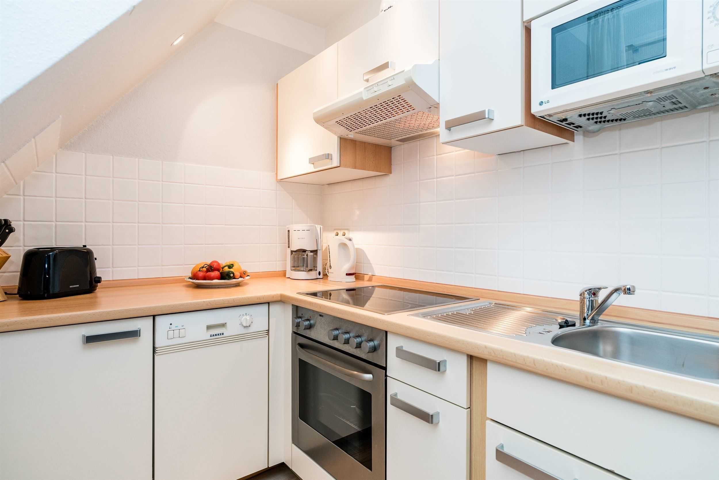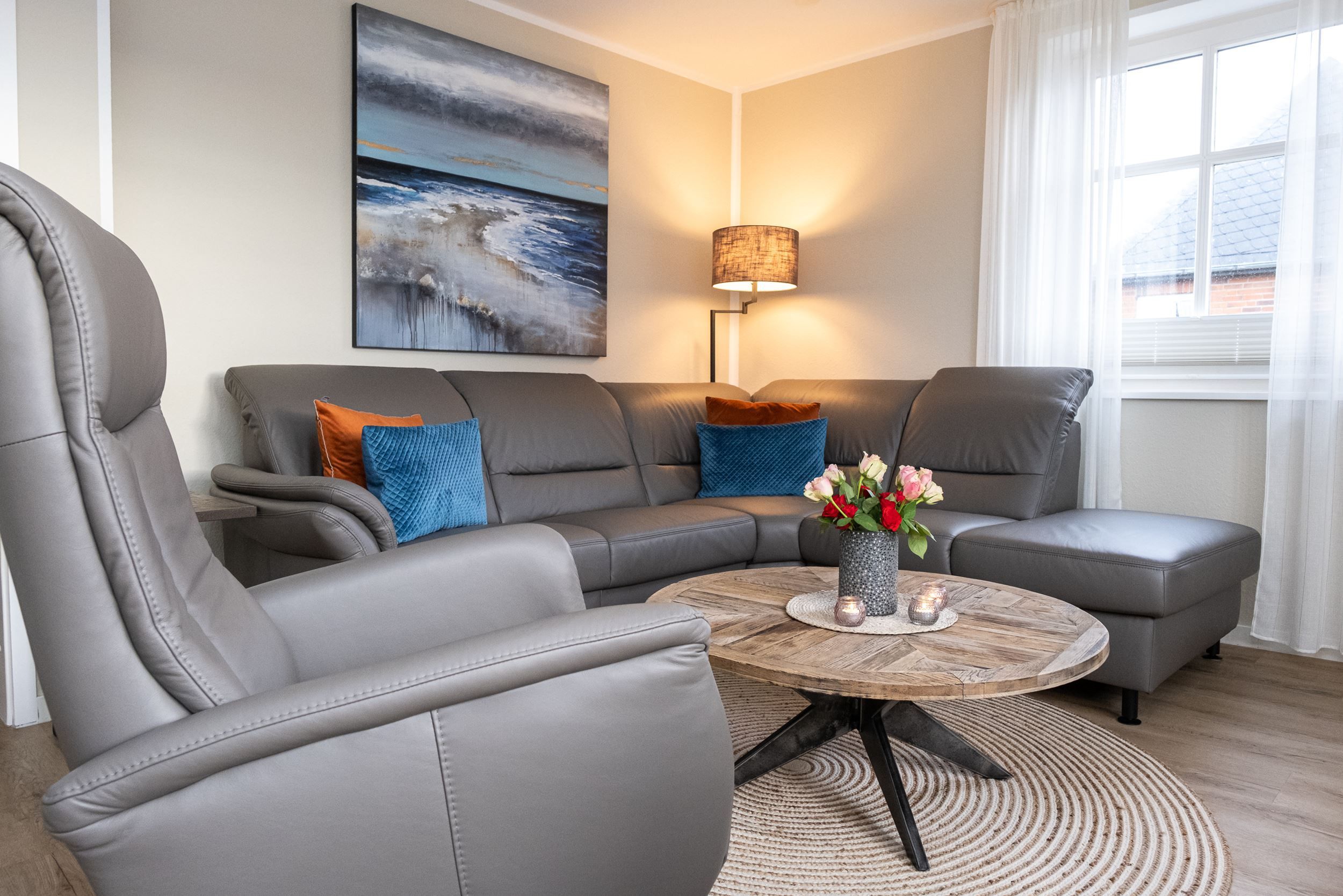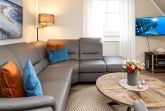 Die Raumaufteilung mit 2 Schlafzimmern, davon eines im 1. OG mit bequemen Doppelbett und einem weiteren Schlafzimmer (mit Doppelbett und einer Schlafcouch), welches über eine Treppe innerhalb der Wohnung erreichbar ist, macht diese Unterkunft ideal für Familien oder Gruppen. Das Wohnzimmer verfügt über eine große, sehr bequeme Couch und einem großzügigen Essplatz. Die Küchenzeile verfügt über einen Backofen, 4-Platten Herd, Geschirrspüler, Mikrowelle, Kaffeemaschine, Toaster und Wasserkocher. Das Badezimmer ist mit einer Dusche und WC ausgestattet. Die moderne und komfortable Einrichtung lässt Sei den Alltag vergessen. In dieser Unterkunft stehen erholsamen Ferien nichts im Wege.