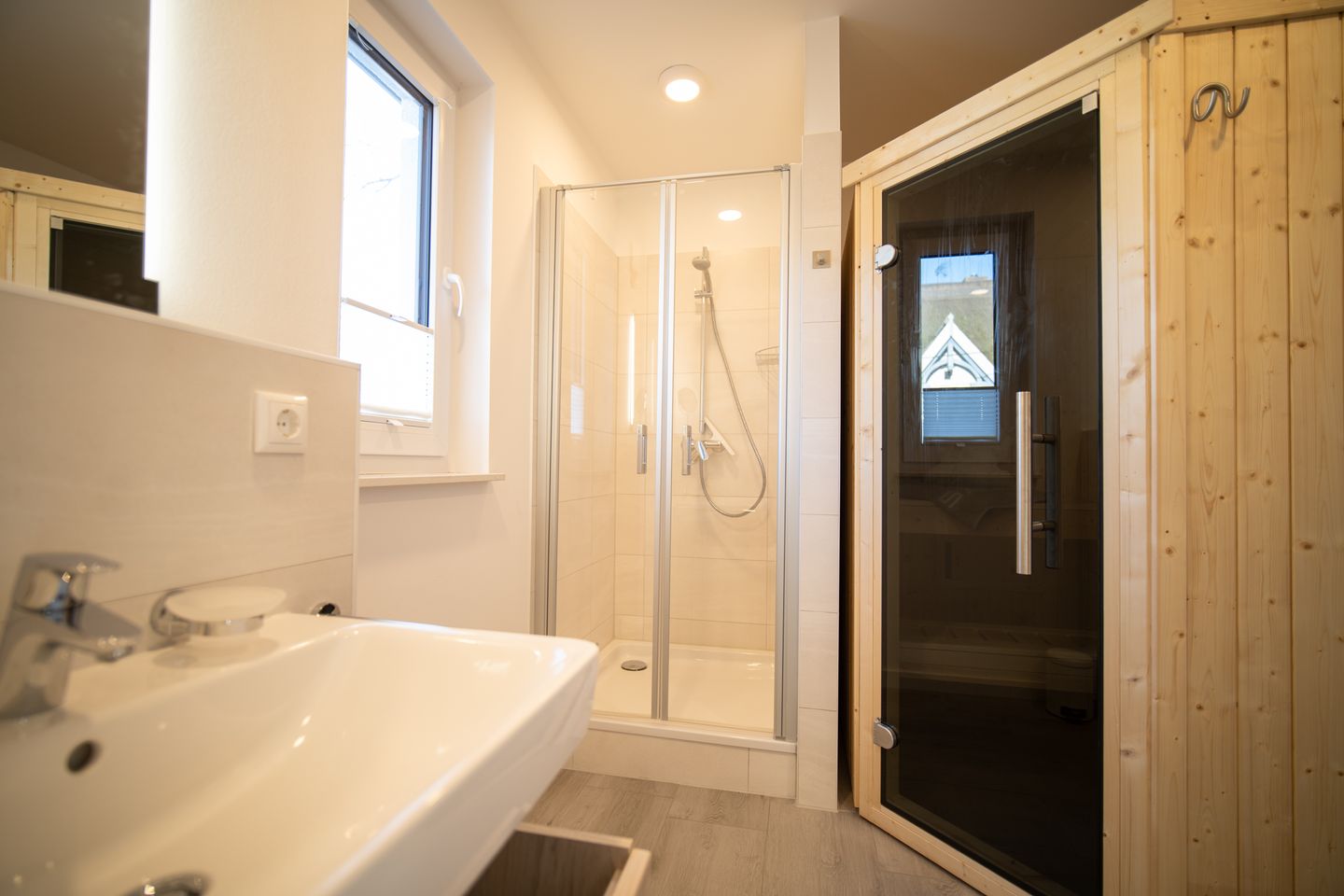 Als besonderes Highlight ist die hauseigene Sauna zu erwähnen. Diese befindet sich im unteren Duschbad und steht Ihnen selbstverständlich zur Eigennutzung zur Verfügung.