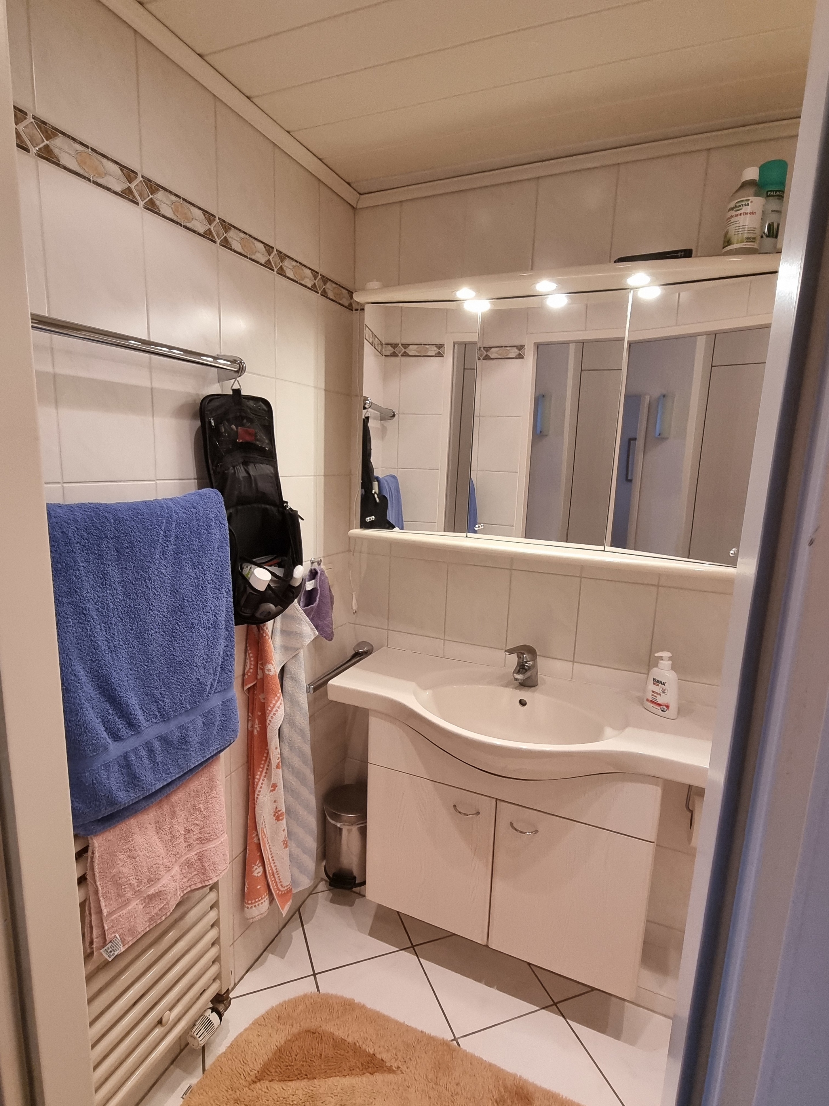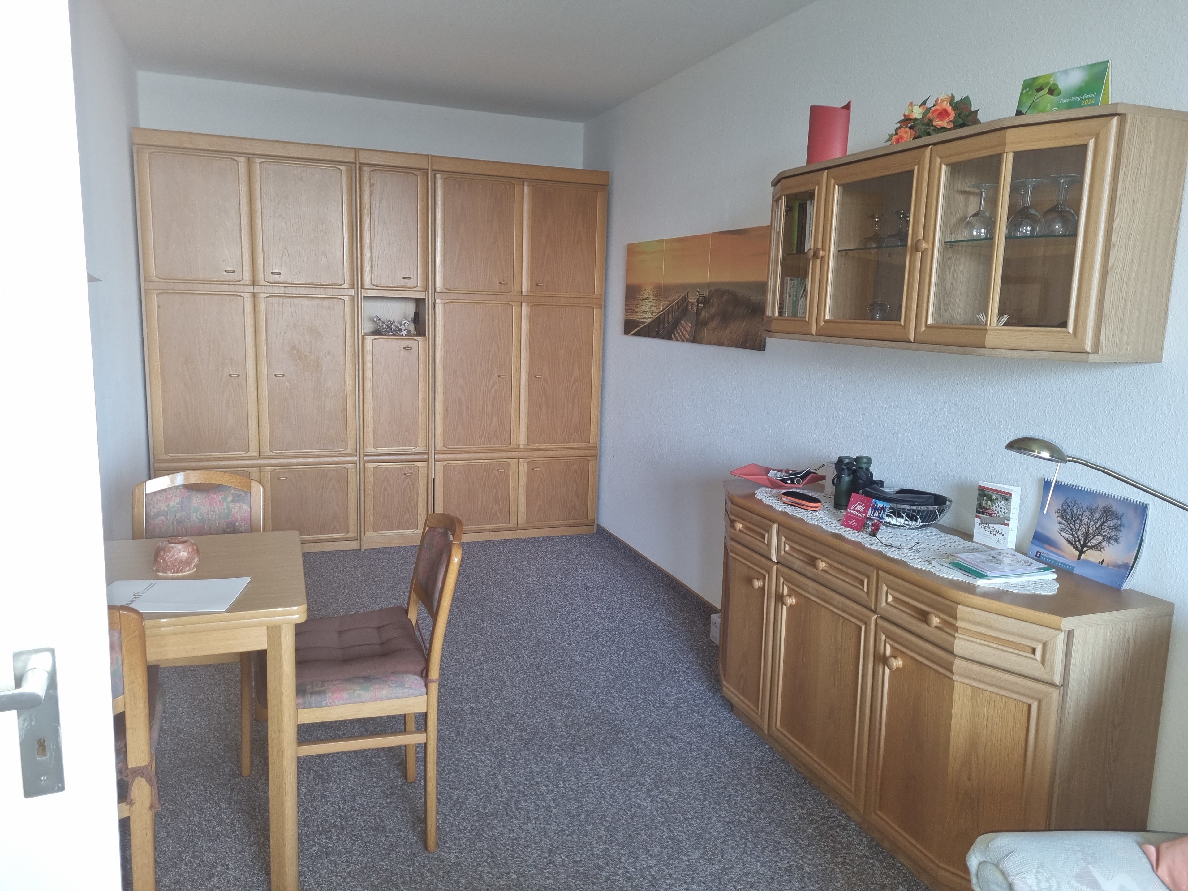 Im Wohn/Schlafbereich lädt die gemütliche Couch an regnerischen Tagen zum Verweilen ein. Hier befindet sich ein FlachTV und Zugang zum Balkon. Des weiteren befindet sich ein Esstisch inkl. 4 Stühlen im Wohnbereich. In dem hier vorhandenen Schrankbett finden 2 Personen Platz.