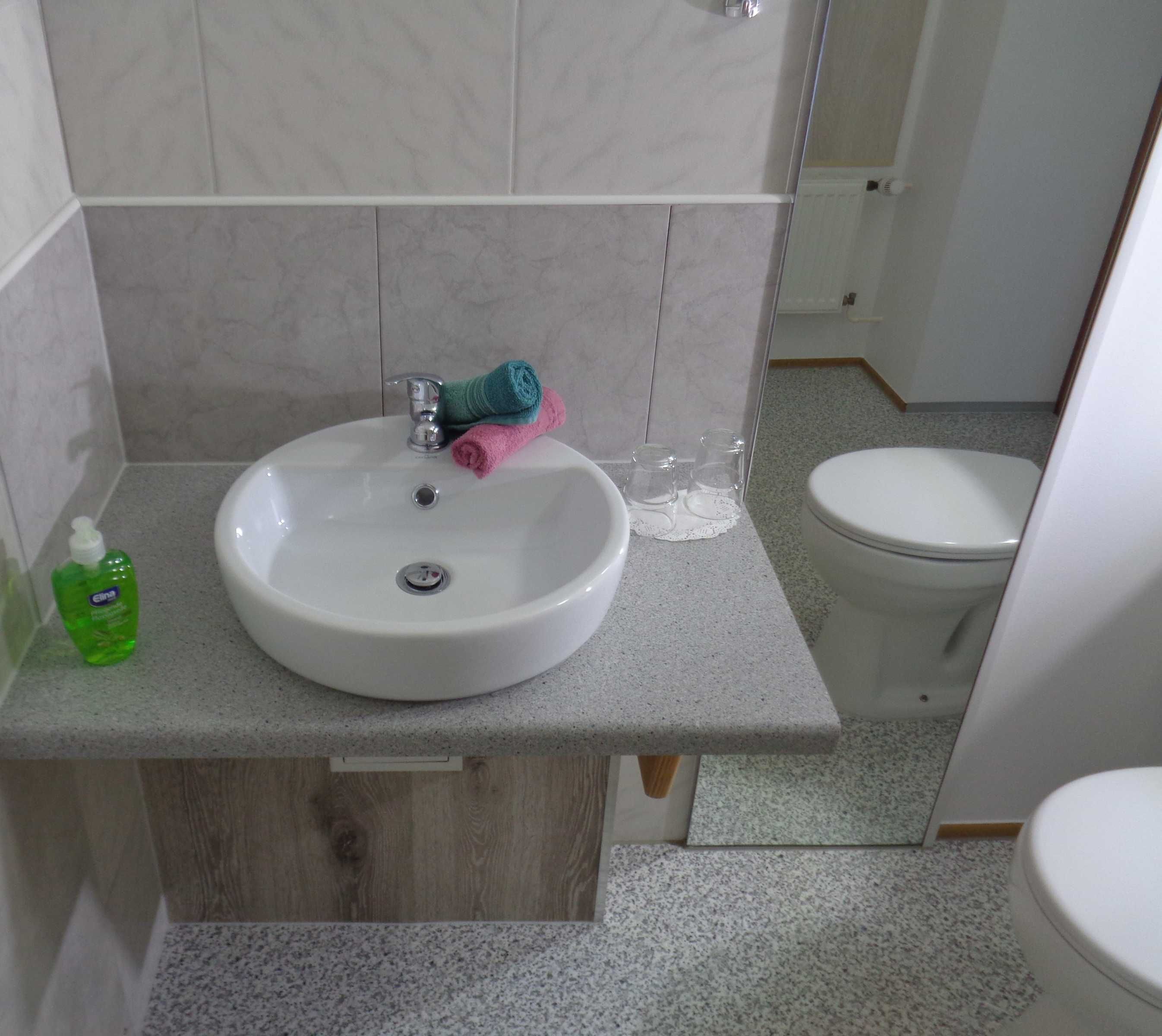 moderne Einbauküche , letzte Renovierung Februar 2023, Dusche und WC mit modernem Waschtisch