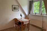 Kleine Ferienwohnung im Obergeschoss in einem schönen Reetdachhaus. Sie wohnen zentral und strandnah, aber trotzdem ruhig. Die Wohnung verfügt über ein gemütliches Wohnzimmer mit Couch und Sessel sowie einem Fernseher. Im separaten Schlafzimmer finden Sie ein Doppelbett sowie einen Essplatz. Das Tageslichtbad ist mit einer Dusche ausgestattet. Die Küche befindet sich im Eingangsbereich der Wohnung und ist ausgestattet mit einem Zwei-Platten-Cerankochfeld, einem Kühlschrank (mit Eisfach) sowie Wasserkocher, Toaster und Kaffeemaschine. Das Tageslichtbad verfügt über eine Dusche / WC. Zur Wohnung gehört ein großer Garten, der gemeinschaftlich mit anderen Gästen genutzt werden kann. Ein Parkplatz ist ebenfalls vorhanden. Der Eingang zur Wohnung führt über eine Treppe. Die Bettwäsche ist im Preis inklusive. Handtücher müssen mitgebracht werden oder können kostenpflichtig dazu gebucht werden.