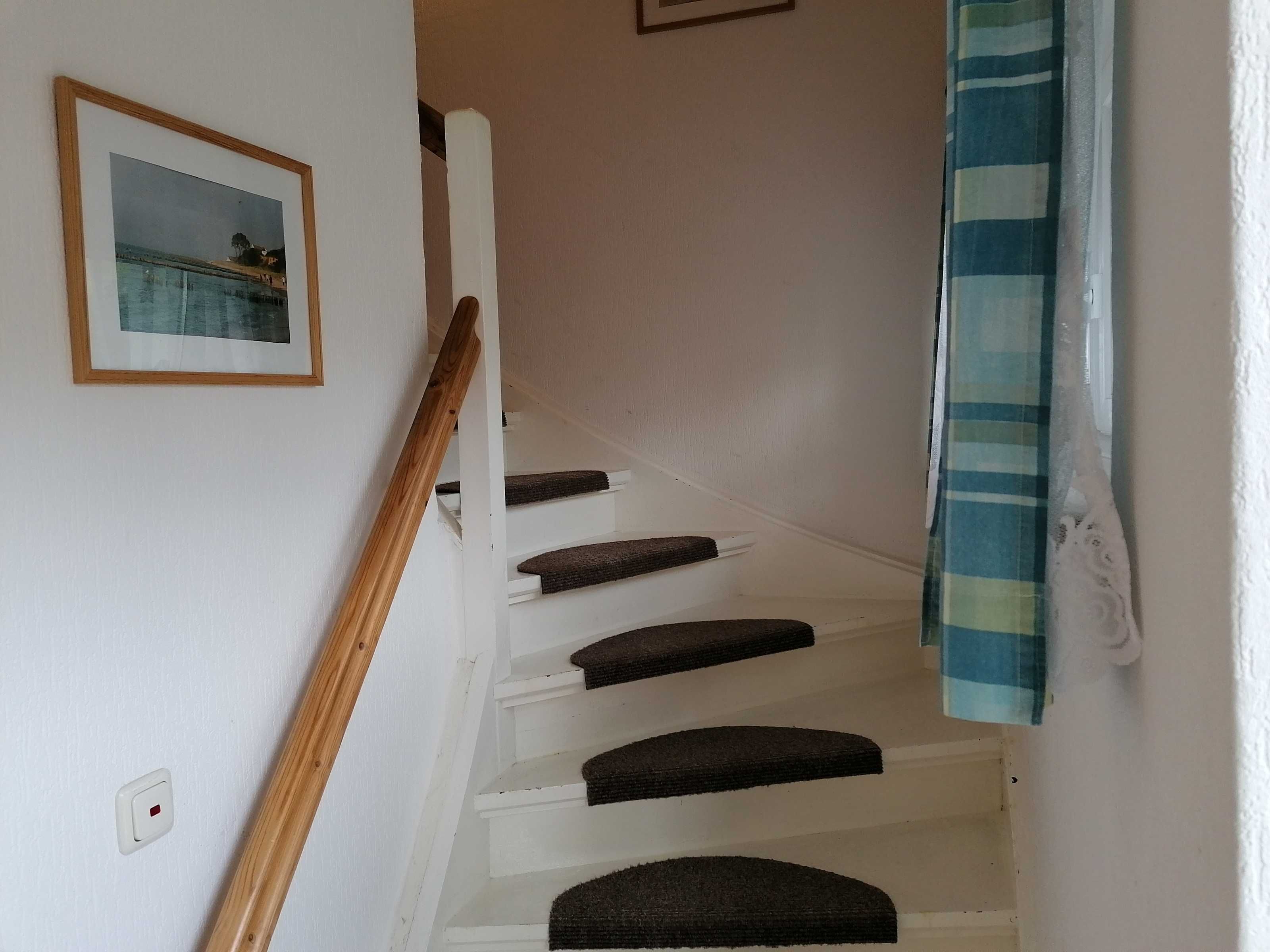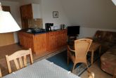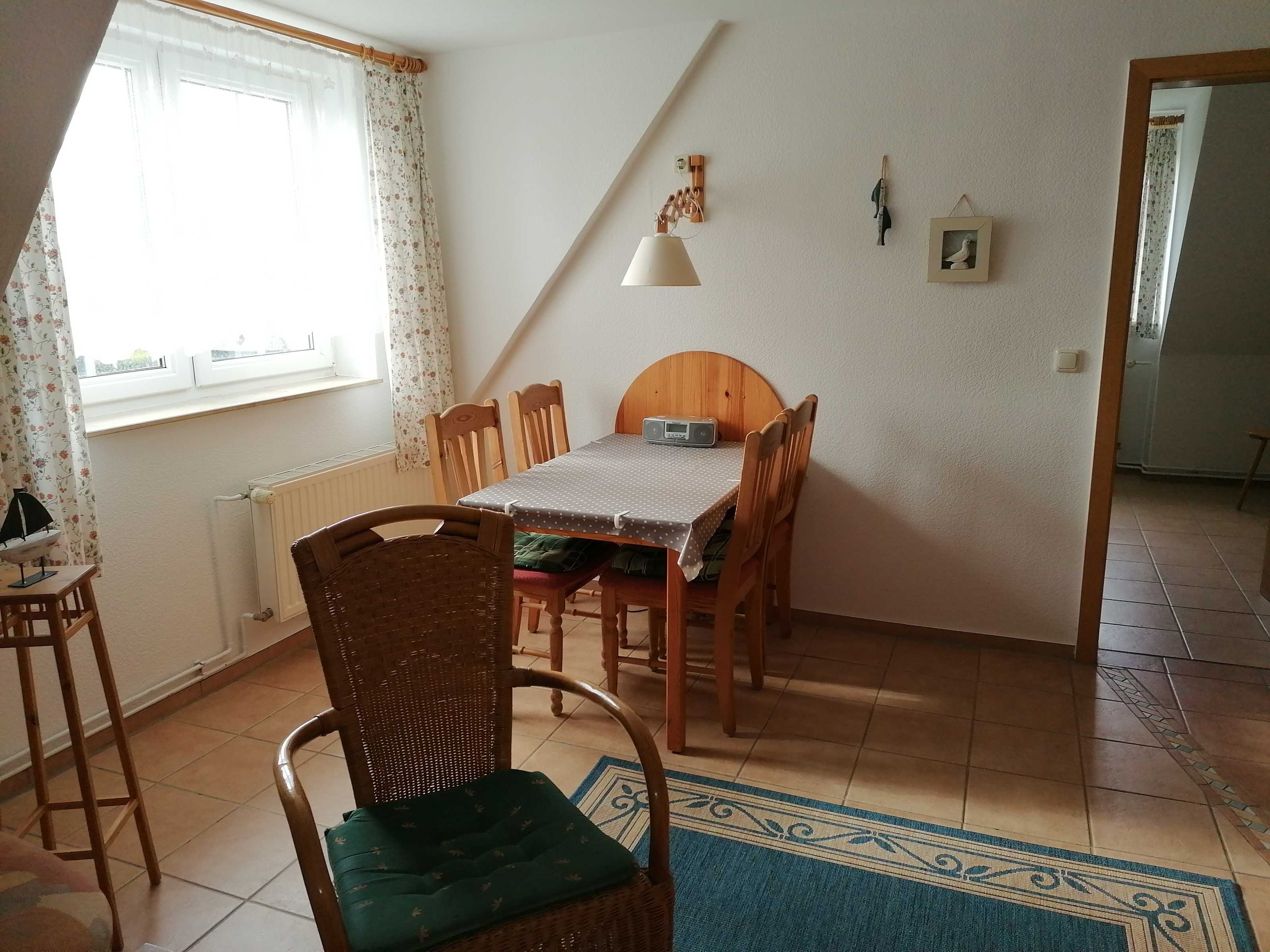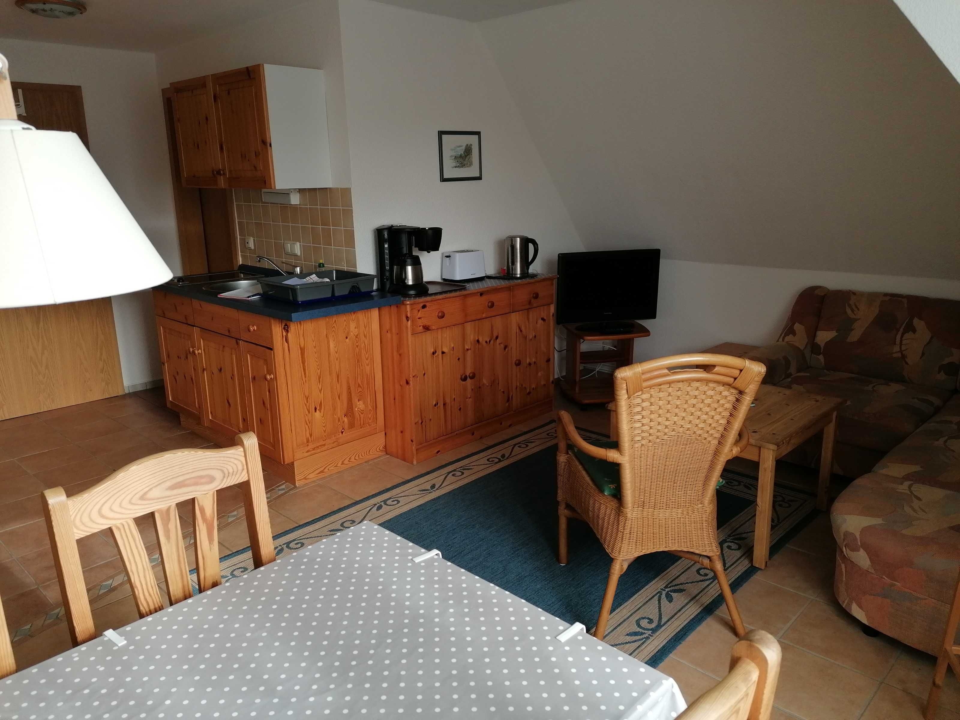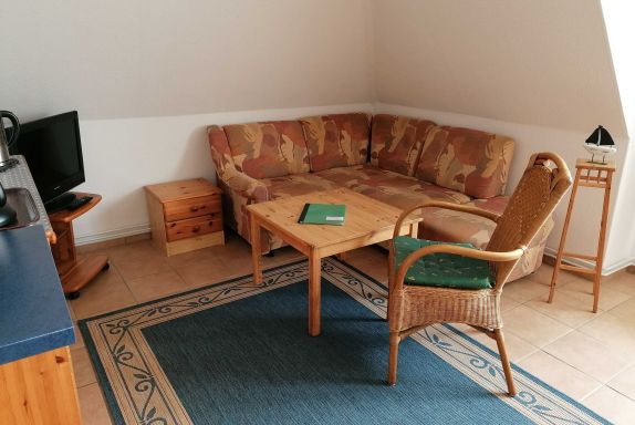 Kleine Ferienwohnung im Obergeschoss in einem schönen Reetdachhaus. Sie wohnen zentral und strandnah, aber trotzdem ruhig. Die Wohnung verfügt über eine Wohnküche, ein separates Schlafzimmer mit Doppelbett sowie einem Tageslichtbad mit Dusche. In der Wohnküche finden Sie neben einer gemütlichen Couch auch einen großzügigen Essplatz.  Die Küche ist ausgestattet mit einem Zwei-Platten-Cerankochfeld, einem Kühlschrank (mit Eisfach) sowie Wasserkocher, Toaster und Kaffeemaschine. Das Tageslichtbad verfügt über eine Dusche / WC.Zur Wohnung gehört ein großer Garten, der gemeinschaftlich mit anderen Gästen genutzt werden kann. Ein Parkplatz ist ebenfalls vorhanden. Der Eingang zur Wohnung führt über eine Treppe. Die Bettwäsche ist im Preis inklusive. Handtücher müssen mitgebracht werden oder können kostenpflichtig dazu gebucht werden.
