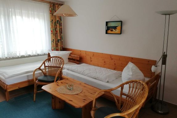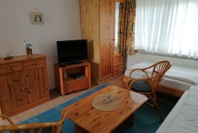Kleines Appartement im Erdgeschoss in einem schönen Reetdachhaus. Sie wohnen zentral und strandnah, aber trotzdem ruhig. Das Appartement verfügt über einen kombinierten Wohn- und Schlafraum. Im Schlafbereich befinden sich zwei Einzelbetten. In der kleinen Pantryküche finden Sie ein Zwei-Platten-Cerankochfeld, einen Kühlschrank (ohne Eisfach) sowie Wasserkocher, Toaster und Kaffeemaschine. Ein Essplatz im Appartement ist, neben zwei anderen Sitzmöglichkeiten, ebenfalls vorhanden. Das Tageslichtbad verfügt über eine Dusche / WC. Zum Appartement gehört eine Südterrasse mit Blick in den großen Garten. Ein Parkplatz ist ebenfalls vorhanden. Der Eingang zum Appartement befindet sich über die Terrasse. Die Bettwäsche ist im Preis inklusive. Handtücher müssen mitgebracht werden oder können kostenpflichtig dazu gebucht werden.