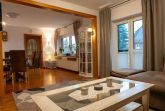 Die Wohnung hat ca. 90 qm mit 1 bzw. 2 Schlafzimmern, 1 großes Wohn- und Esszimmer, 1 Küche, 1 Bad mit WC und Badewanne, 1 Bad mit Dusche und Urinal.