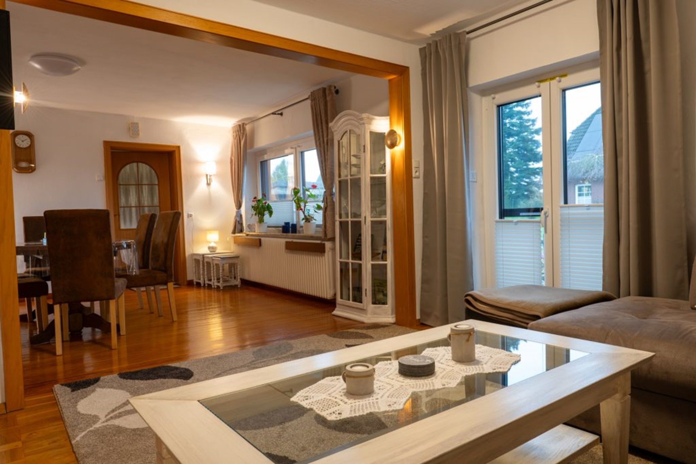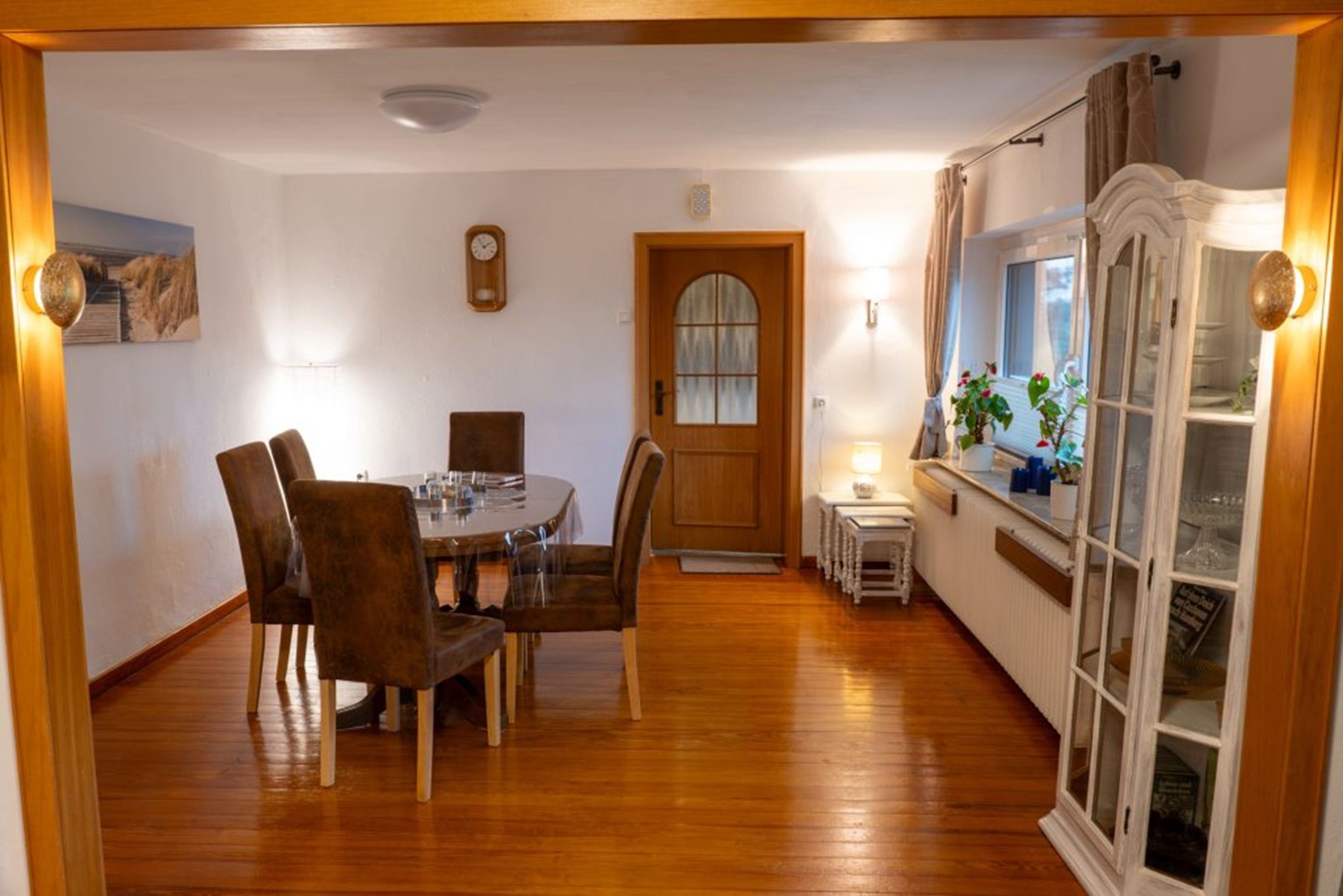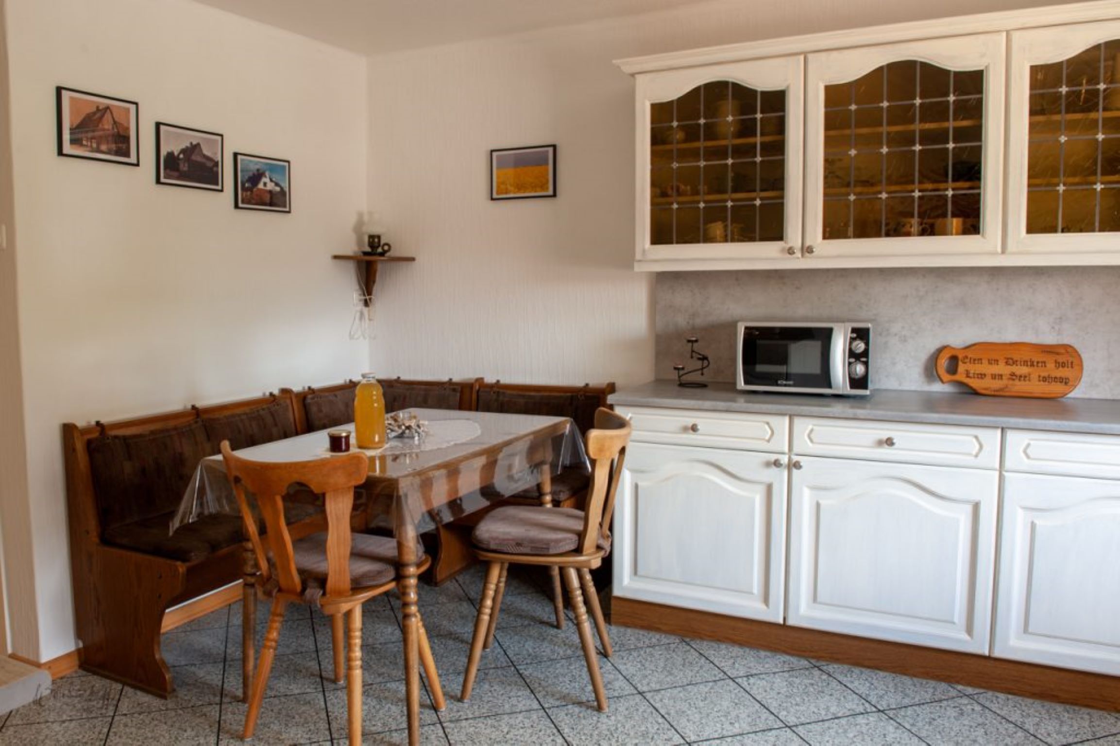 Im Wohnraum stehen ein modernes Ecksofa, ein Fernseher (mit Sat-Empfang) sowie ein Esstisch mit 6 Stühlen zur Verfügung. Die große Küche ist mit einer Eckbank, einem Tisch mit 4 Stühlen, einem Geschirrspüler, einem Kühlschrank mit Gefrierfach sowie einer Mikrowelle ausgestattet. Selbstverständlich kann auch WLAN (Glasfaser) genutzt werden. Bitte haben Sie Verständnis, dass das Rauchen und Haltung von Tieren in der Wohnung nicht gestattet sind.