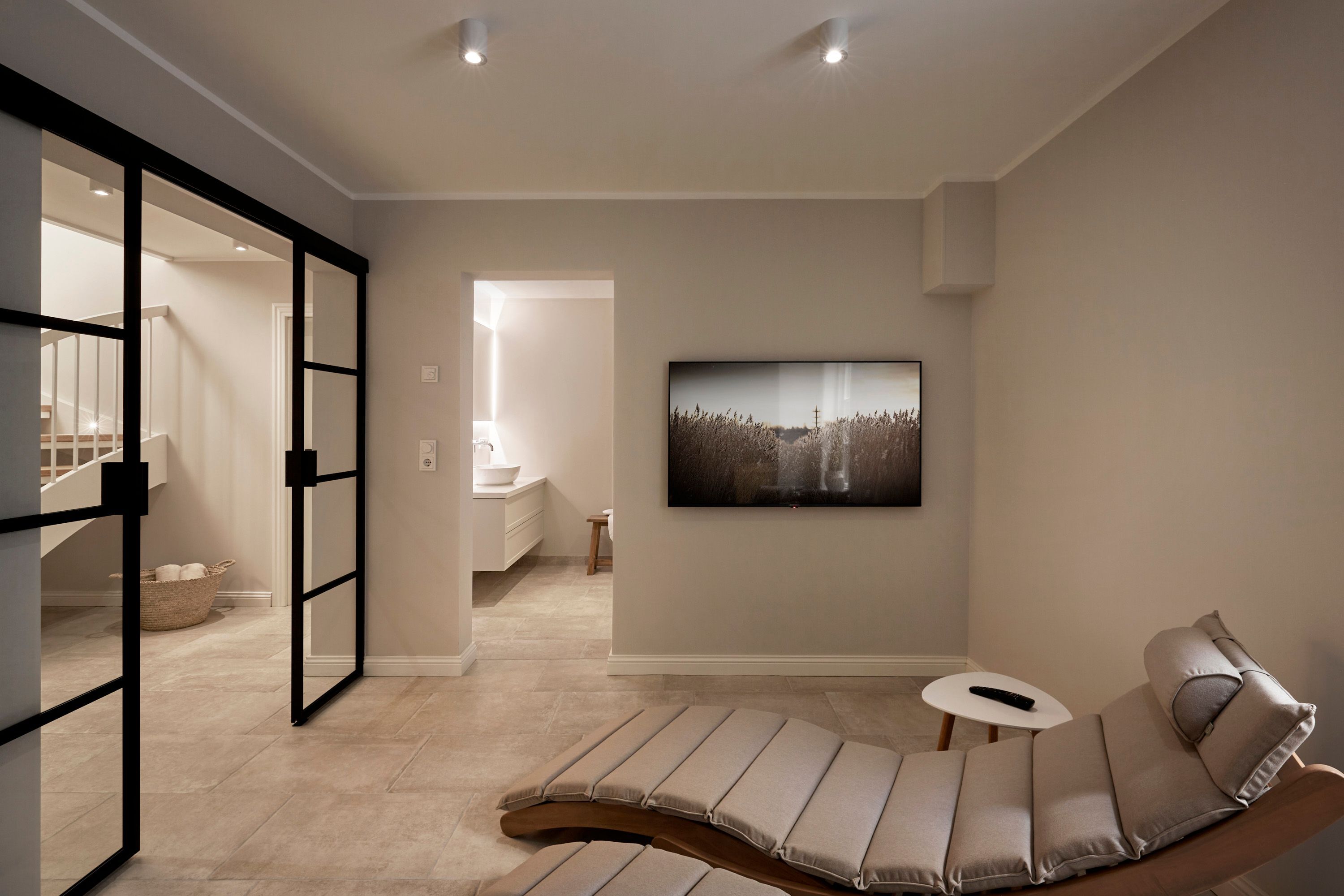 'Wit Parel' wurde mit viel Liebe zum Detail errichtet und mit seiner weißen und dunkelgrauen Gestaltung verbindet es gekonnt moderne Elemente mit gemütlichem Ambiente. Jeder Raum ist sorgfältig gestaltet und bietet einen Mix aus Eleganz und Behaglichkeit. In diesem luxuriösen Ferienhaus bleiben keine Wünsche offen. Die drei Schlafzimmer bieten viel Platz: ein Doppelzimmer mit eigenem Badezimmer, ein weiteres Doppelzimmer und ein Kinderzimmer mit zwei Einzelbetten teilen sich ein Badezimmer mit Badewanne perfekt für Familien oder eine Gruppe von Freunden. Die Schlafzimmer haben Einbauschränke und zwei davon sind mit Fernseher ausgestattet. Das Highlight des Hauses ist das großzügige, helle Wohnzimmer mit zahlreichen bodentiefen Fenstern und einer offenen Küche - ein einladender Raum, in dem man sich gerne aufhält und gemeinsame Zeit genießt. Ein separates Arbeitszimmer mit Blick über die Felder bietet die Möglichkeit für Ruhe und Konzentration. Der wunderschöne Garten mit einer großen Südterrasse bietet im Sommer viel Platz für die ganze Familie. Die Sauna mit einem Ruhebereich und großem Flachbildschirm sowie einem zusätzlichen Badezimmer im ausgebauten Keller ist ein zusätzliches Juwel, das für Entspannung und Wellness sorgt, besonders nach einem Tag voller Aktivitäten auf der Insel. Das Haus vereint Komfort, Stil und eine einladende Atmosphäre und verspricht einen unvergesslichen Aufenthalt.