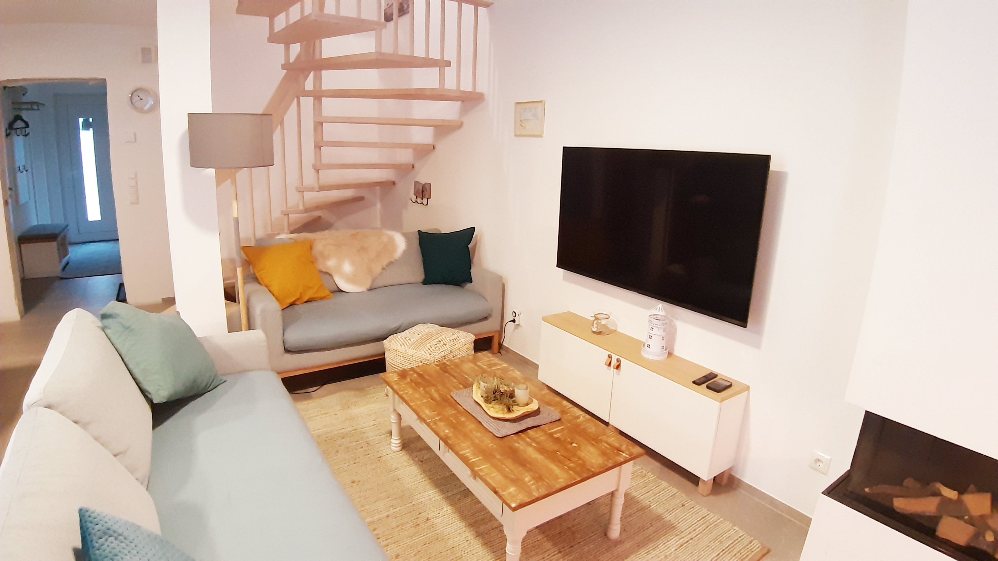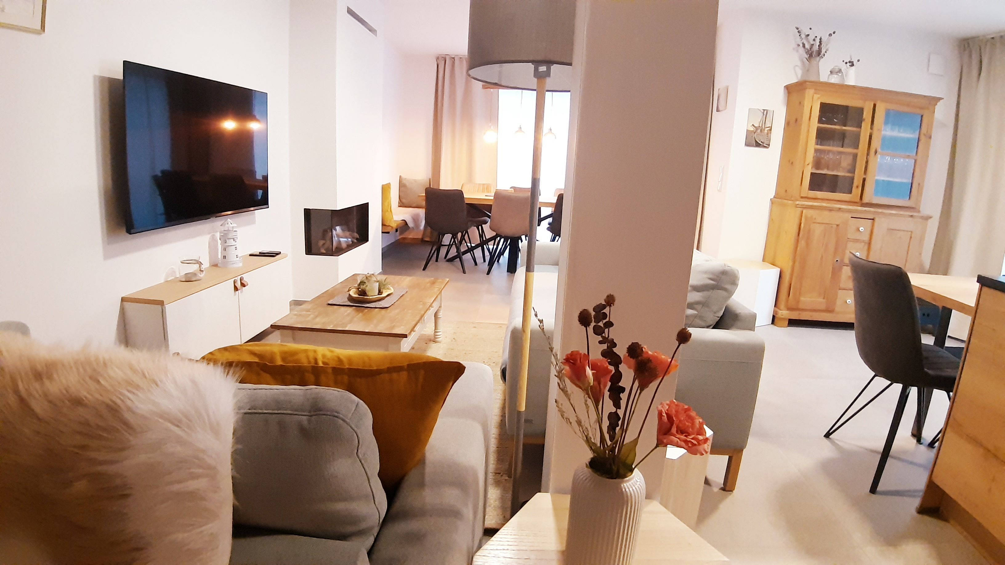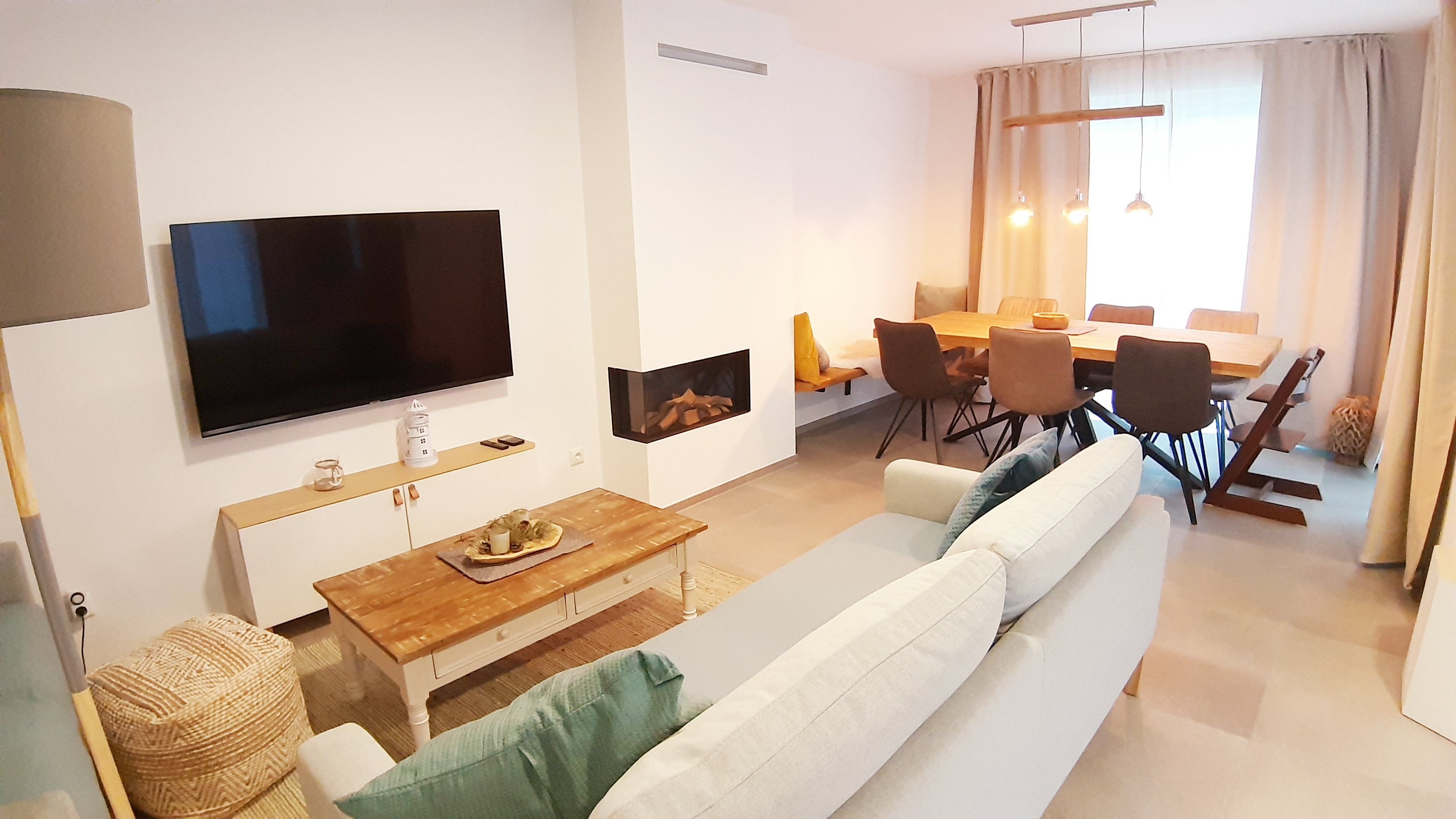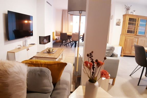 - Wohnbereich mit Kamin (Gaskamin: kostenpflichtig)