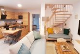 Der offene, lichtdurchflutete Wohnbereich mit integrierter, optimal ausgestatteter Küche lädt zum gemeinsamen Kochen oder Relaxen auf den Sofas oder vor dem Gaskamin ein. Am großen Esstisch, von dem man durch die bodentiefen Fenster in den Garten blickt, finden 8 Personen bequem Platz.