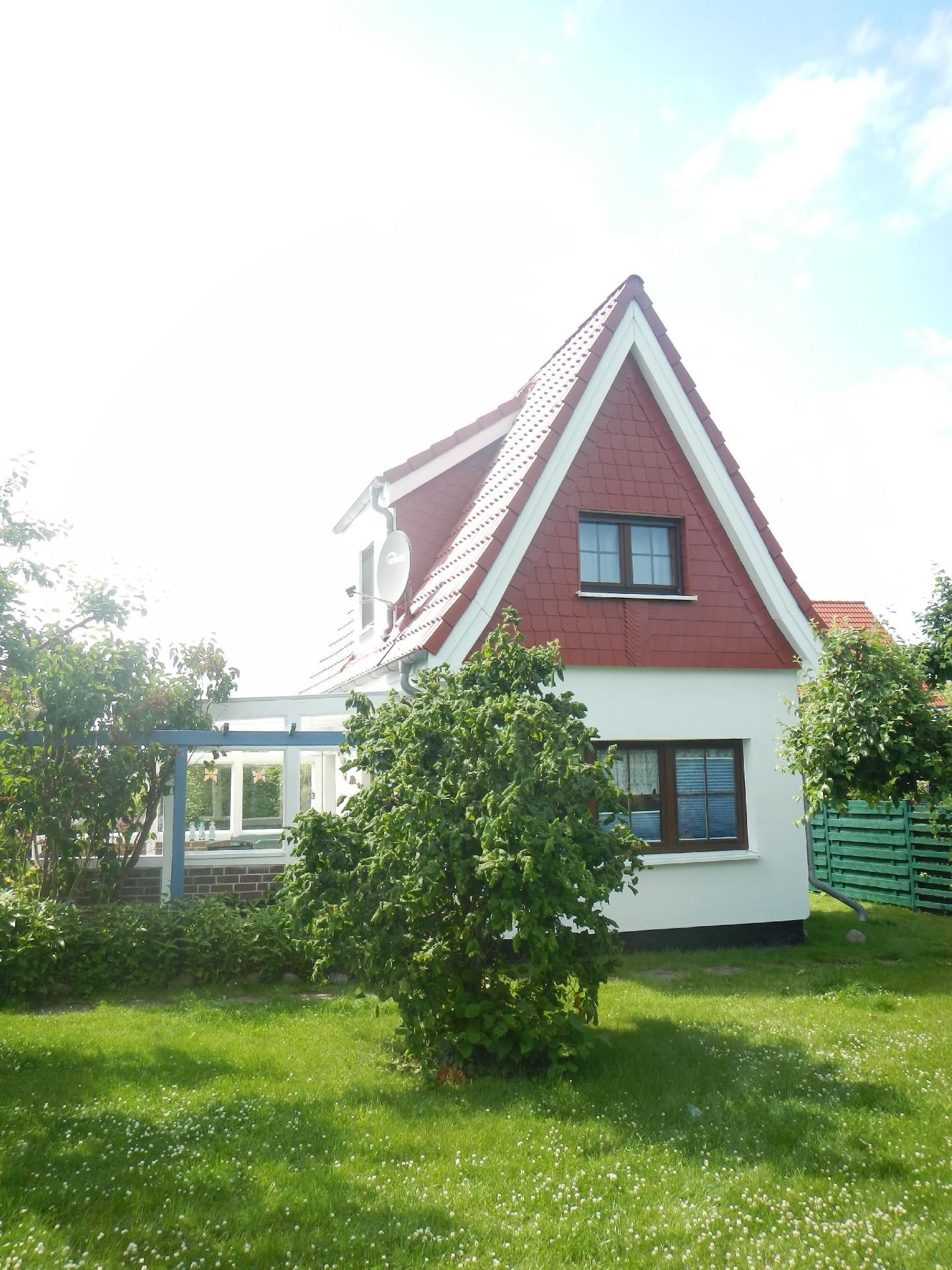 Im komplett eingefriedeten Gartenbereich können Sie sich auf 600 m² Grundstücks- und Wiesenfläche herrlich entspannen und Ihre Seele baumeln lassen. Eine stabile Hängematte lädt ebenso zum Relaxen ein. Ihnen steht eine überdachte Terrasse mit einem festeingebauten Grill zur Verfügung. Genießen Sie hier einen gemeinsamen Grillabend in der gemütlichen Außensitzecke. Zwei Herren- und ein Damenrad stehen ebemfalls kostenfrei für Sie bereit. Ihren Pkw können Sie auf einem Carport Stellplatz gebührenfrei abstellen. Haustiere sind gegen eine Gebühr erlaubt.