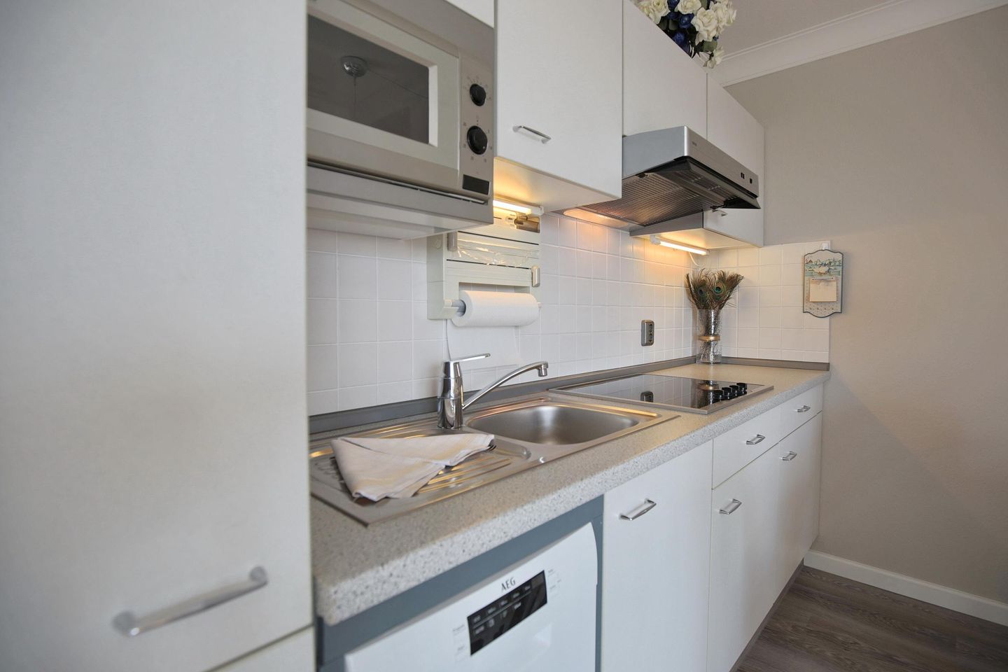 Die 2 Zimmerwohnung in Haffkrug ist für 2-3 Personen eingerichtet und liegt im 2. Obergeschoß. Sie verfügt über einen geräumigen Wohnschlafraum mit einem ausklappbaren Hocker als Schlafmöglichkeit für eine Person, Couch, Küchenzeile mit Ceranfeld, Spülmaschine und Mikrowelle, Essecke, TV und Blue-Ray Player und Balkon zur Südostseite mit seitlichem Meerblick. Das Schlafzimmer ist mit einem Doppelbett(1,80 x 2,00 m) mit Topper und anliegendem Balkon zur Ostseite ausgestattet. Das Duschbad verfügt über einen Föhn. Den Gästen steht ein PKW-Außenstellplatz zur Verfügung. Eine Fahrradabstellmöglichkeit ist in dieser Anlage nicht vorhanden.