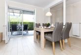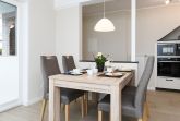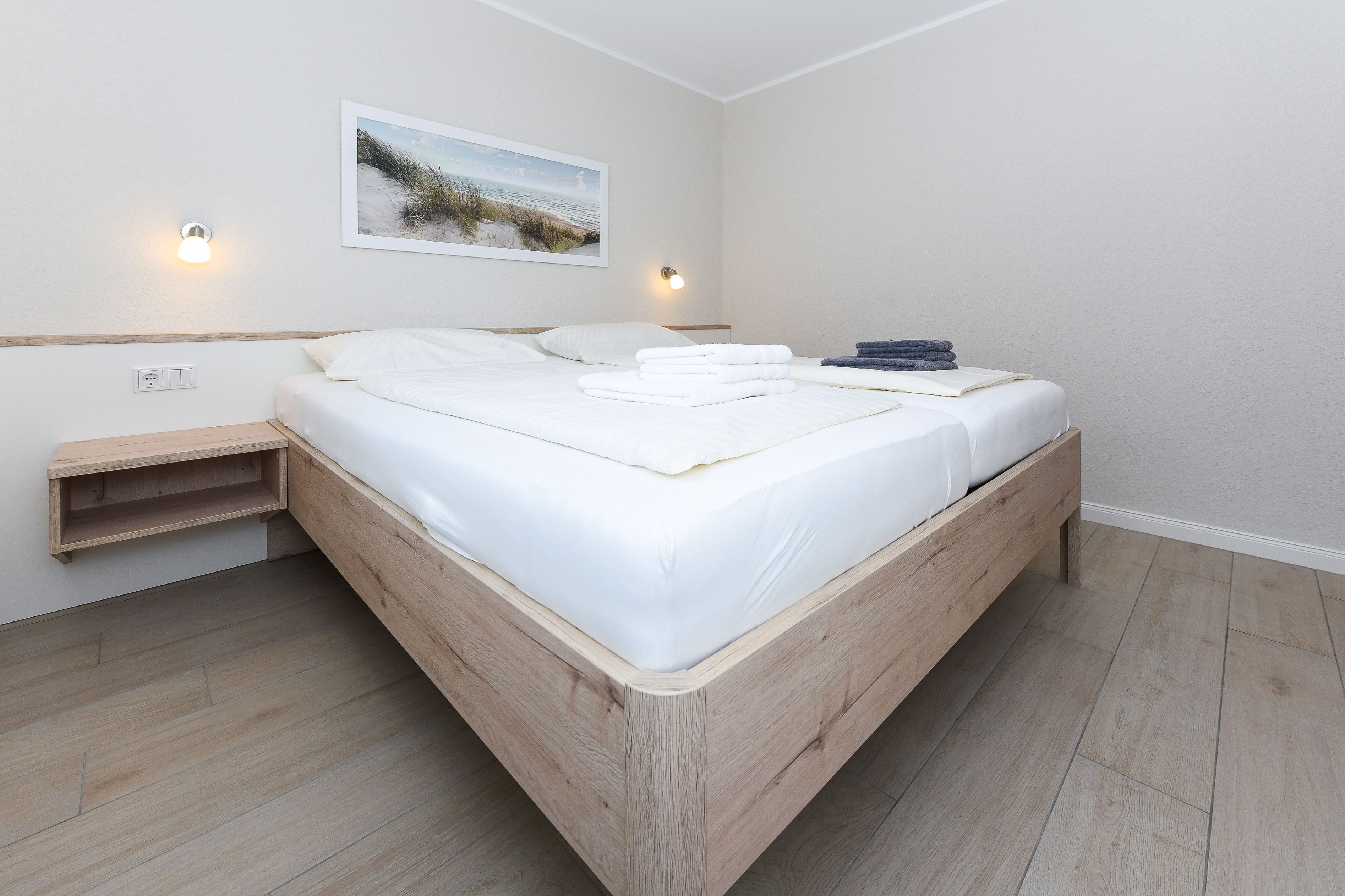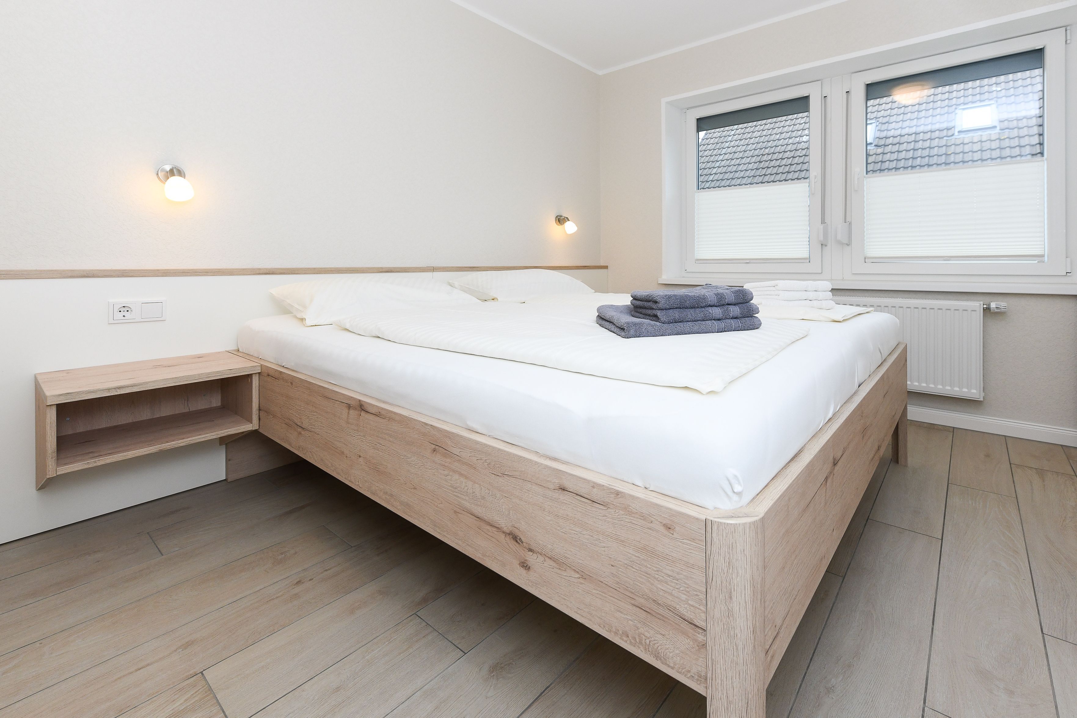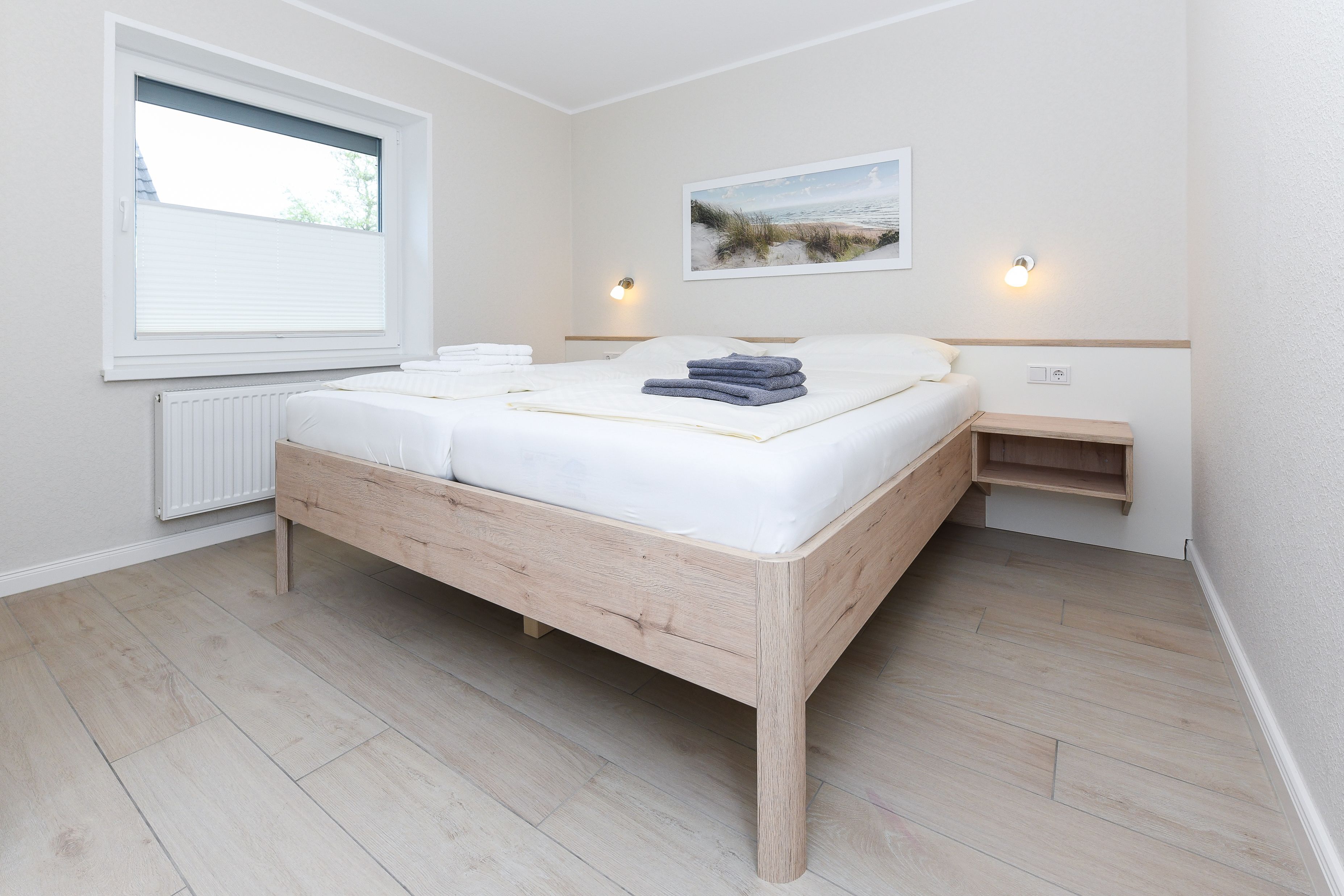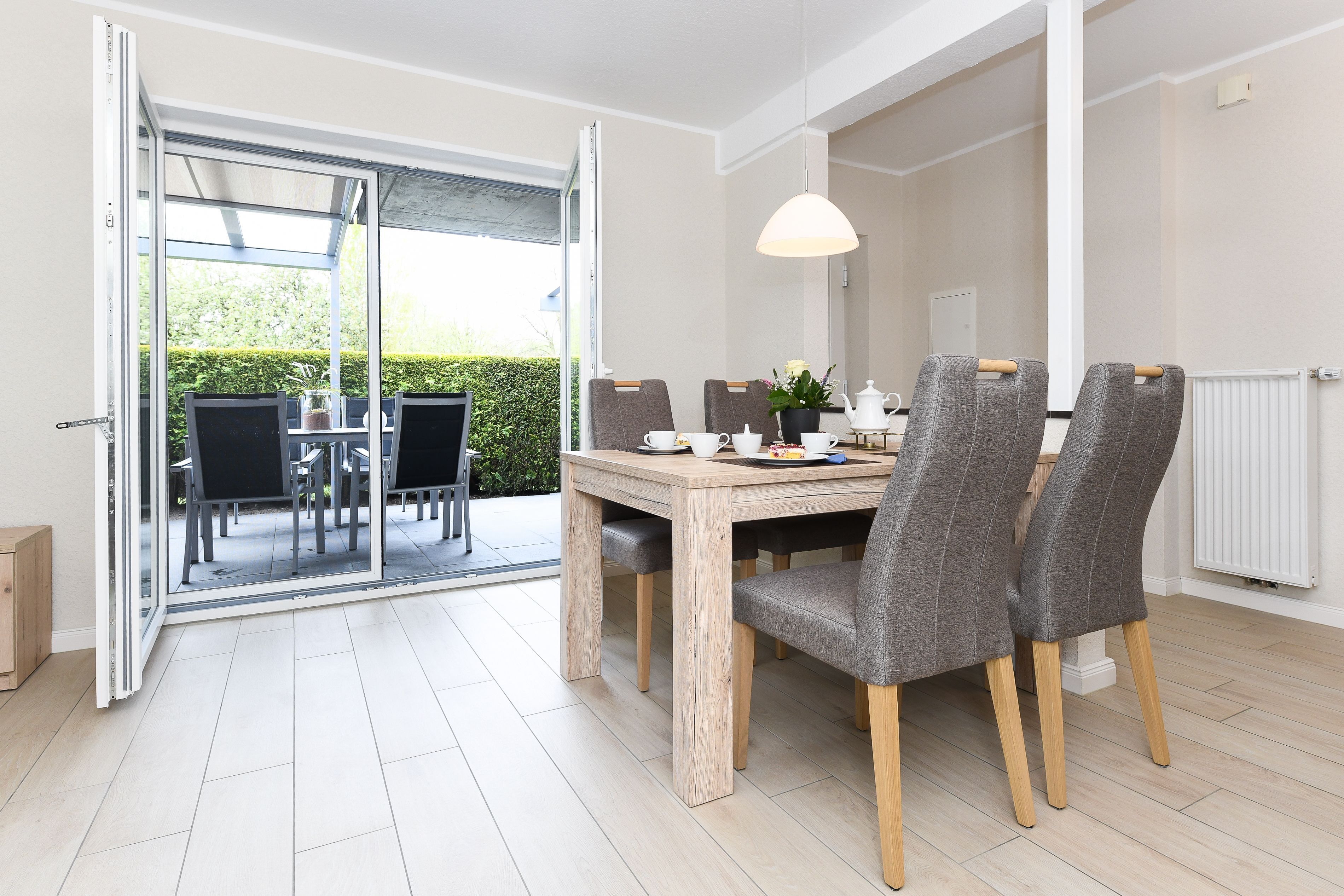 Größe ca. 60 Quadratmeter, Wohnraum mit integrierter Küche und Essgruppe, Schlafzimmer, zweites separates Schlafzimmer, Badezimmer mit Dusche, Waschtisch und WC, Erdgeschoss, Terrasse, optimal für 2 bis 4 Personen und zusätzlich ein Kleinkind.