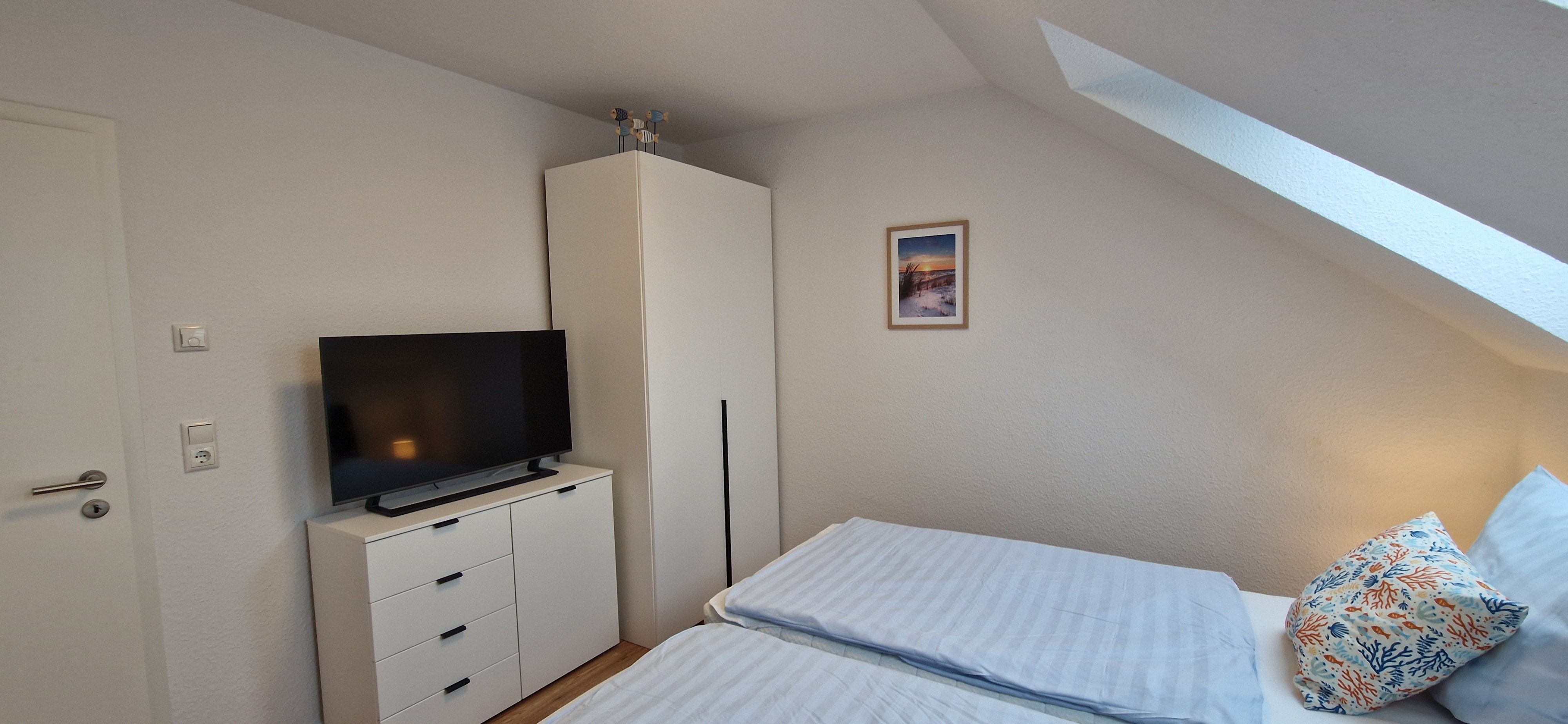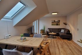 Diese neuwertige und komfortable Ferienwohnung verfügt über einen lichtdurchfluteten Wohnbereich mit Couchgarnitur und Flachbild-TV, einen Esstisch sowie eine vollausgestattete, offene Küche. Auf dem Balkon können Sie die warmen Sommerabende ausklingen lassen. Desweiteren ist die Wohnung mit einem Schlafzimmer mit Doppelbett, einem Schlafzimmer mit 2 Einzelbetten sowie mit einem modernen Duschbad ausgestattet. Die Wohnung bietet Platz für 4 Personen und ein Baby/Kleinkind. WLAN ist ebenfalls vorhanden.