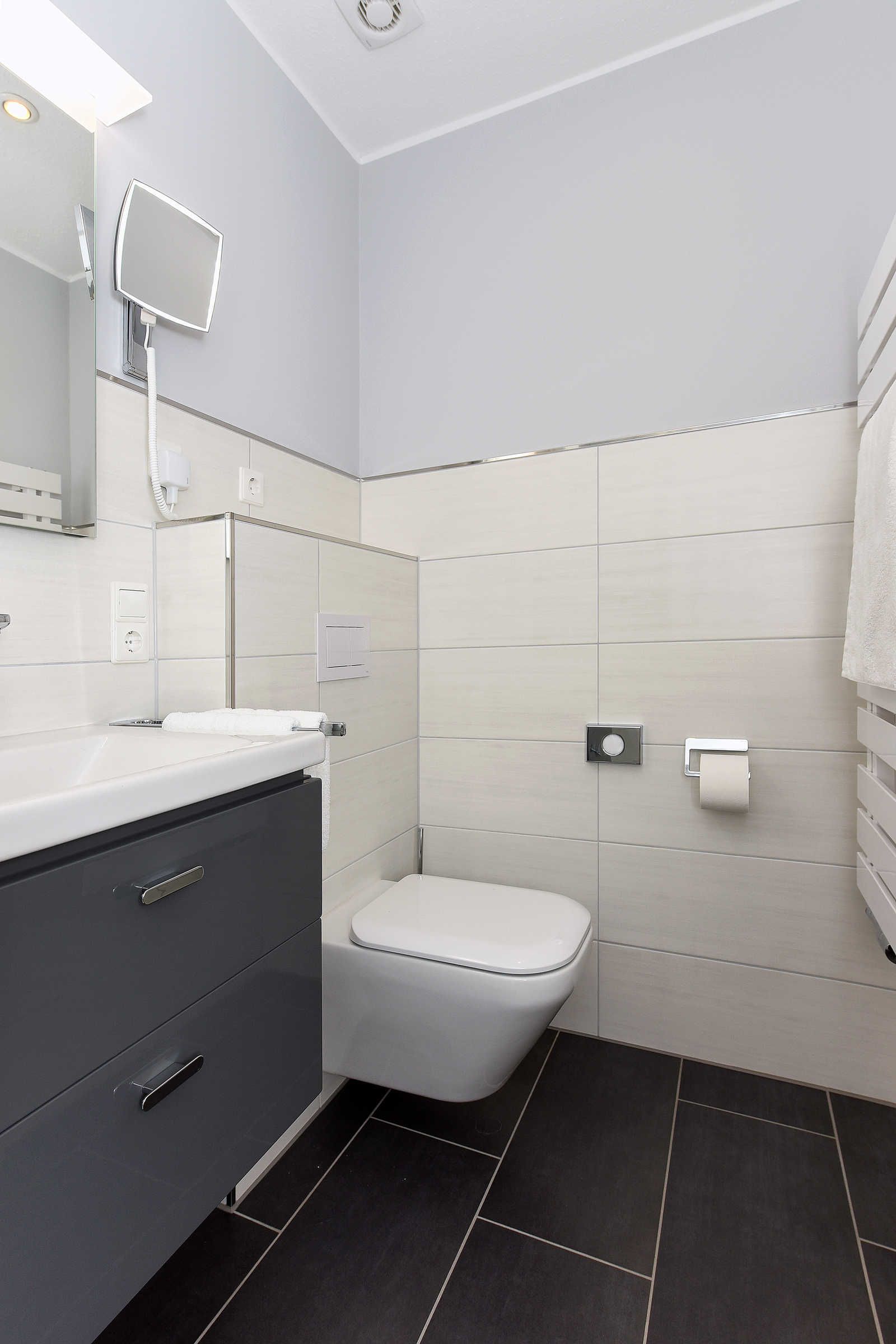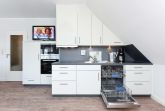 Alle Wohnungen sind speziell schallisolliert und verfügen über Geschirrspülmaschinen und Mikrowellen-Öfen, natürlich auch über voll ausgerüstete moderne Einbauküchen und alles, was man überhaupt im Urlaub benötigen könnte. Waschmaschine und Wäschetrockner stehen unseren Gästen zum Benutzen im Waschraum des Hauses zur Verfügung. In unseren Wohnungen liegen keine Teppichböden; damit möchten wir denjenigen Gästen entgegenkommen, die allergisch auf Staub und Tierhaare reagieren.