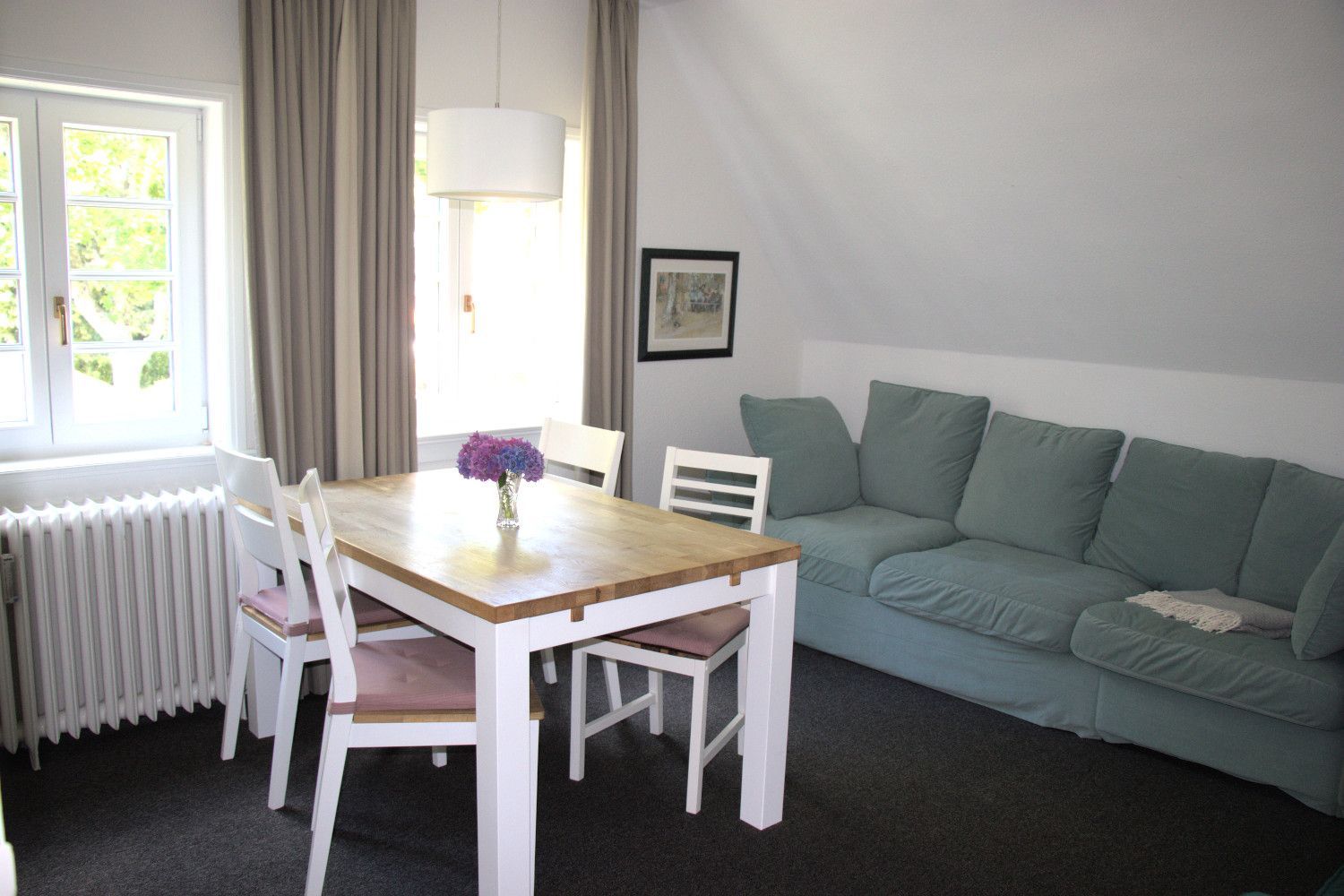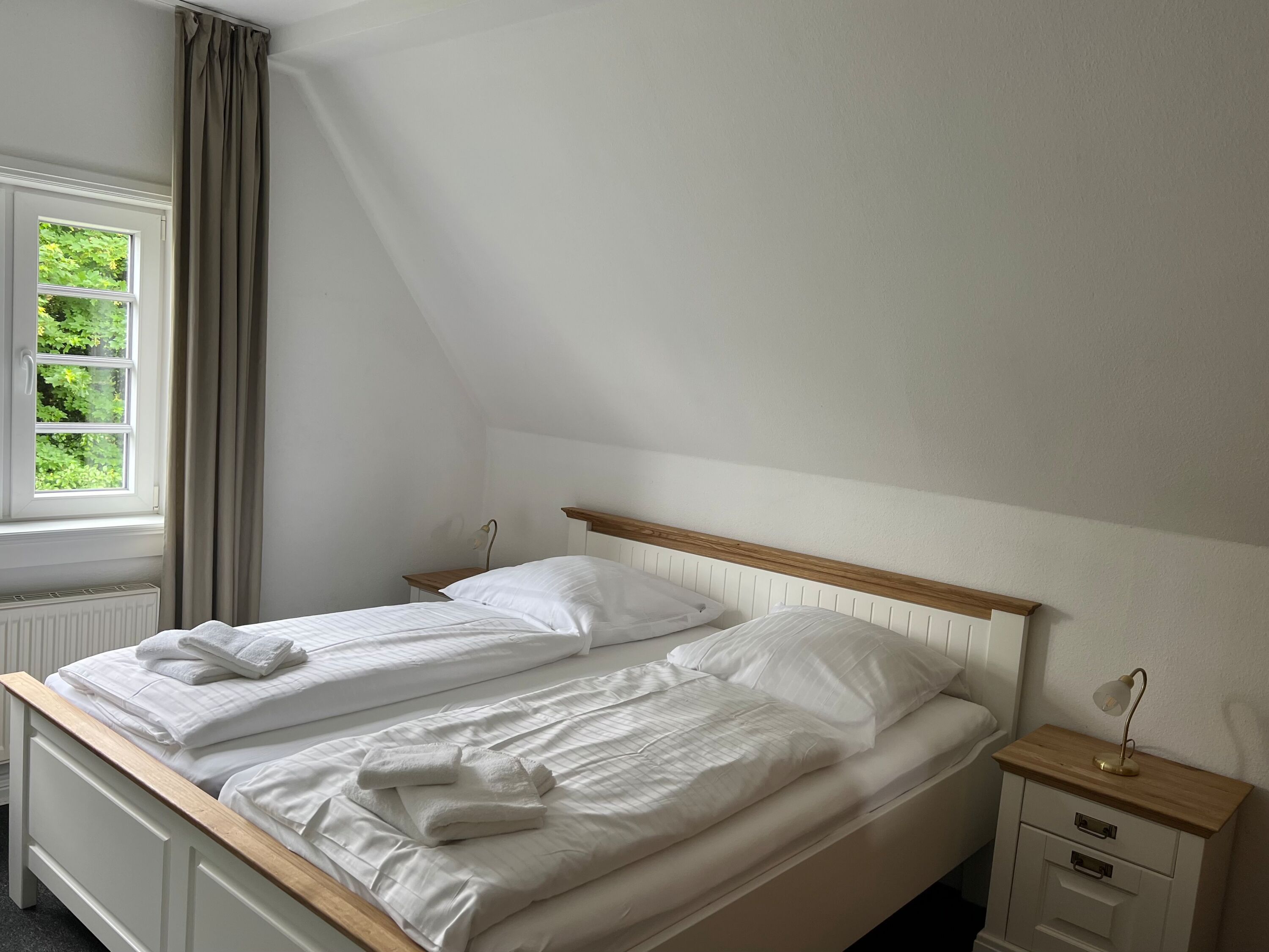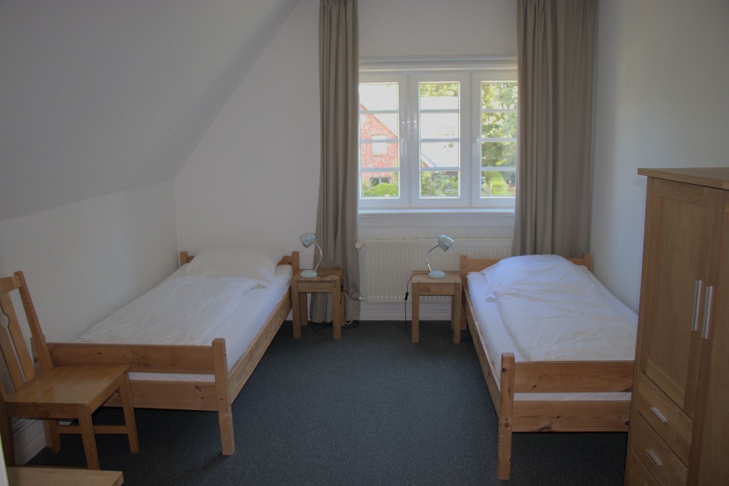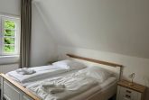 Die Wohnung im Obergeschoss verfügt über zwei Schlafzimmer, einmal mit Doppelbett und des Weiteren mit zwei Einzelbetten.