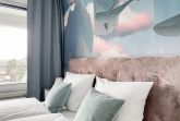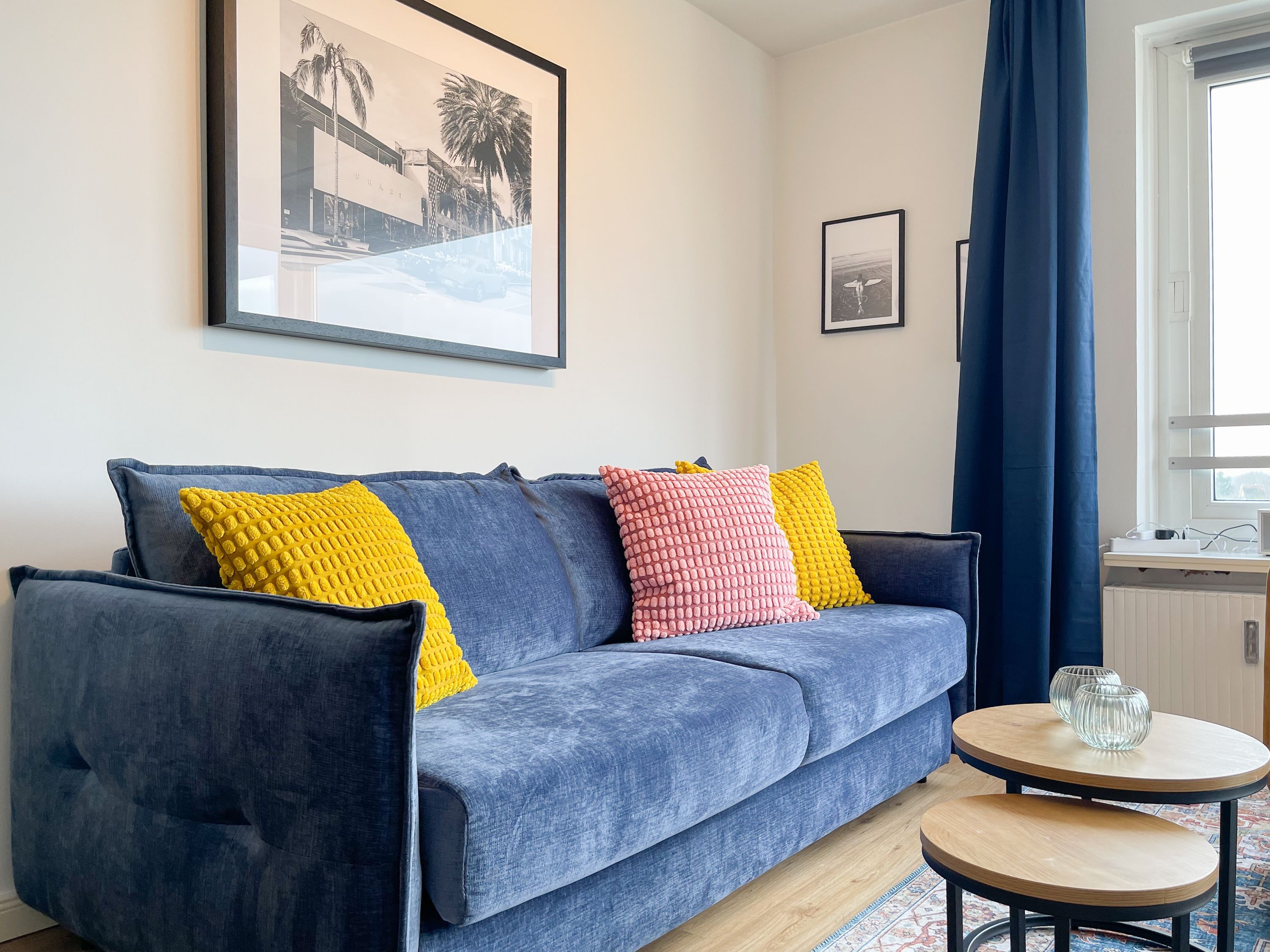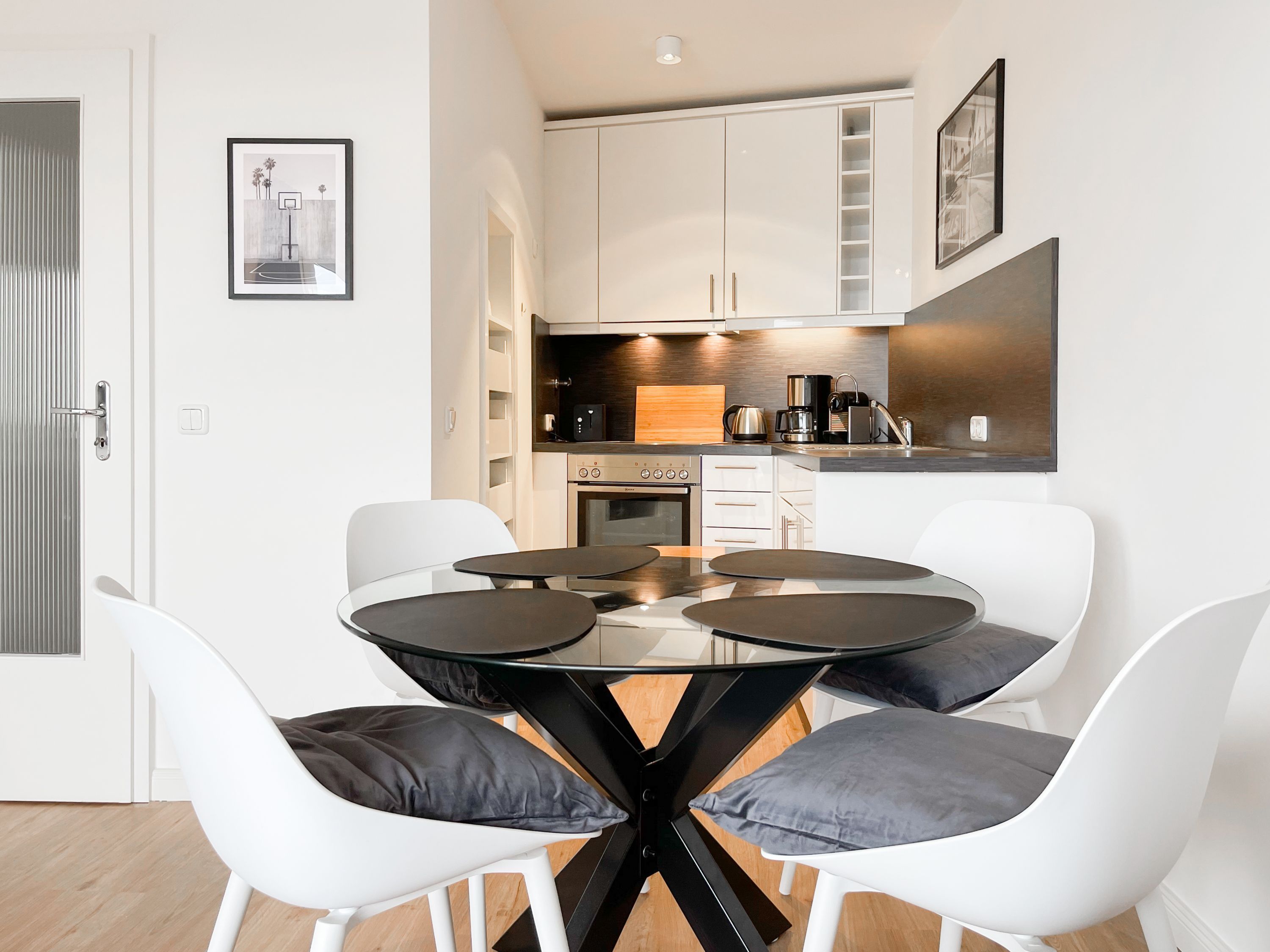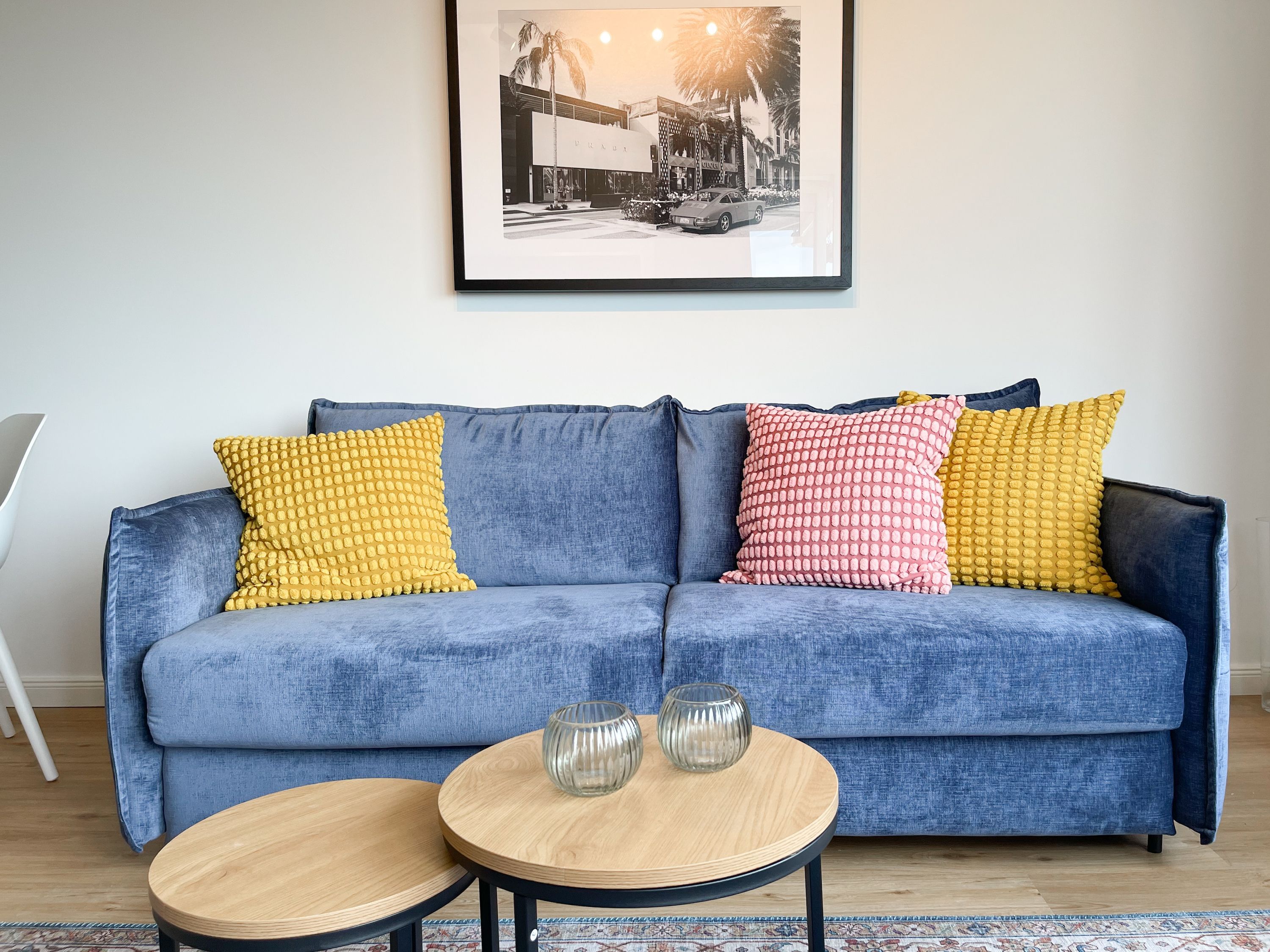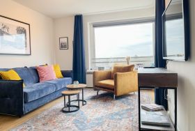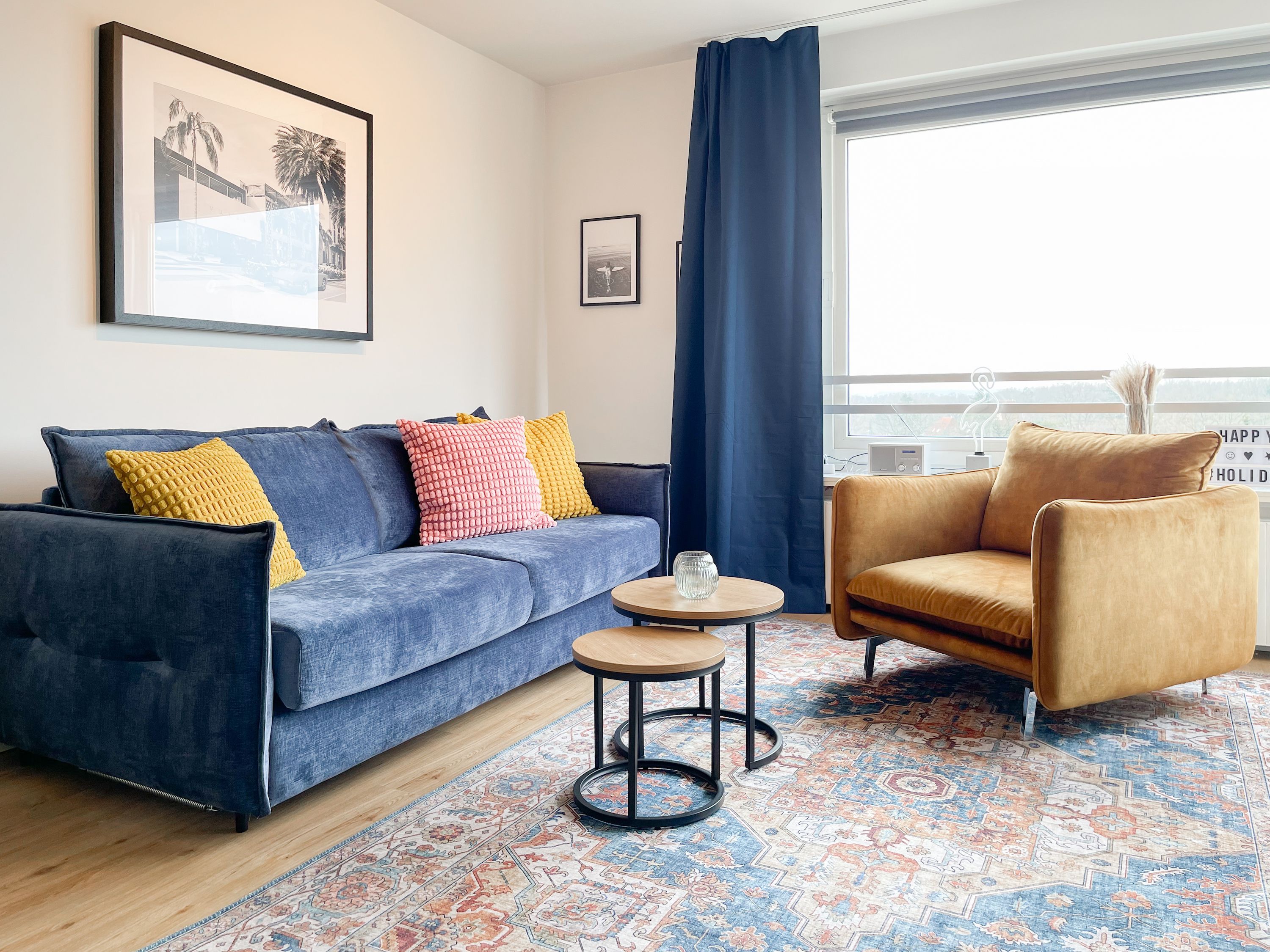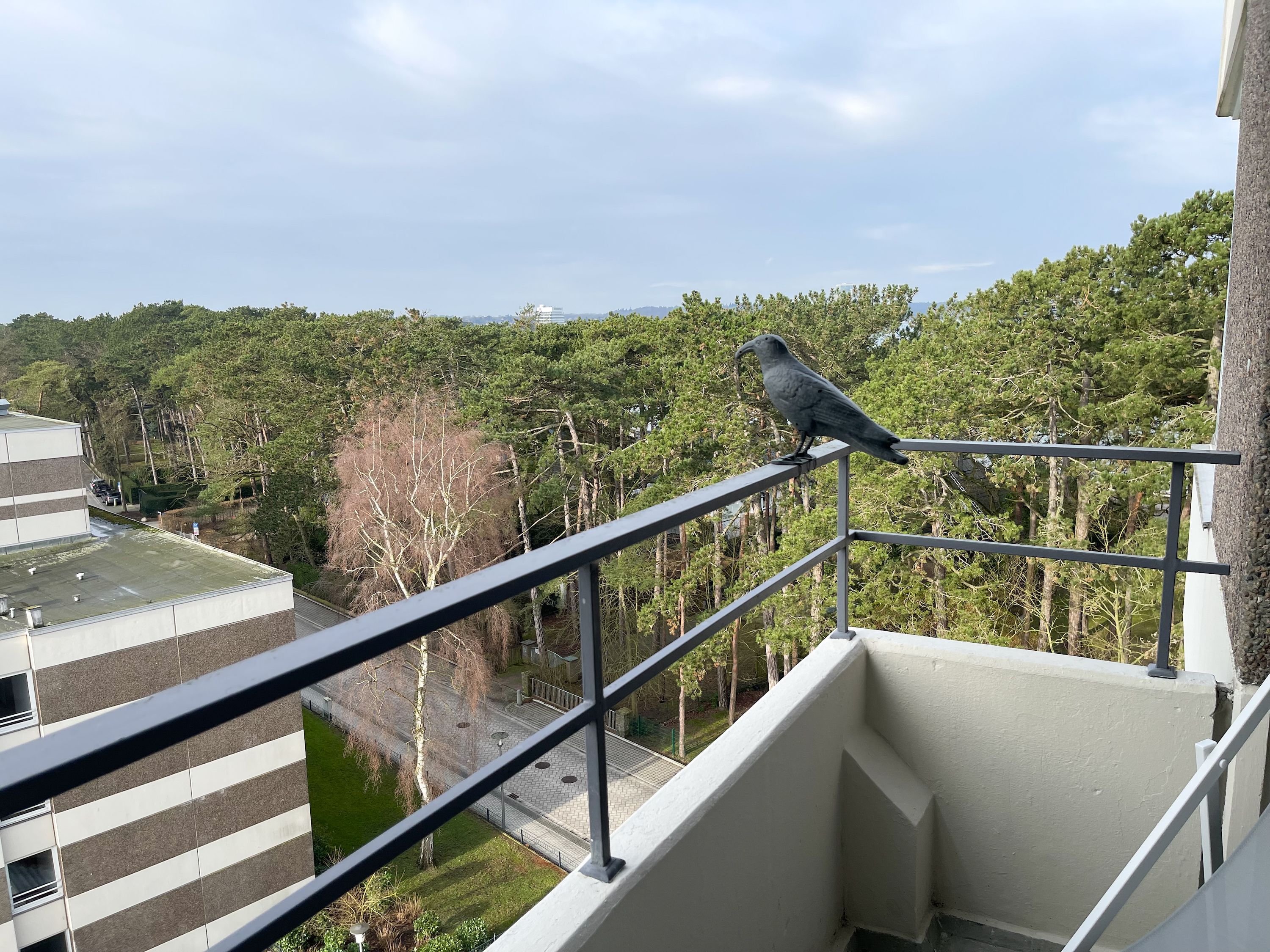 Die aufwendig renovierte und mit viel Liebe zum Detail eingerichtete Ferienwohnung befindet sich in der Endetage im Carpe Diem, einer gepflegten Wohnanlage. Es erwartet Sie ein lichtdurchfluteter Wohnbereich mit schönem Panoramablick, eingerichtet mit einem hochwertigen Schlafsofa, TV, Radio und WLAN sowie einem gemütlichen   Essbereich. Die offene, neue Einbauküche ist gut ausgestattet und verfügt über einen Backofen, Cerankochfeld und einen Kühlschrank mit Gefrierfach. Der Balkon in Südwestausrichtung ist mit Gartenmöbeln und einer Markise ausgestattet und bietet einen herrlichen Ausblick, teilweise kann man die Ostsee durch die Bäume blitzen sehen.  Meeresrauschen und die frische Seeluft sind garantiert. Das separate Schlafzimmer ist mit einem Doppelbett (180x200)und einem Kleiderschrank mit reichlich Stauraum für die Urlaubsgarderobe ausgestattet. Die Fenster sind mit Jalousien und Vorhängen zur Abdunkelung versehen. Zur Wohnung gehört ein Tiefgaragenstellplatz  (Einfahrthöhe 1,95m). Der Fahrstuhl geht bis in die 6. Etage, von dort ist die Endetage über Treppen zu erreichen.